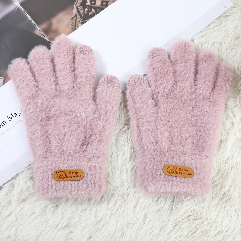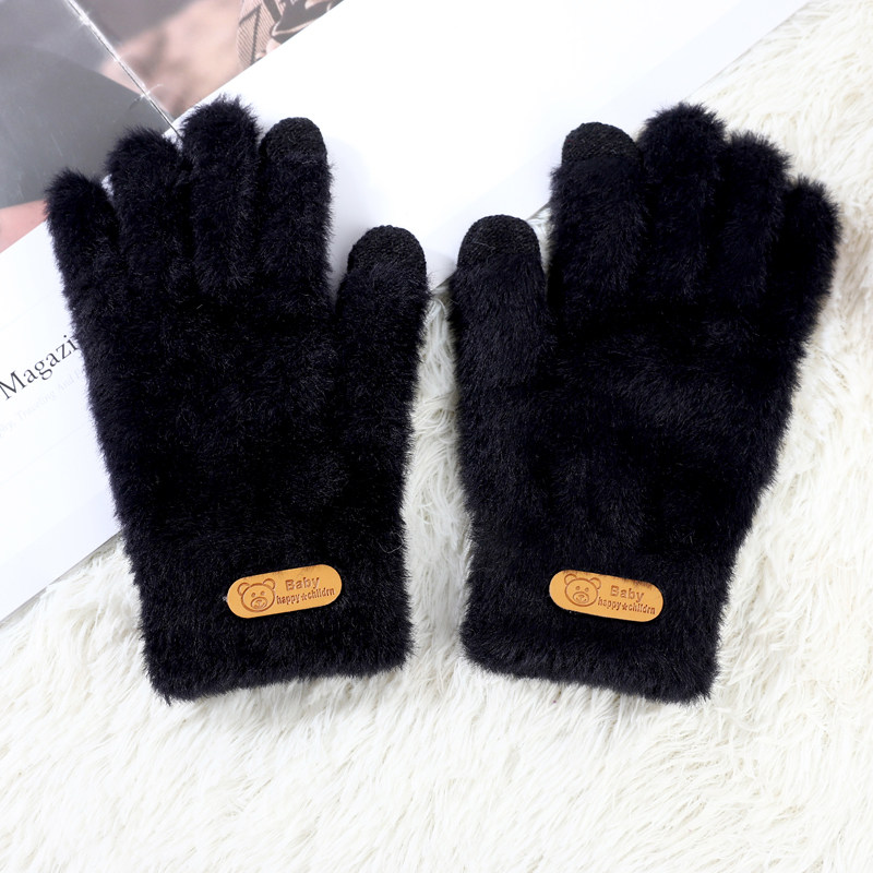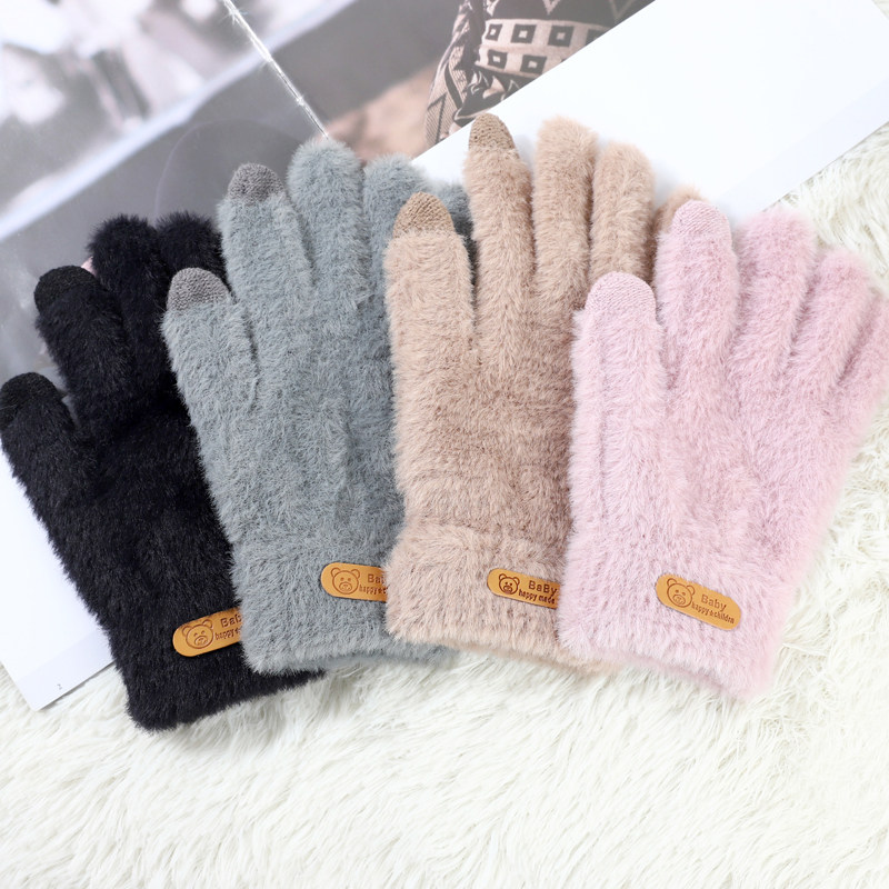 Перчатки, утепленный шерстяной удерживающий тепло милый комплект для школьников и студентов, в корейском стиле