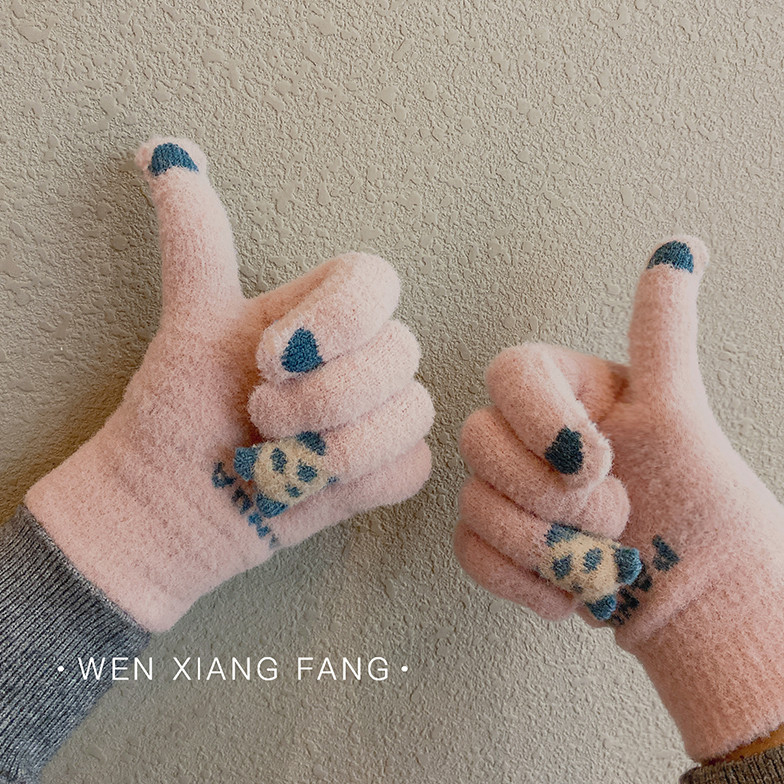 Брендовые милые флисовые удерживающие тепло ветрозащитные перчатки, с медвежатами