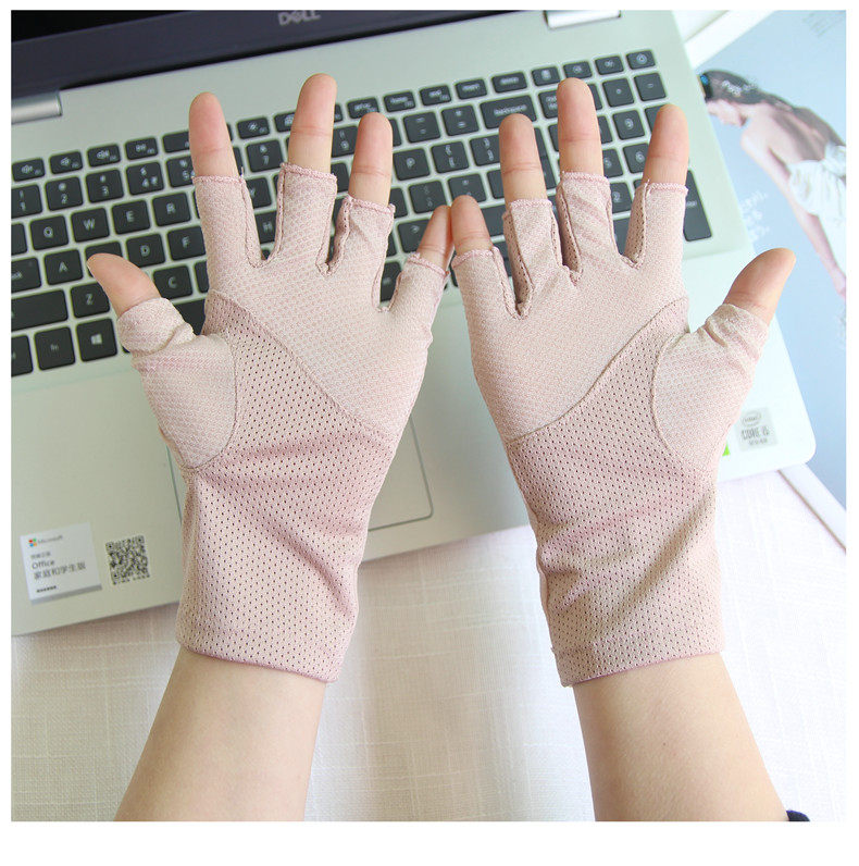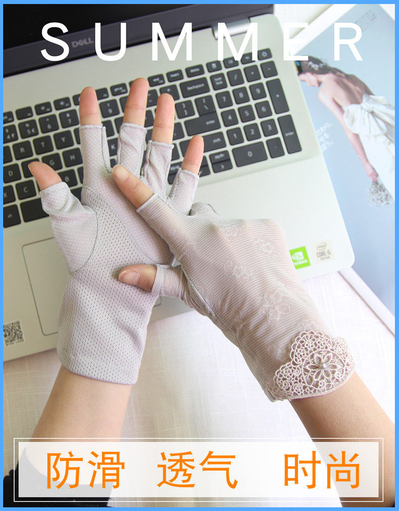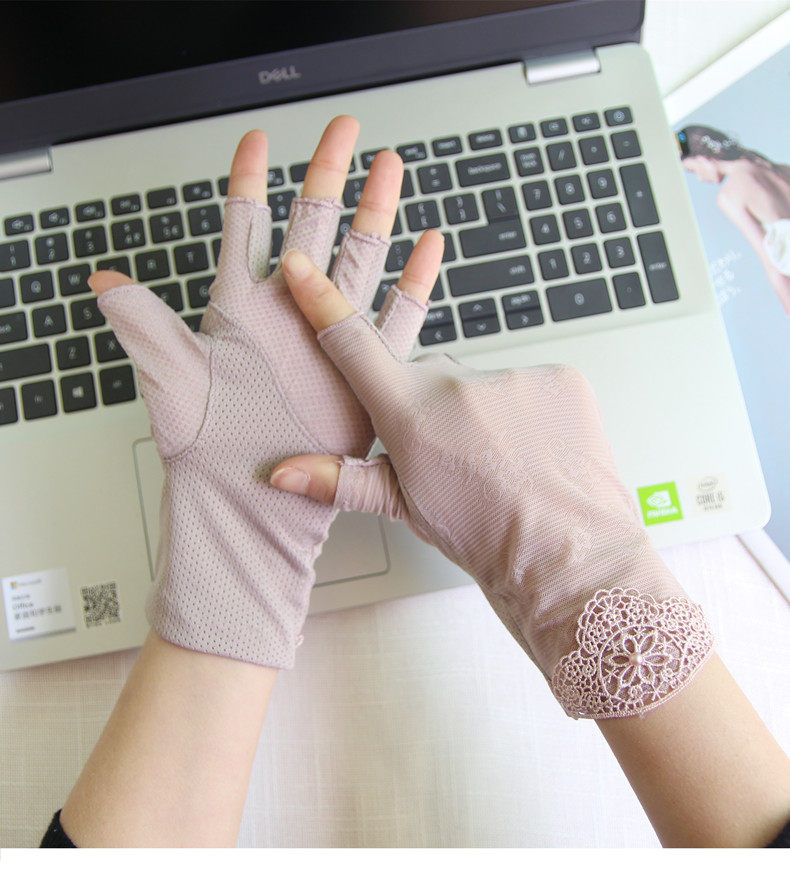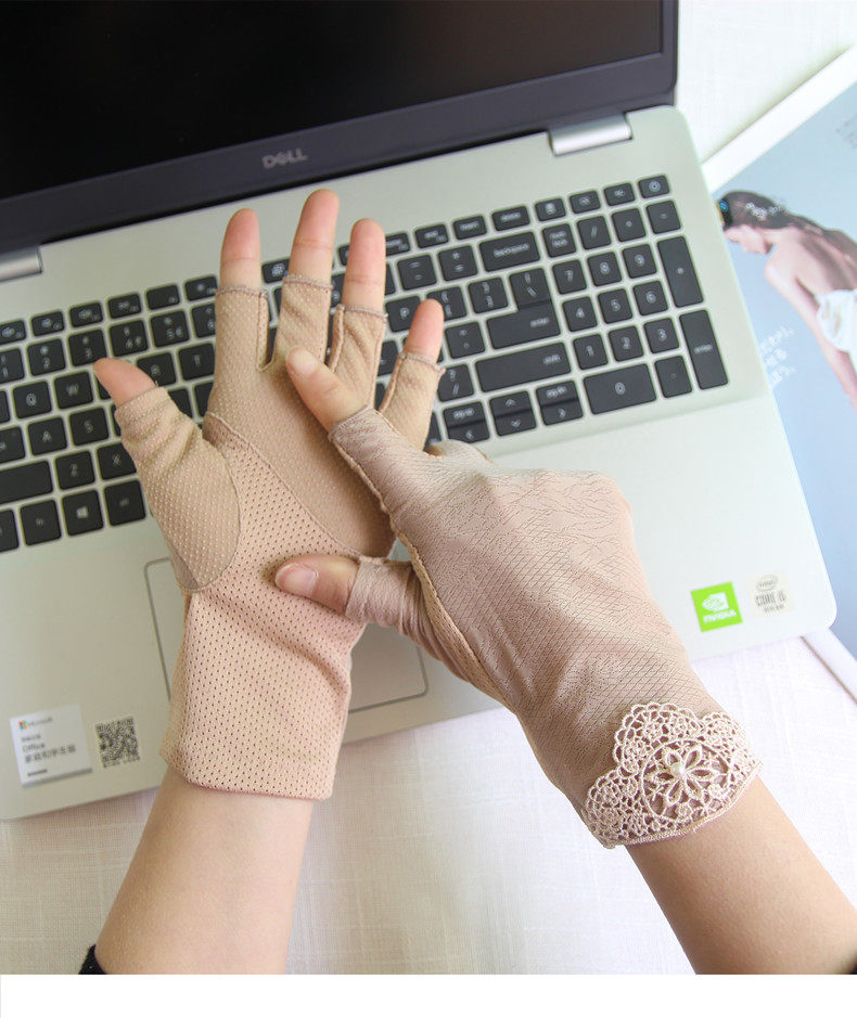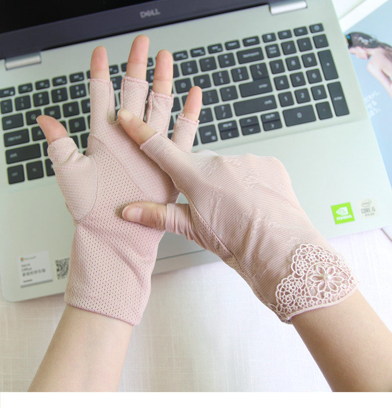 Перчатки, тонкий кружевной шелковый нескользящий дорожный короткий весенний летний комплект, защита от солнца, без пальцев