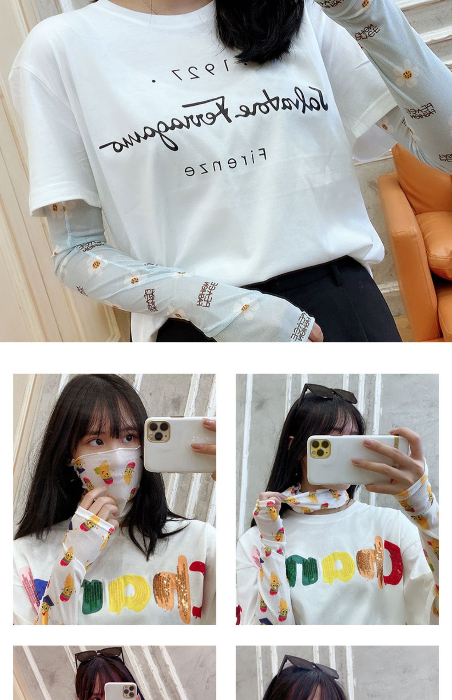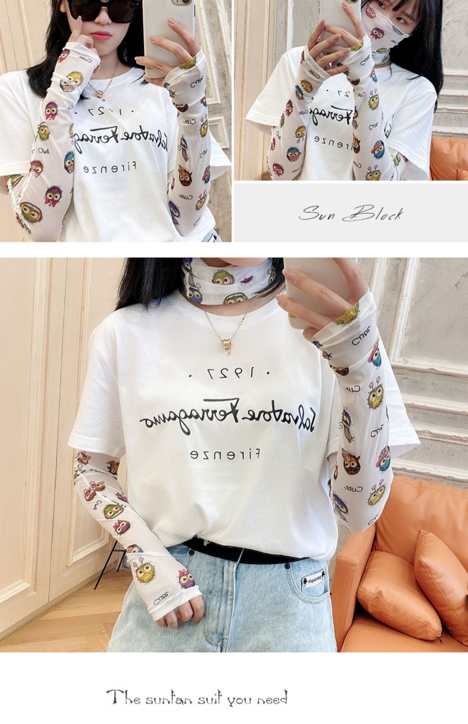 Милые нарукавники, брендовая маска, шелковые перчатки, защита от солнца