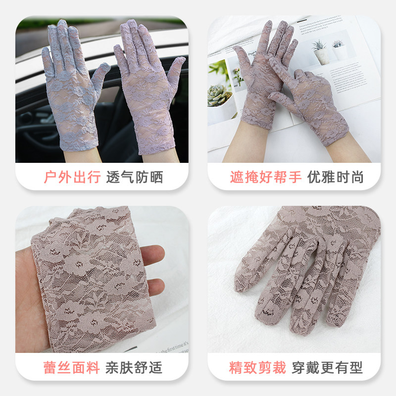 Летние перчатки, кружевной тонкий нескользящий осенний короткий комплект, защита от солнца, защита от ультрафиолета
