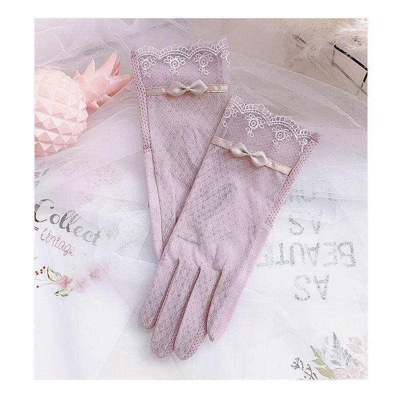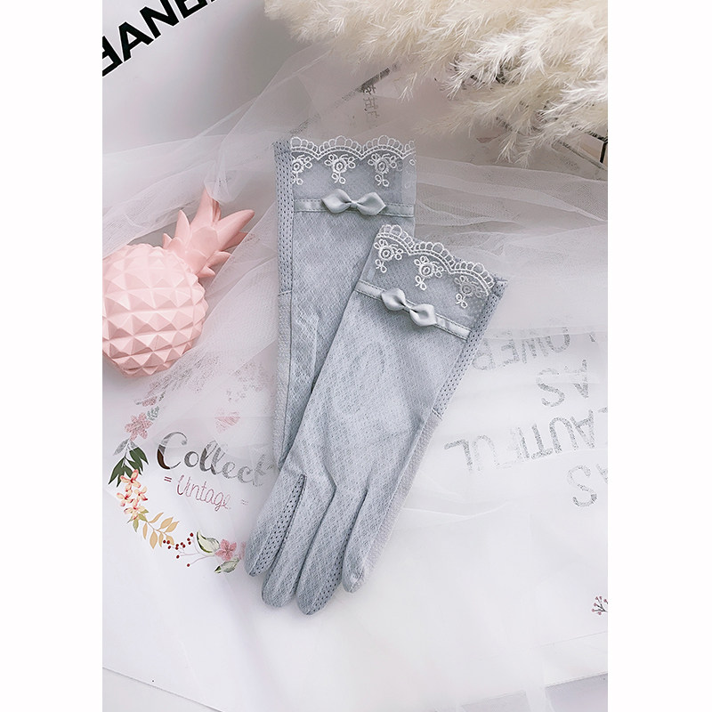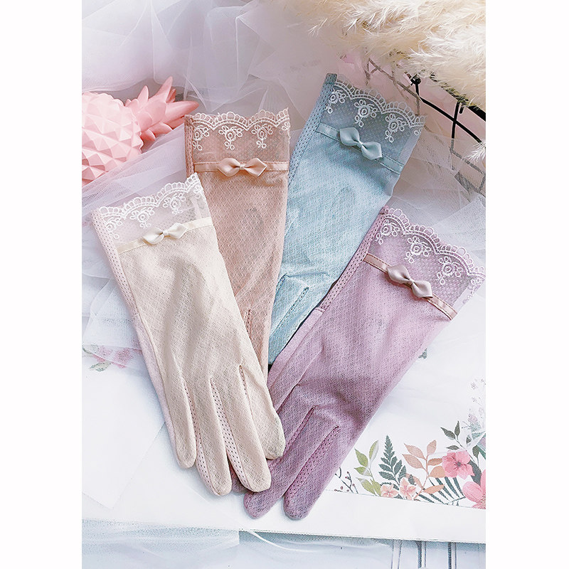 Перчатки, тонкий эластичный летний кружевной короткий осенний комплект, защита от солнца