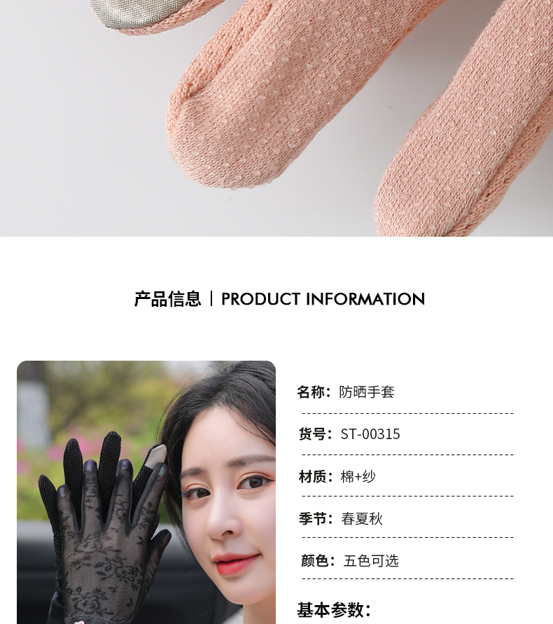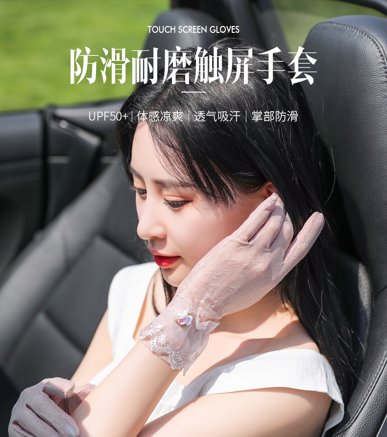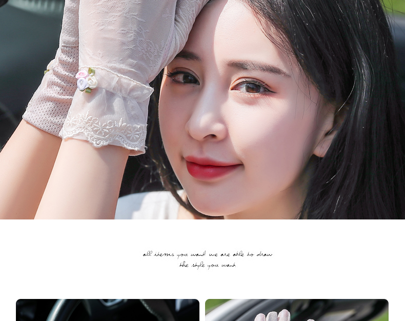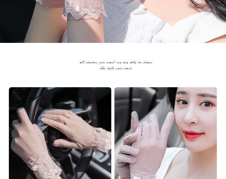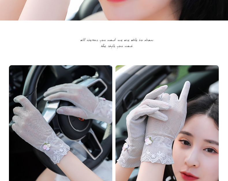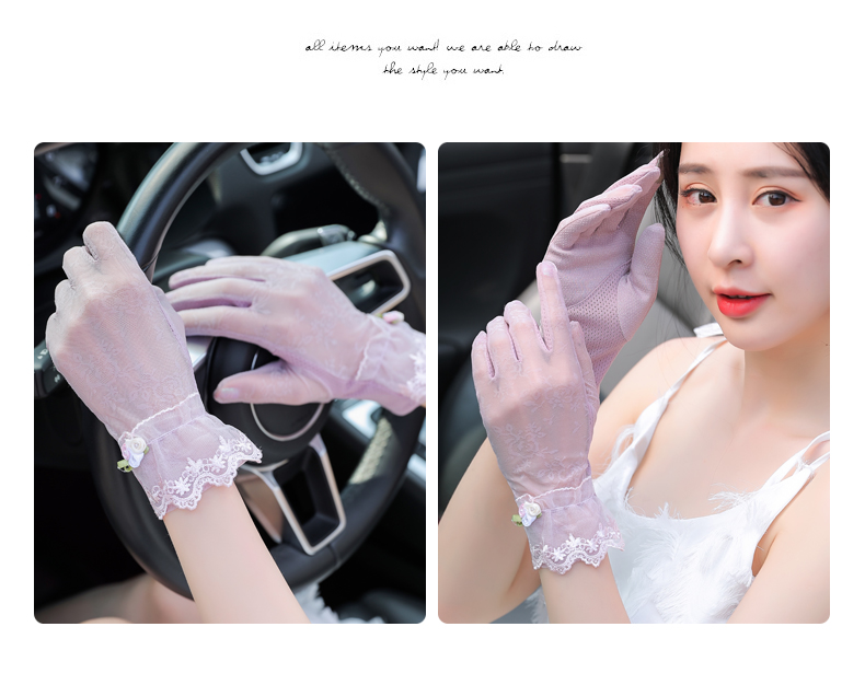 Перчатки, тонкий летний кружевной спортивный дорожный комплект, защита от солнца, в корейском стиле