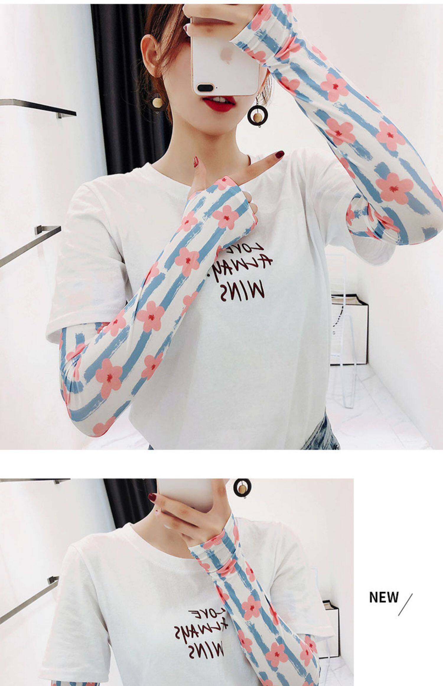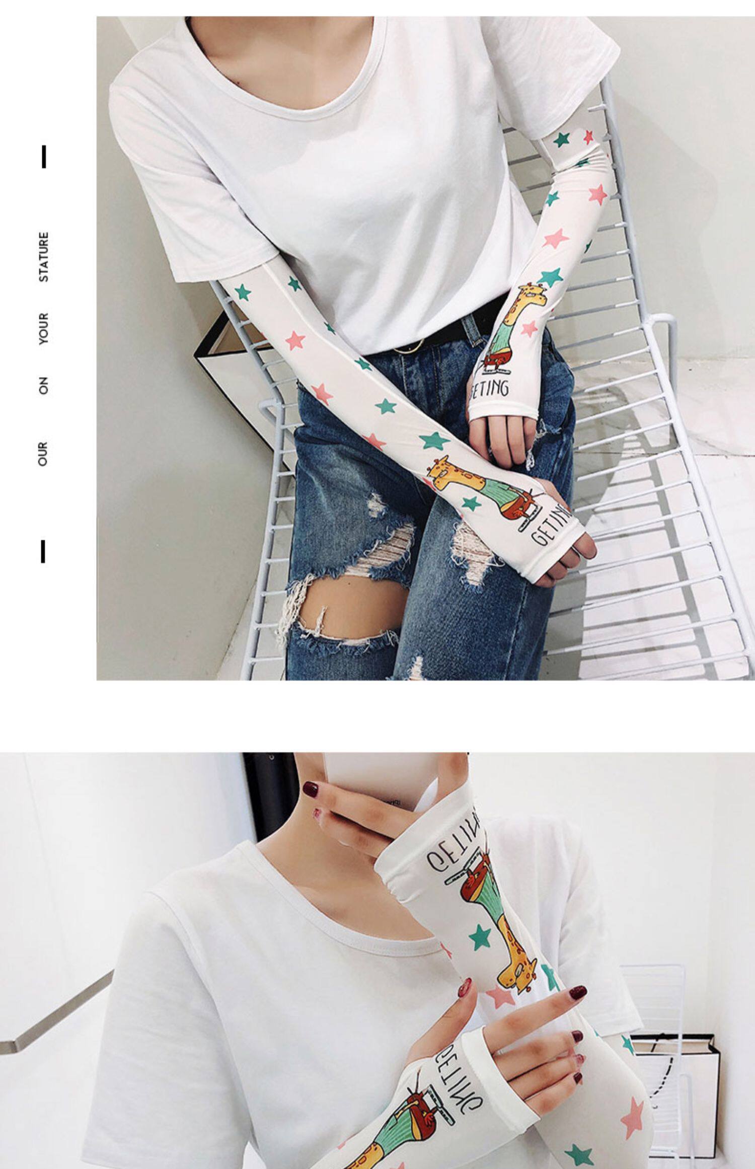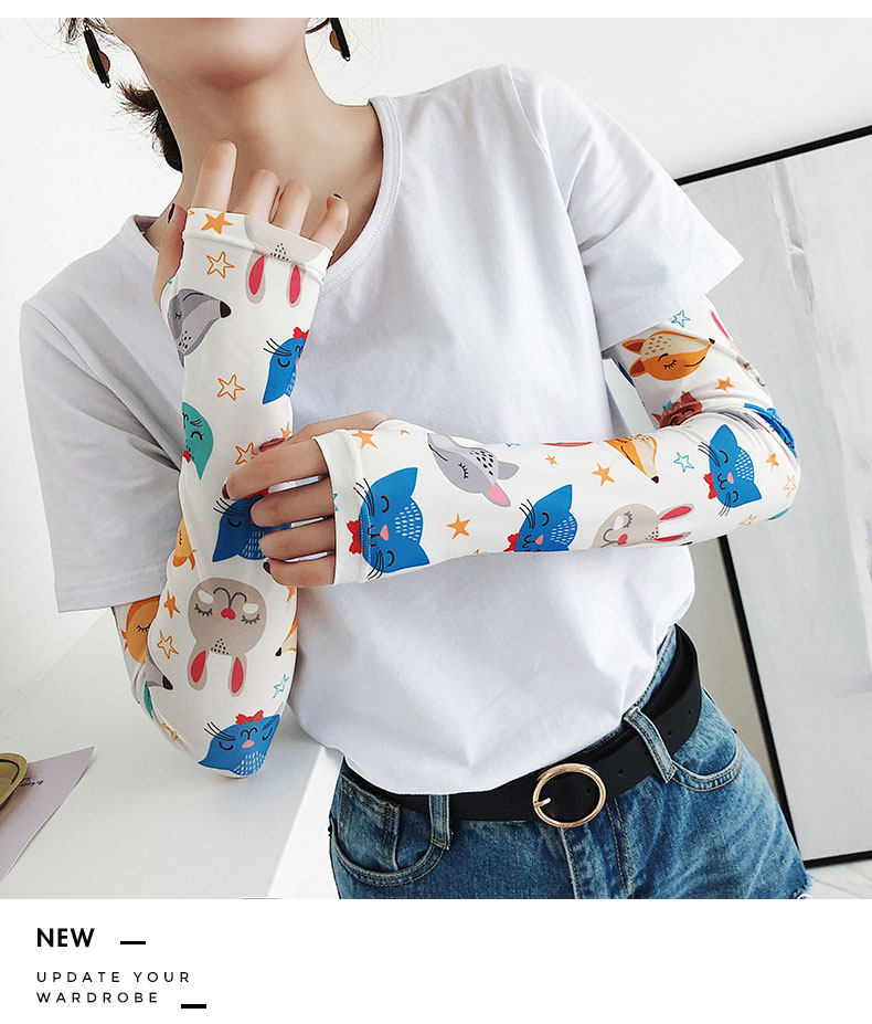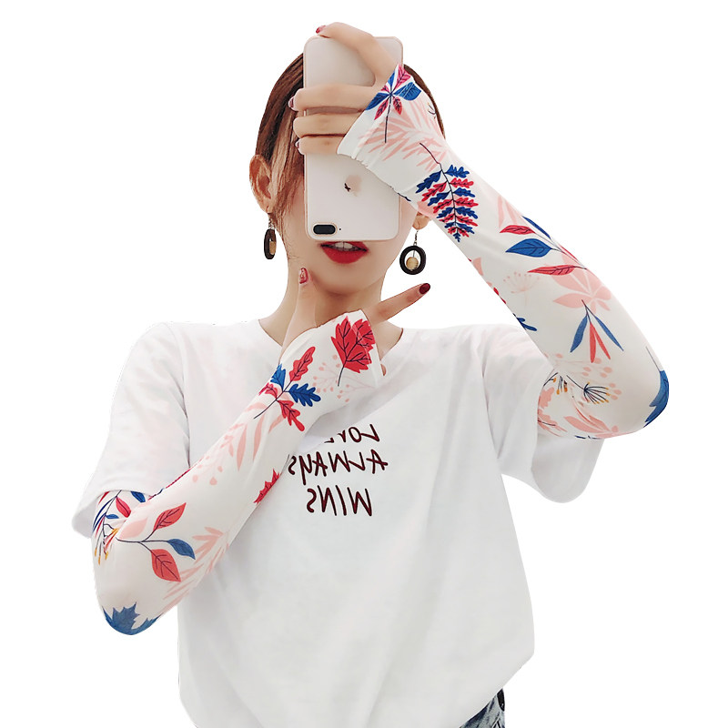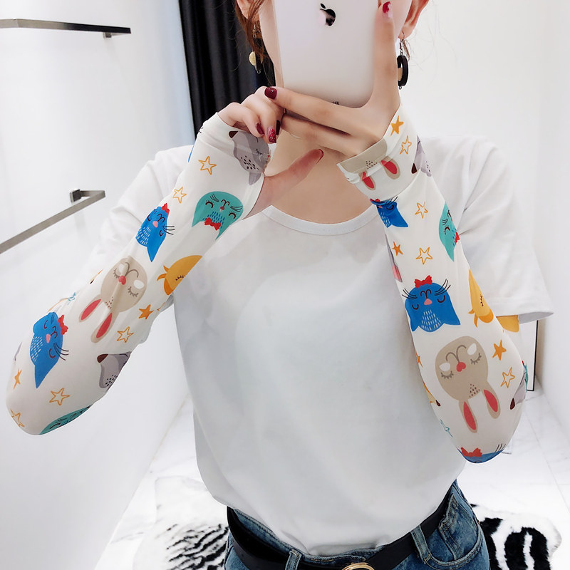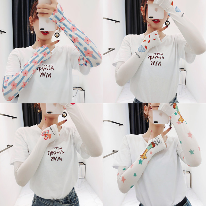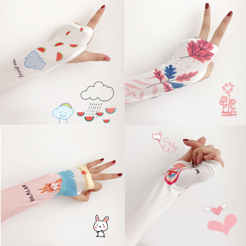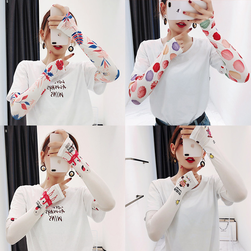 Брендовые милые шелковые тонкие нарукавники, перчатки, комплект, популярно в интернете, защита от солнца