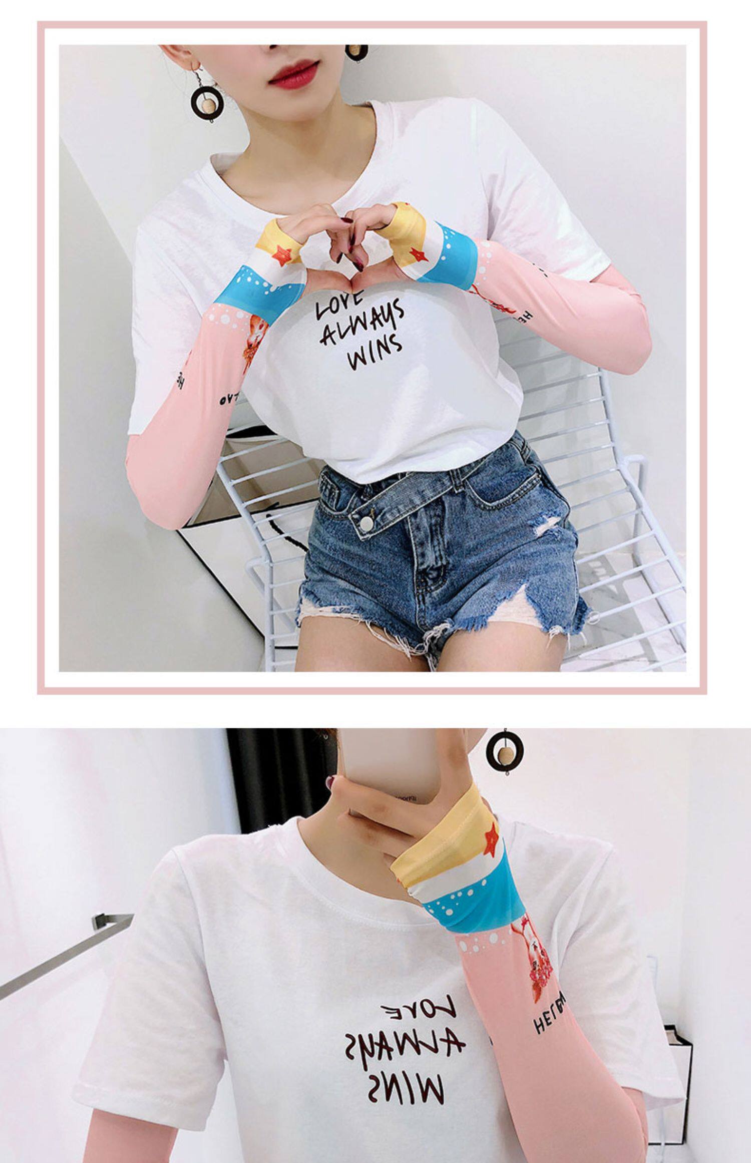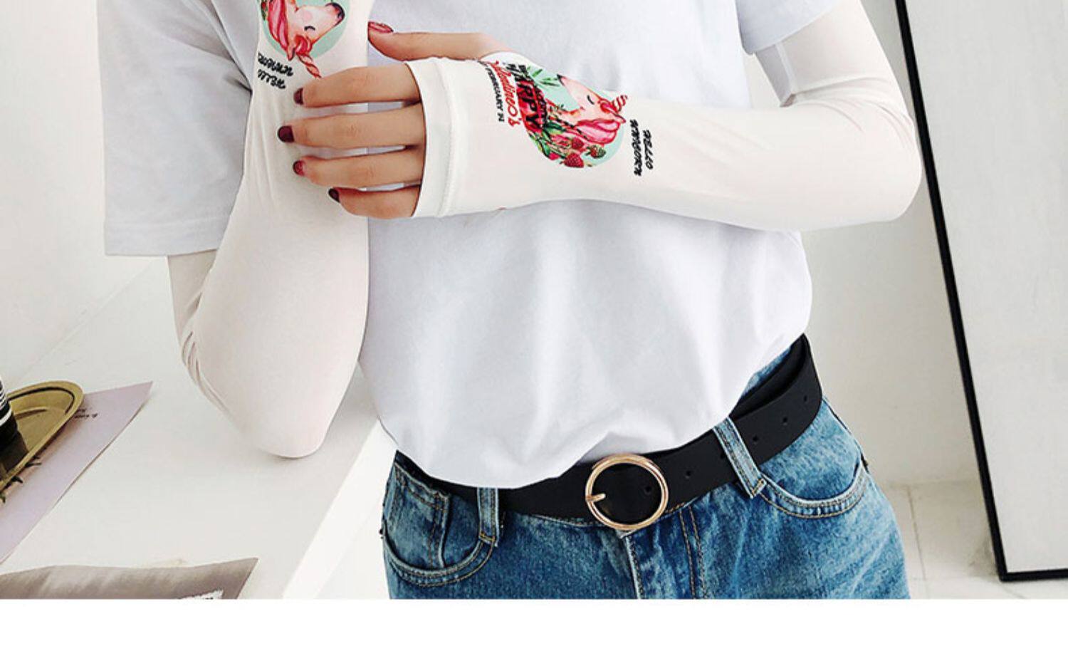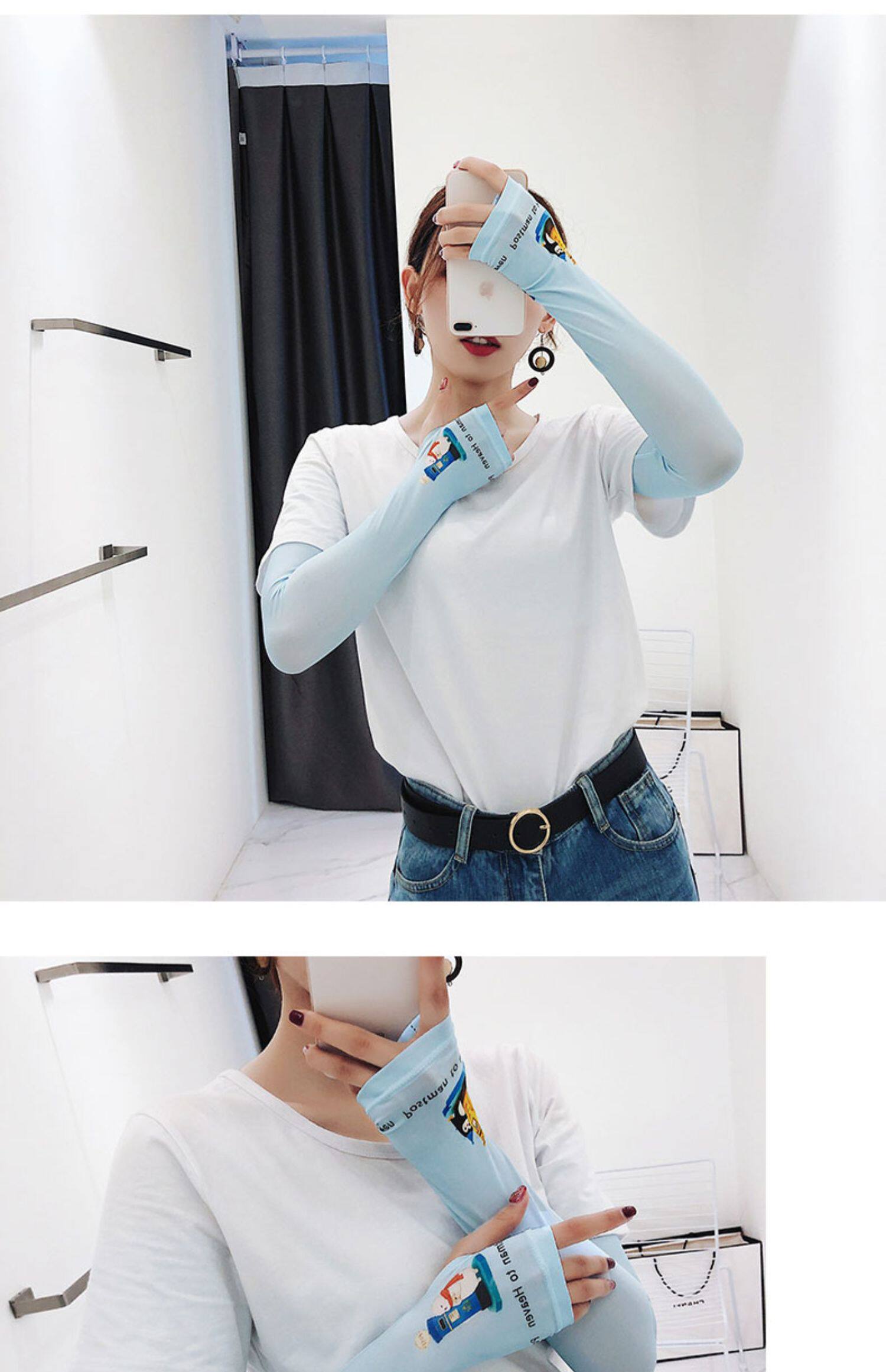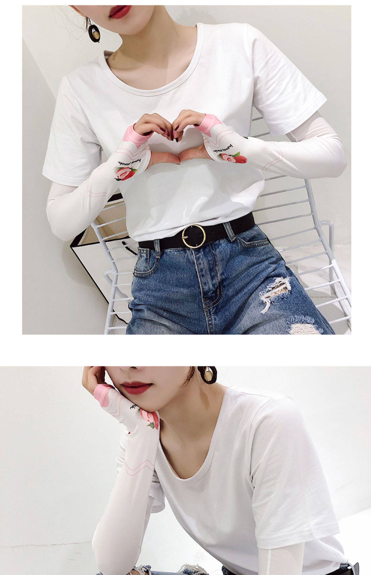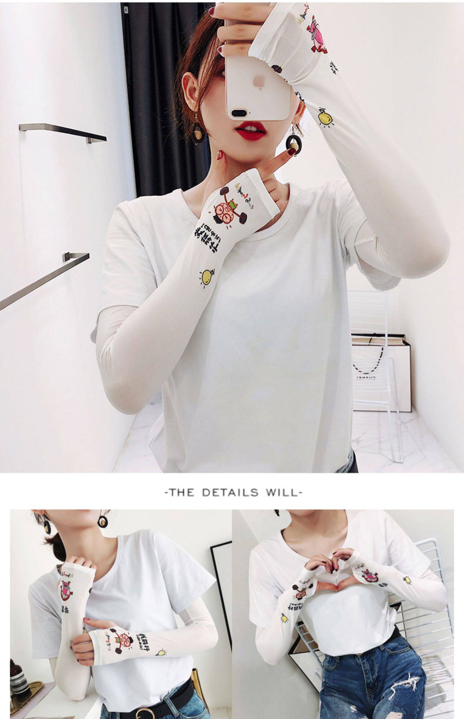 Брендовые милые шелковые тонкие нарукавники, перчатки, комплект, популярно в интернете, защита от солнца