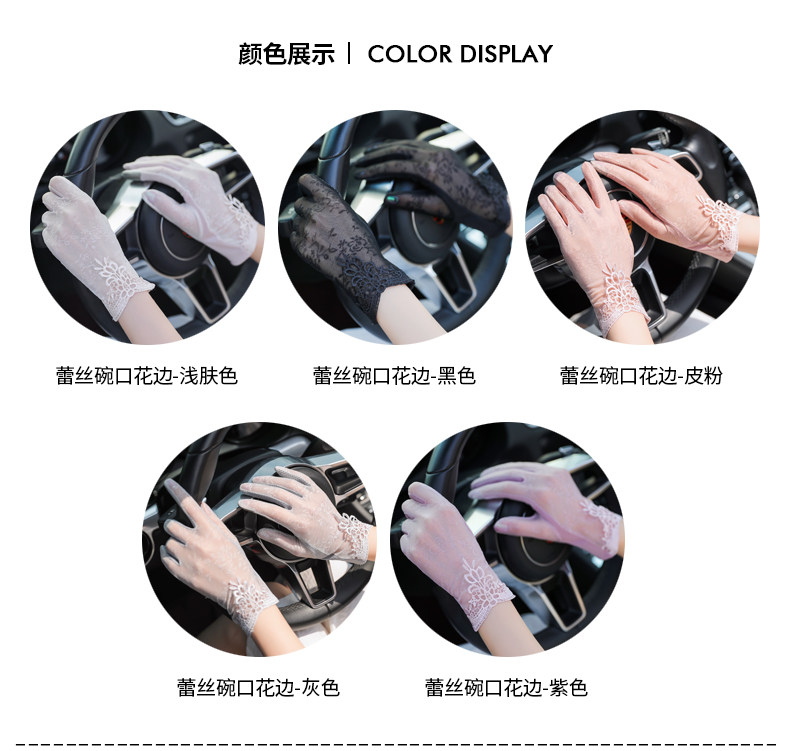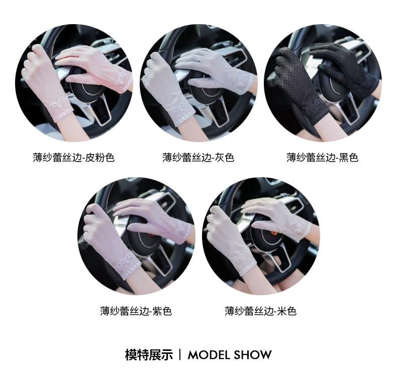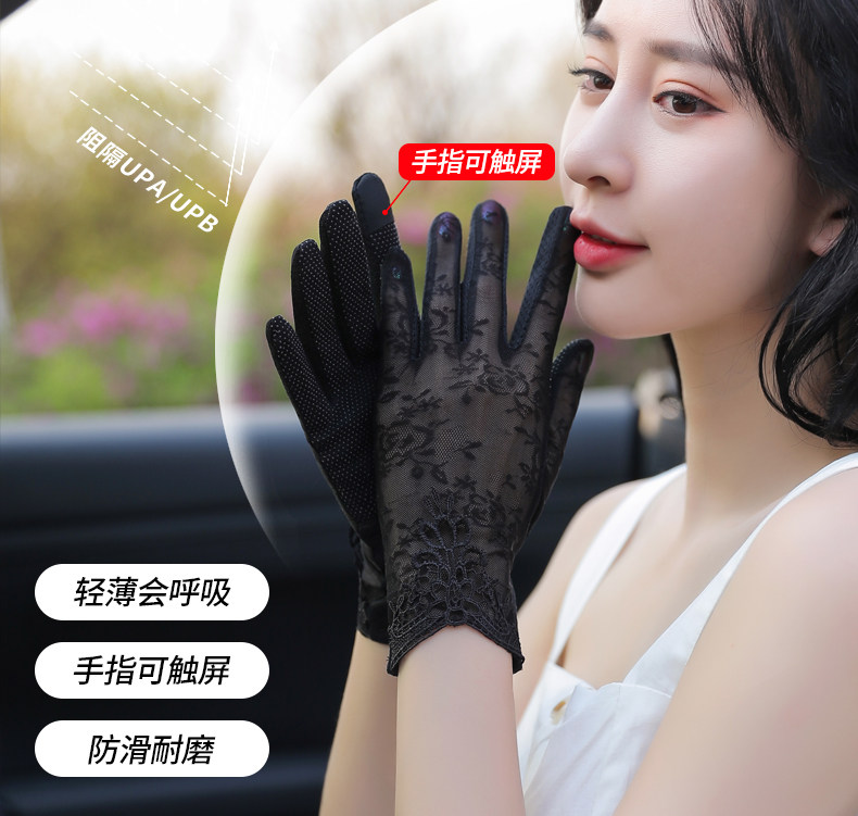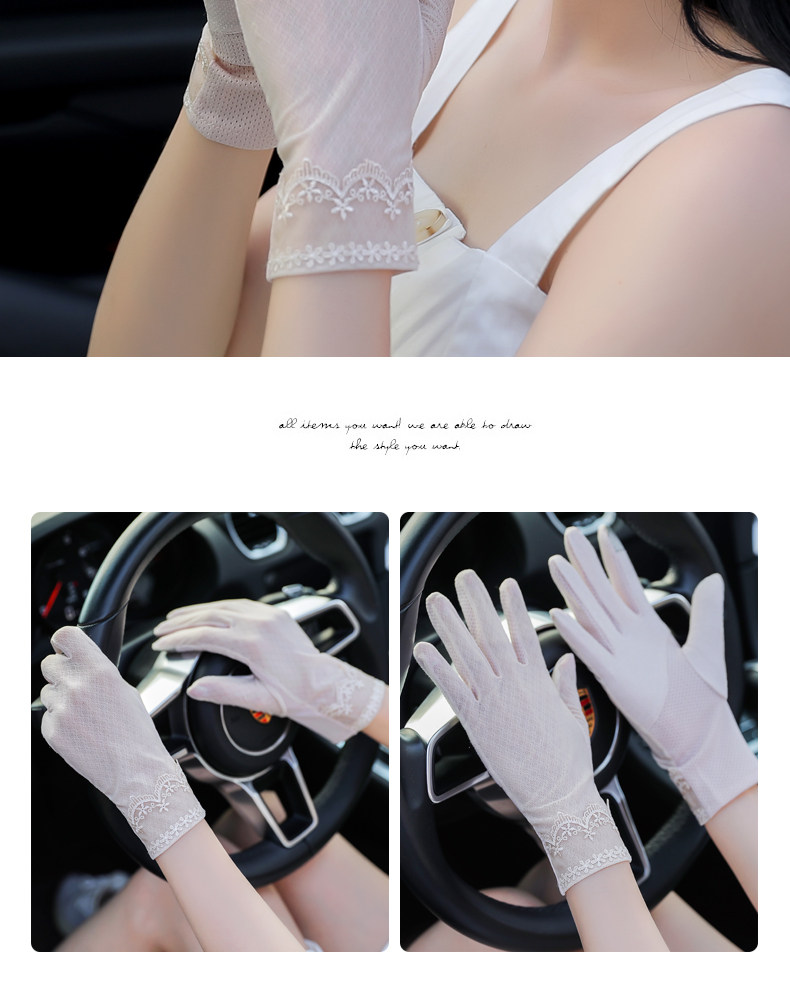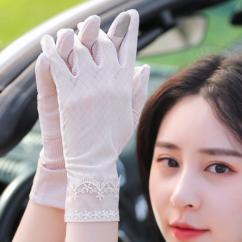 Перчатки, тонкий шелковый короткий кружевной эластичный комплект, защита от солнца, защита от ультрафиолета