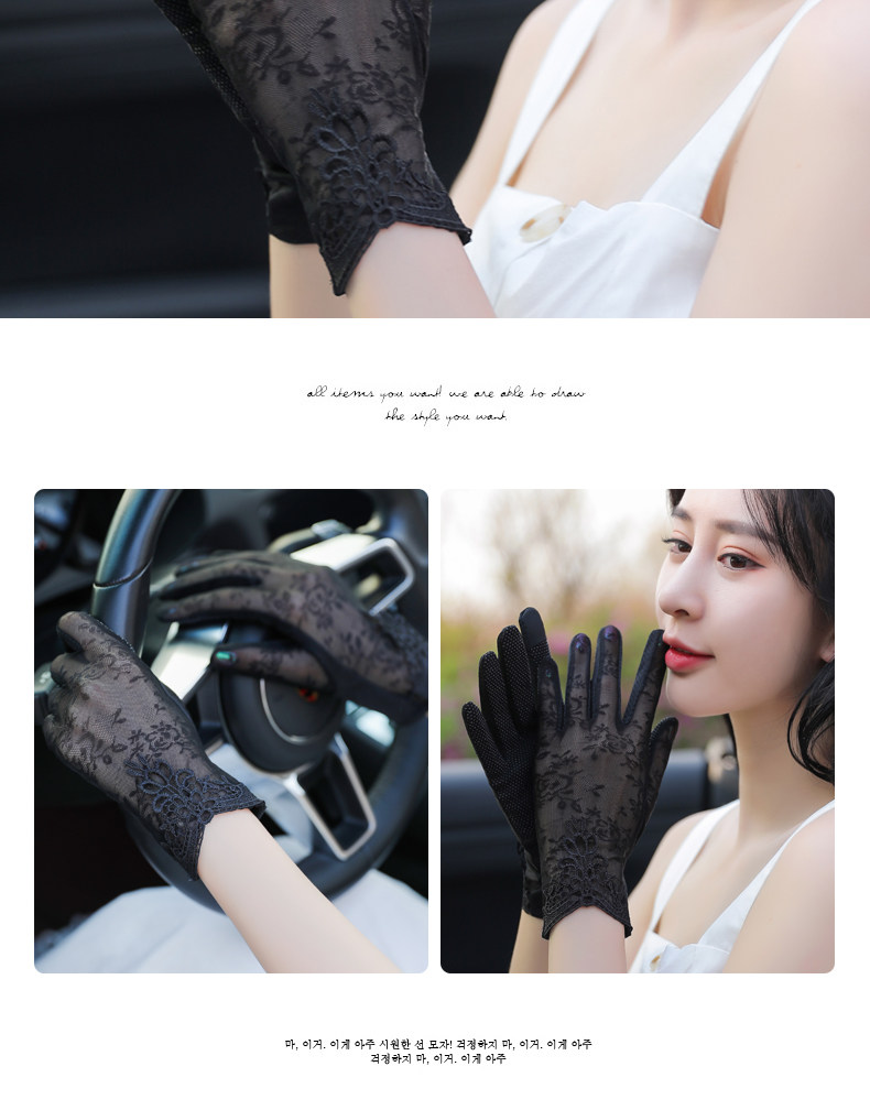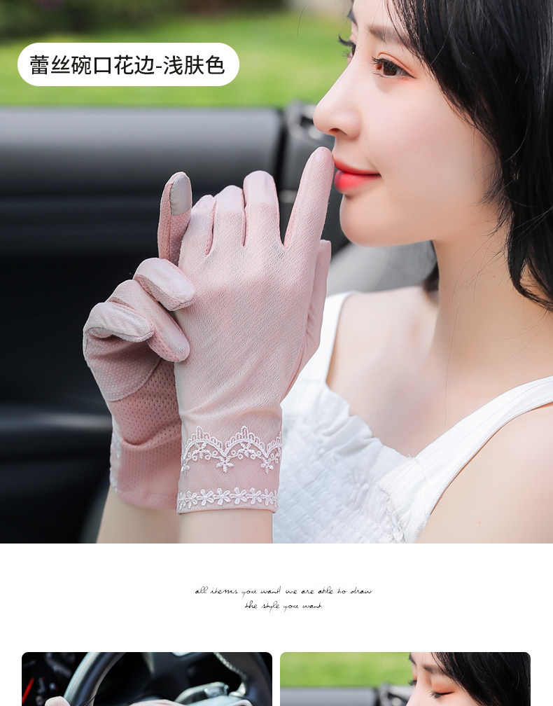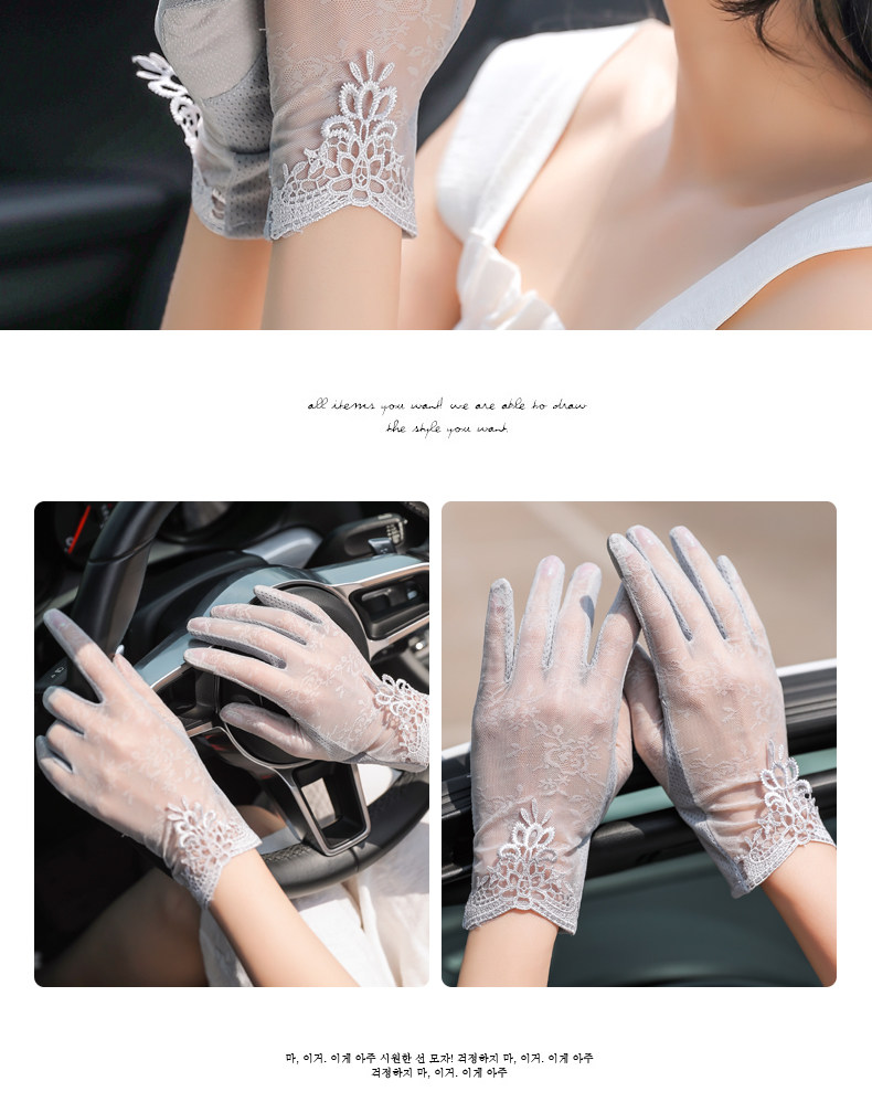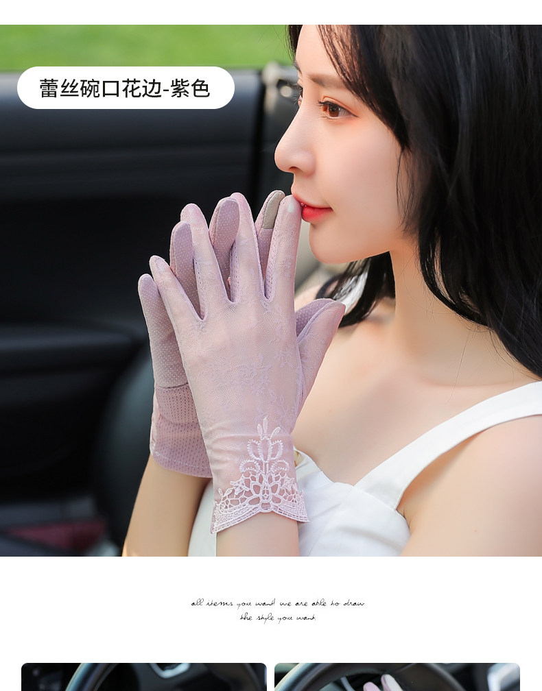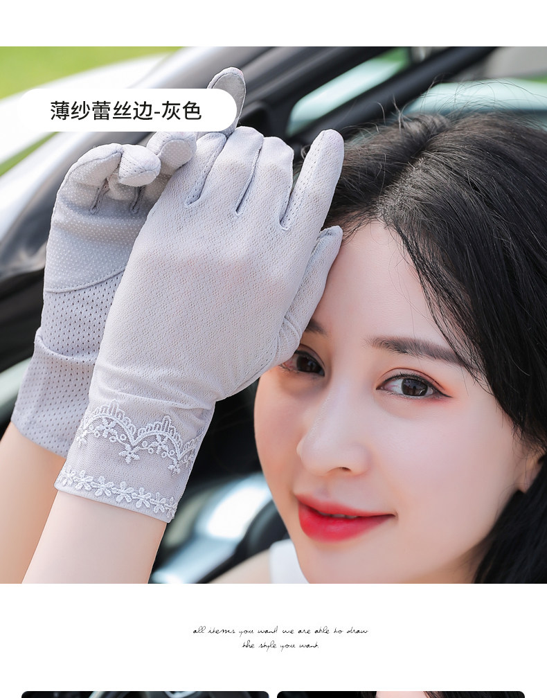 Перчатки, тонкий шелковый короткий кружевной эластичный комплект, защита от солнца, защита от ультрафиолета