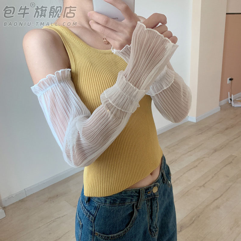Нарукавники, шелковый летний комплект, тонкие кружевные перчатки, защита от солнца, популярно в интернете, свободный крой