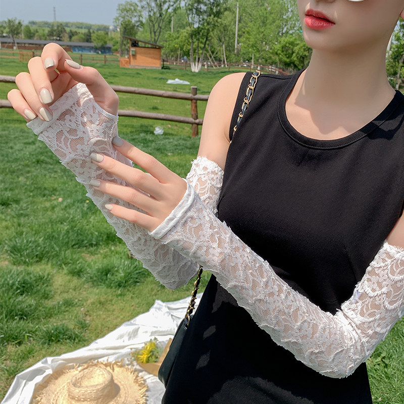 Кружевные нарукавники, шелковые тонкие перчатки, защита от солнца, защита от ультрафиолета