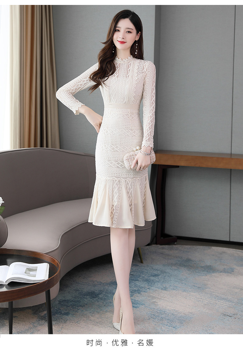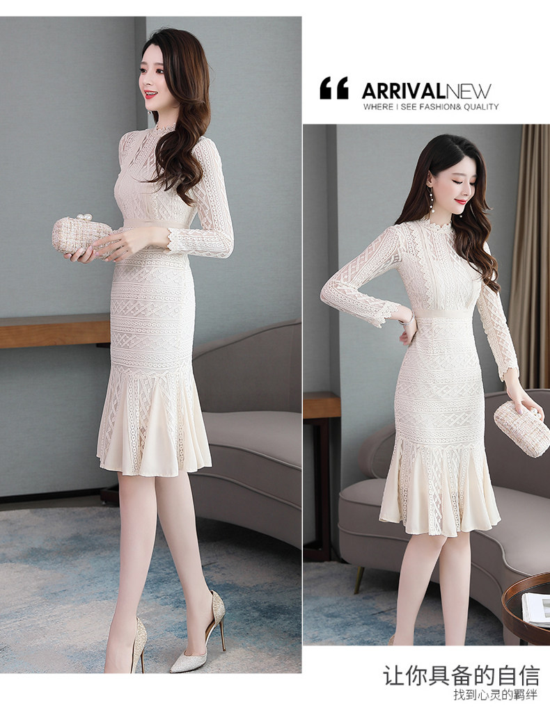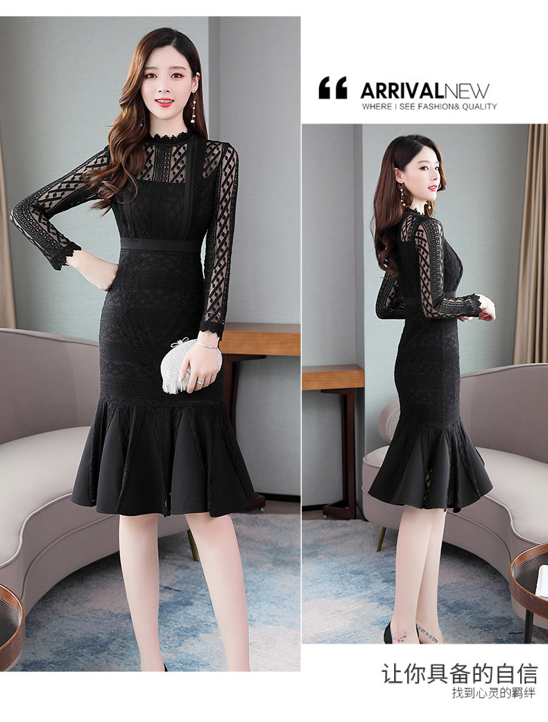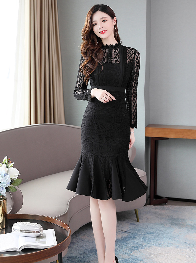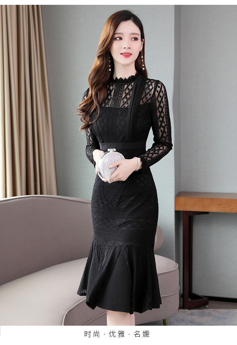 Осеннее длинное платье, французский стиль, крой «рыбий хвост», с акцентом на бедрах, длина миди