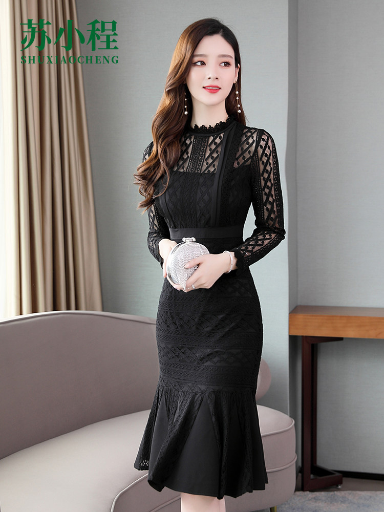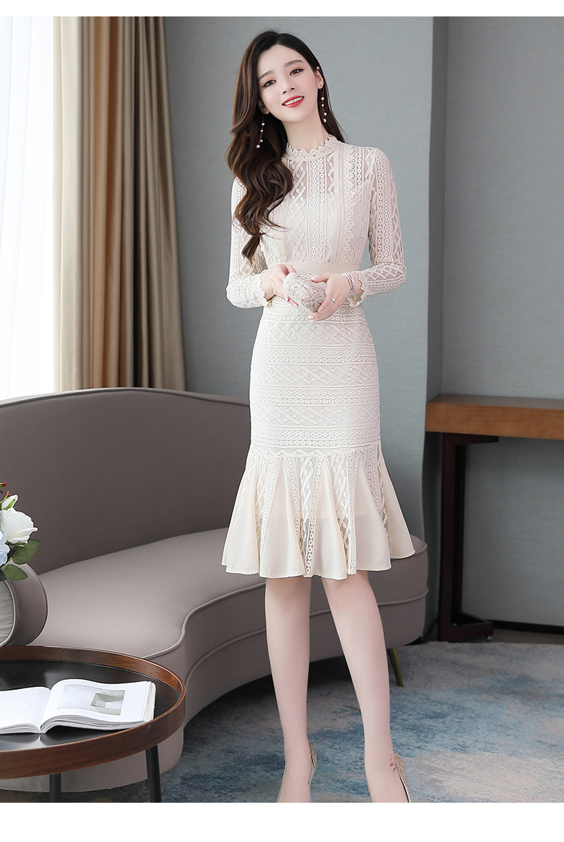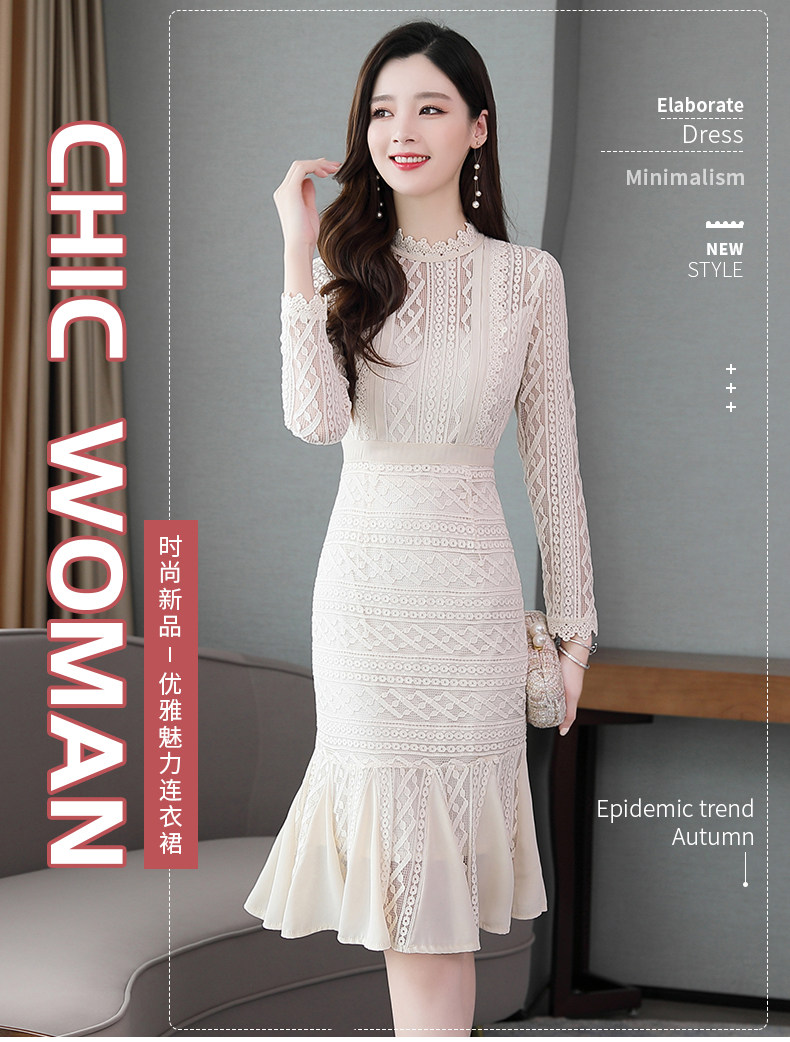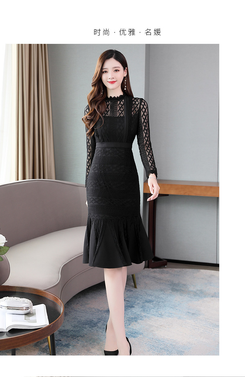 Осеннее длинное платье, французский стиль, крой «рыбий хвост», с акцентом на бедрах, длина миди