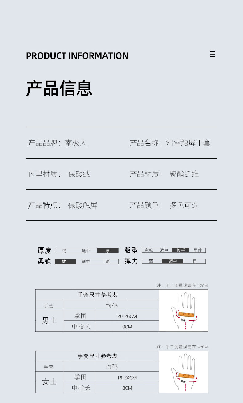 南极人 Мужские зимние ветрозащитные перчатки, утепленный удерживающий тепло зимний лыжный комплект