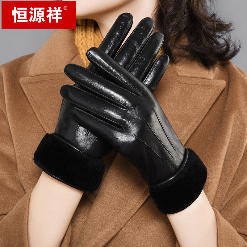 恒源祥 Зимние удерживающие тепло флисовые перчатки, комплект, увеличенная толщина, из натуральной кожи