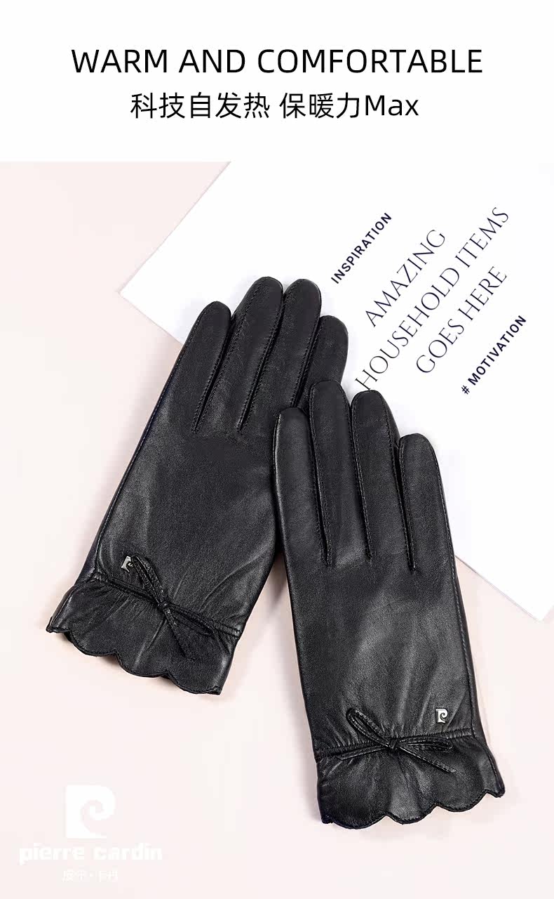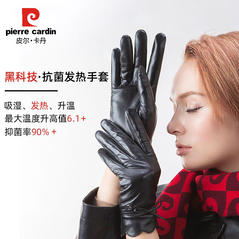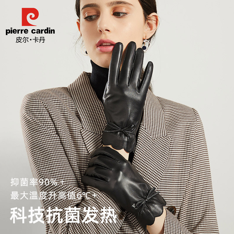 Пьер Кардина Кожаная перчатка Зима мисс. Вождение с бархатным теплым сенсорным экраном антибактериальные спонтанные нагревающие перчатки