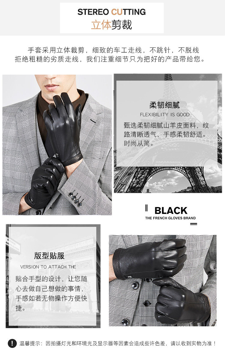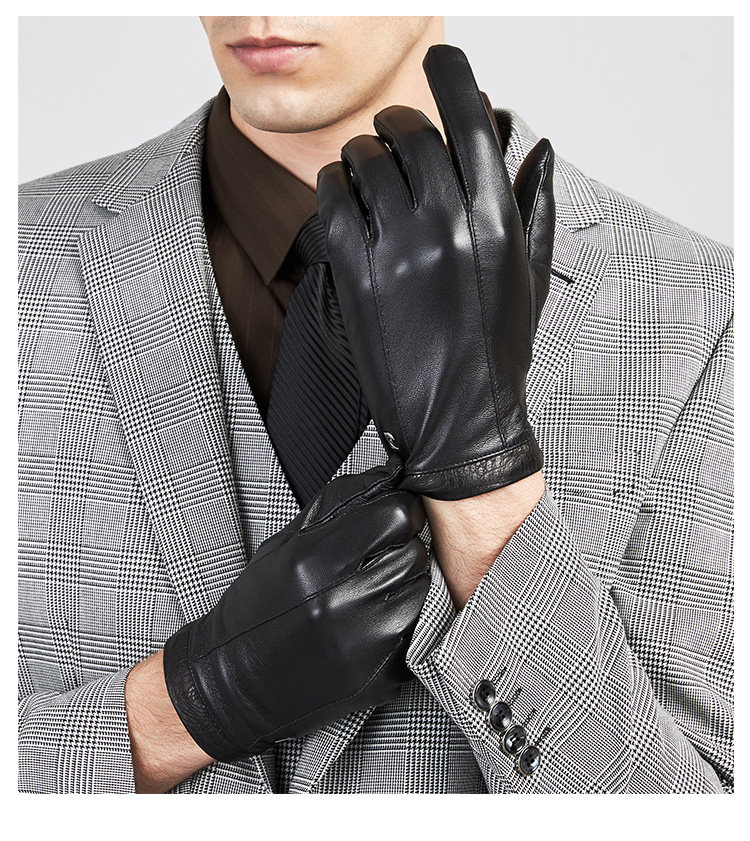 Мужские демисезонные ветрозащитные удерживающие тепло флисовые перчатки, из натуральной кожи