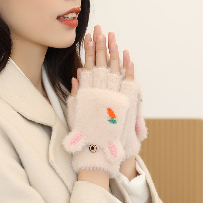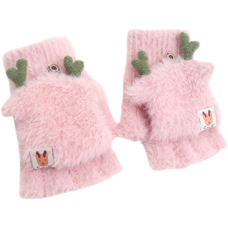 Бархатные перчатки, зимний мультяшный удерживающий тепло трикотажный комплект для школьников для взрослых, без пальцев, подходит для подростков