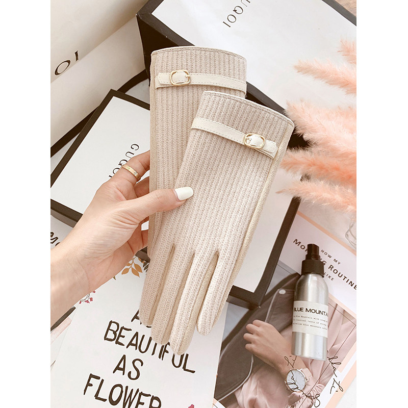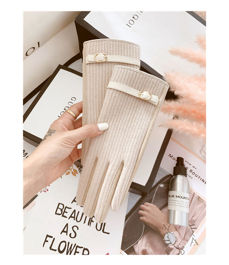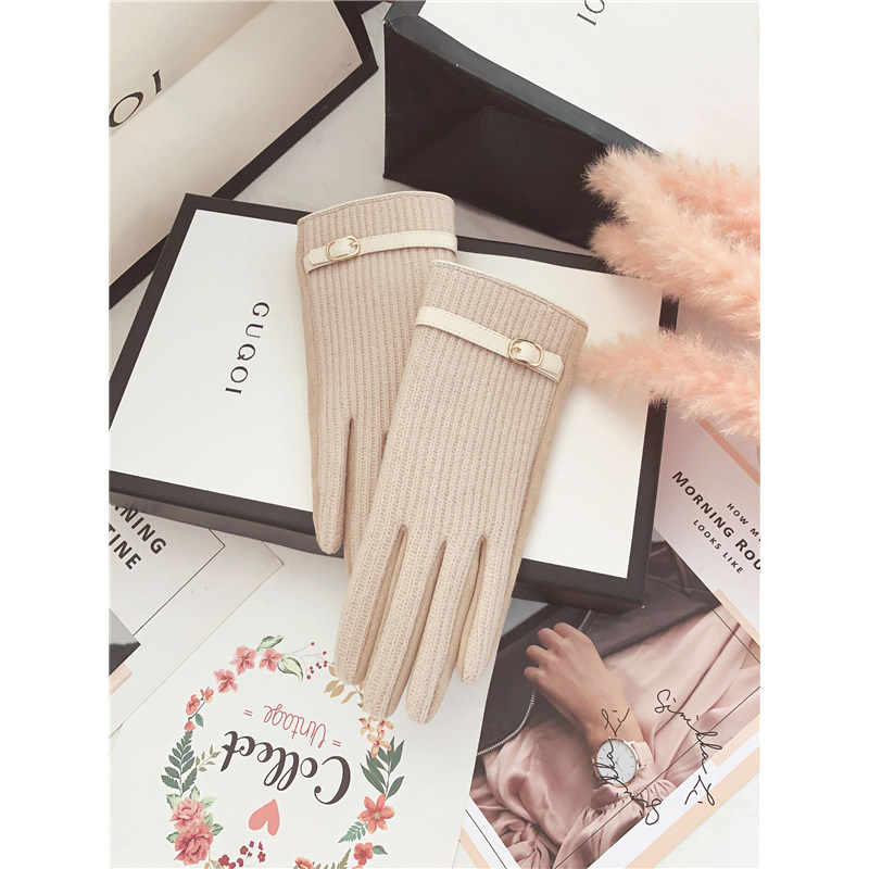 Шерстяные перчатки, зимний кашемировый милый утепленный удерживающий тепло ветрозащитный бархатный комплект, в корейском стиле