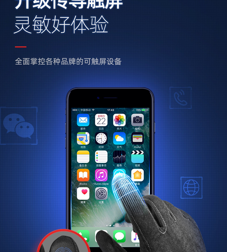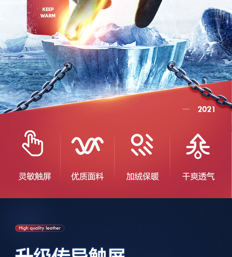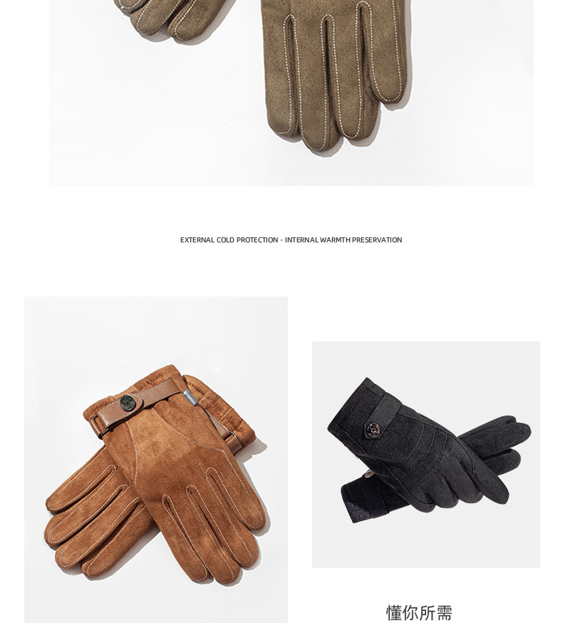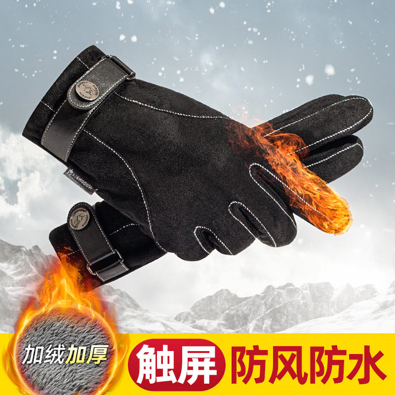 Мужские зимние утепленные удерживающие тепло флисовые перчатки, увеличенная толщина
