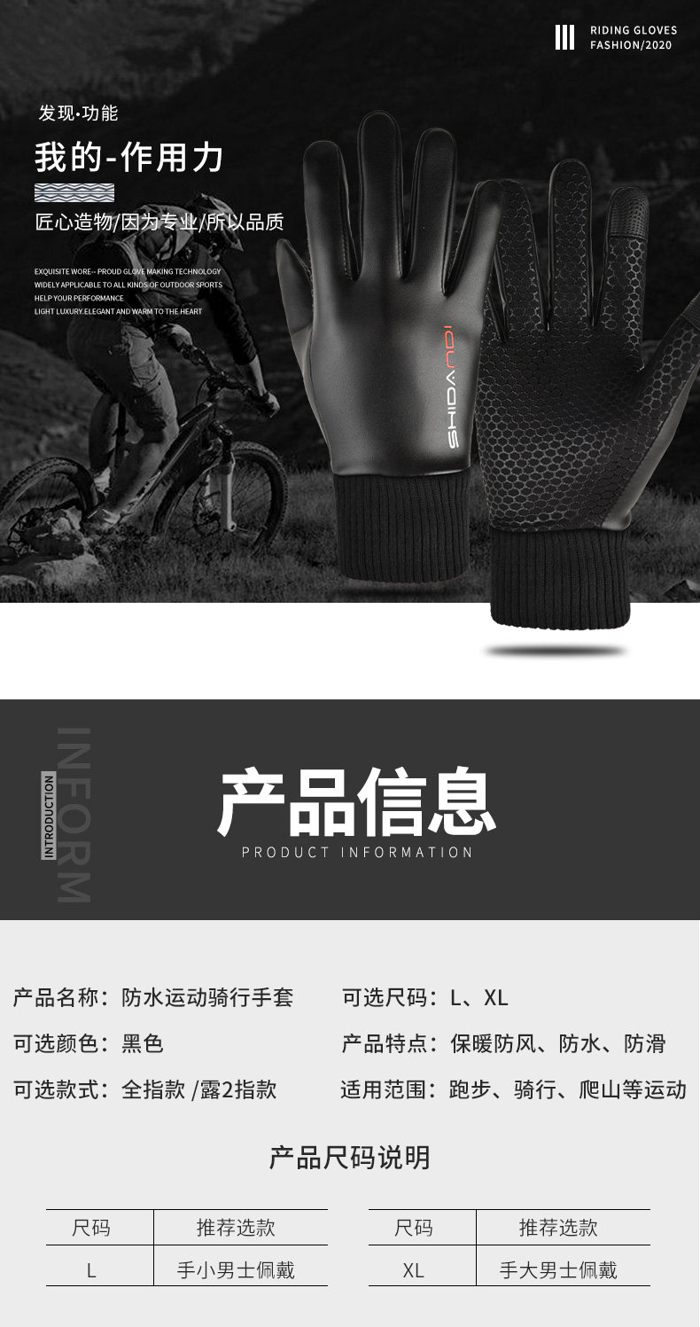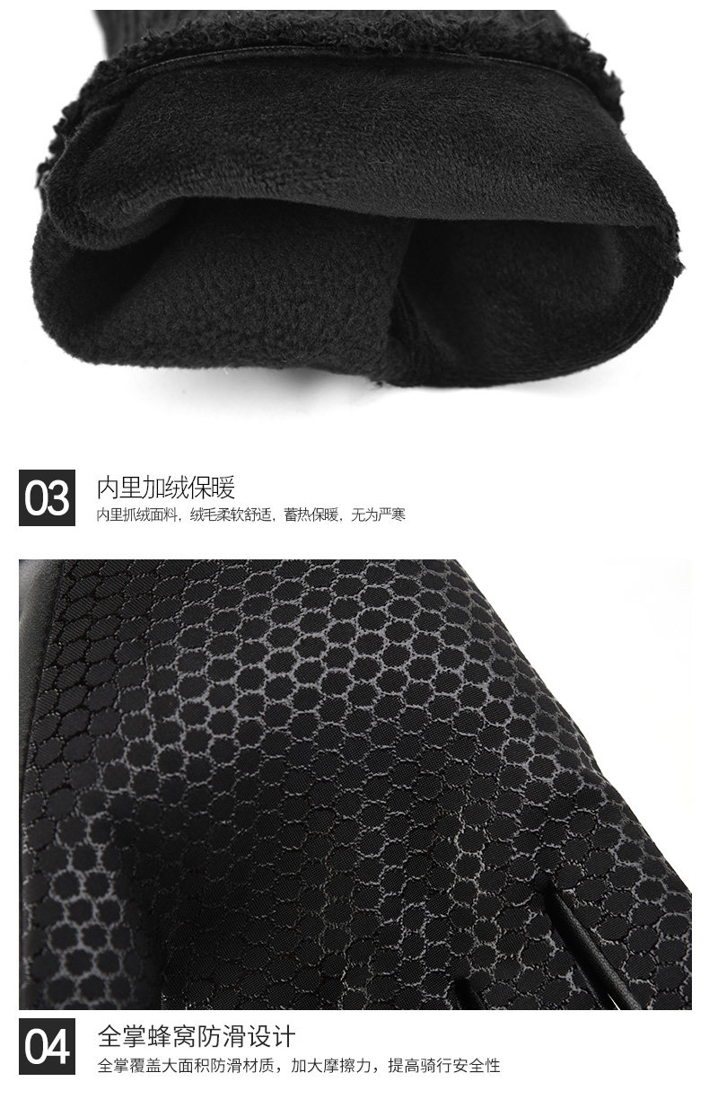 Осенние и зимние езды перчатки, водонепроницаемый ветер и ветрозащитный, бархат и тепло, представляют собой мотоцикл на открытом воздухе и езда на велосипеде, эластичная ткань, мягкая, удобная и не плотная, не слабая ладонь, которая обеспечивает вам безопасную защиту.Функция сенсорного экрана удобна для вызова.Экспресс вынос младшего брата ездит на перчатках.