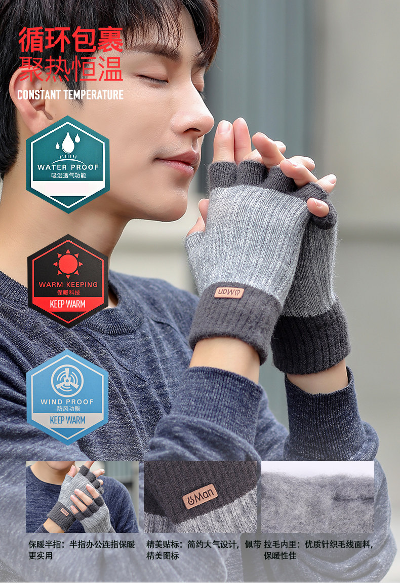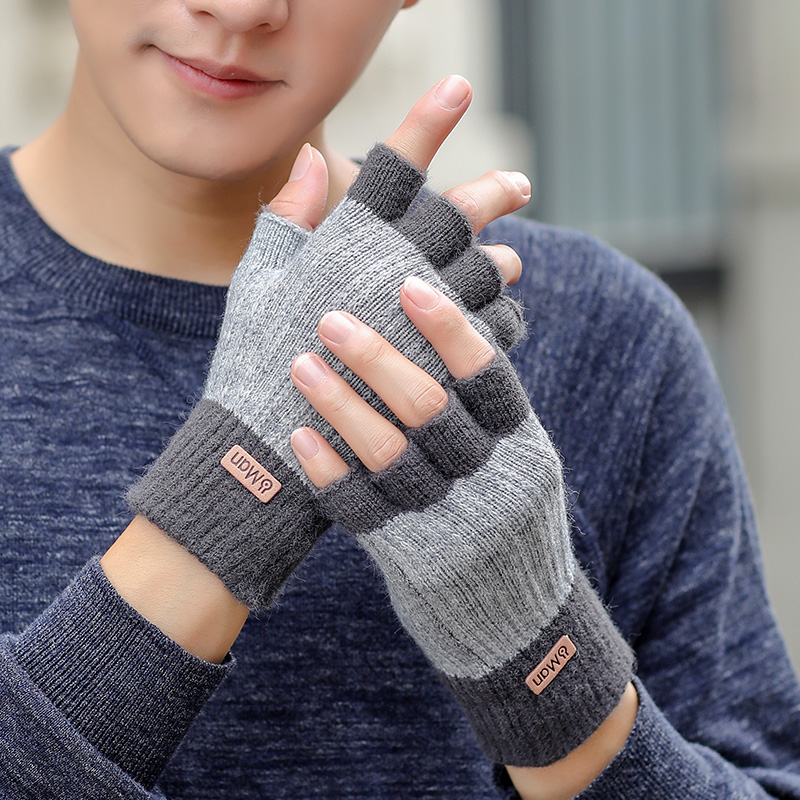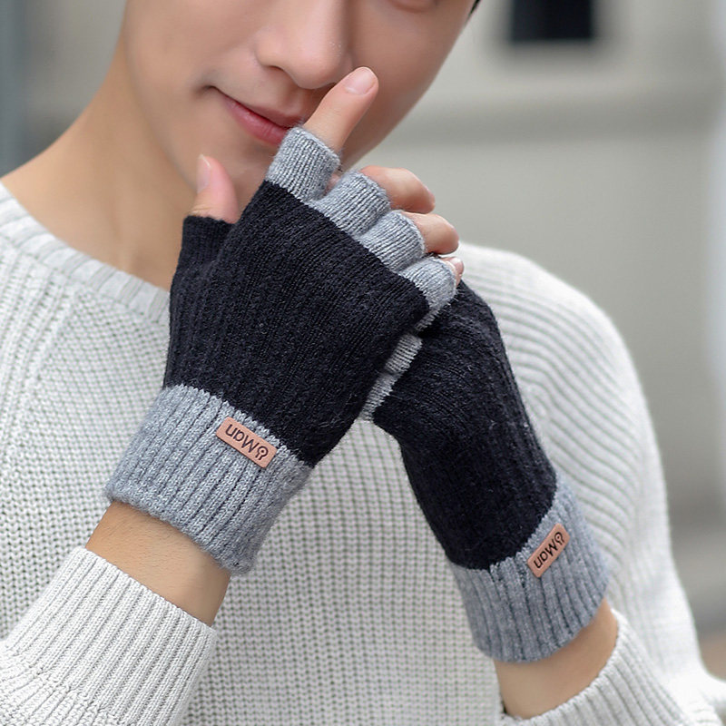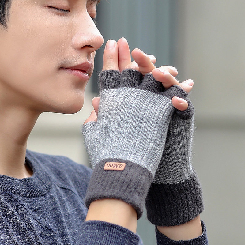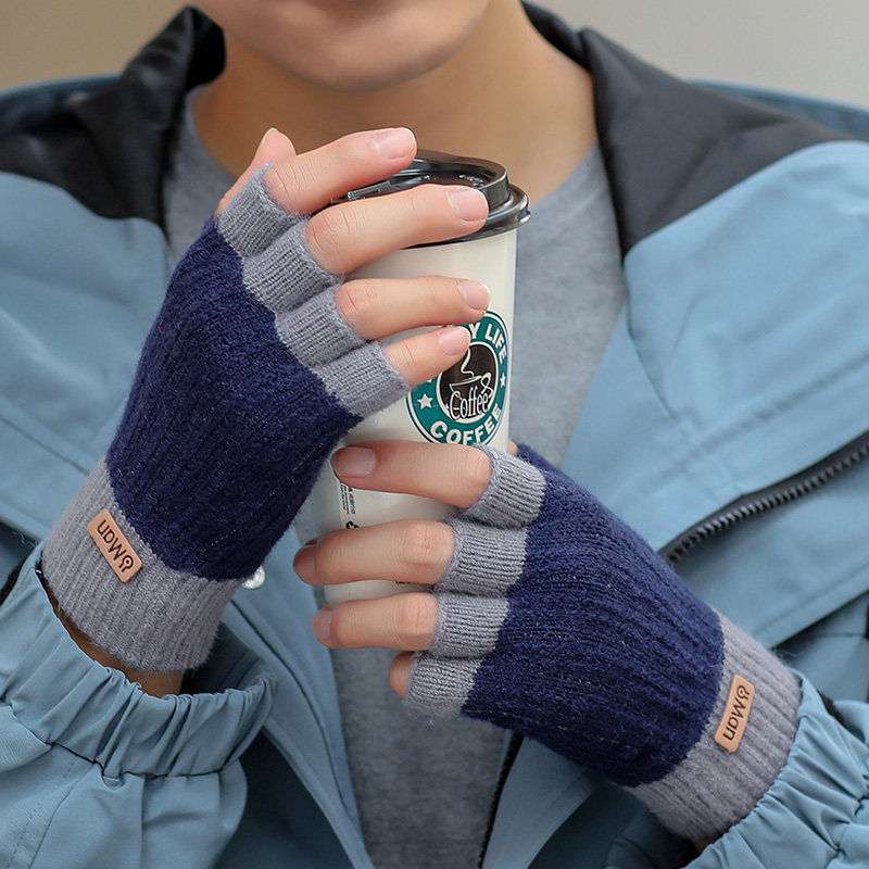 Мужские демисезонные трикотажные удерживающие тепло шерстяные перчатки, зимний трендовый комплект для школьников, в корейском стиле, без пальцев