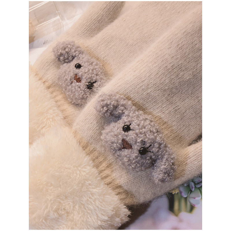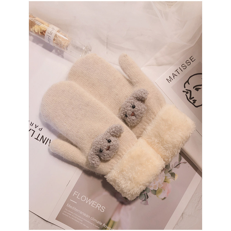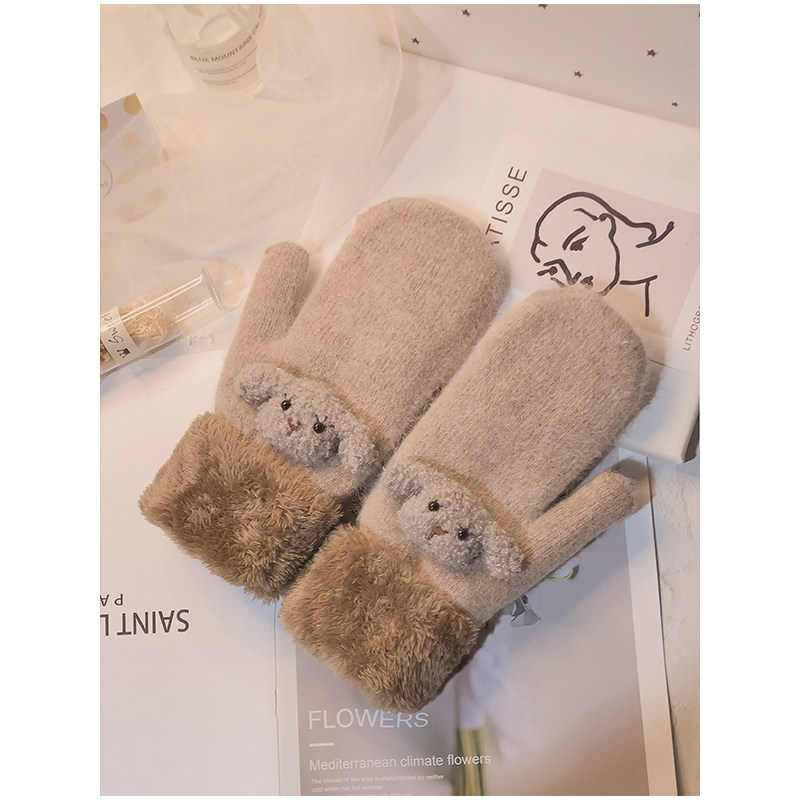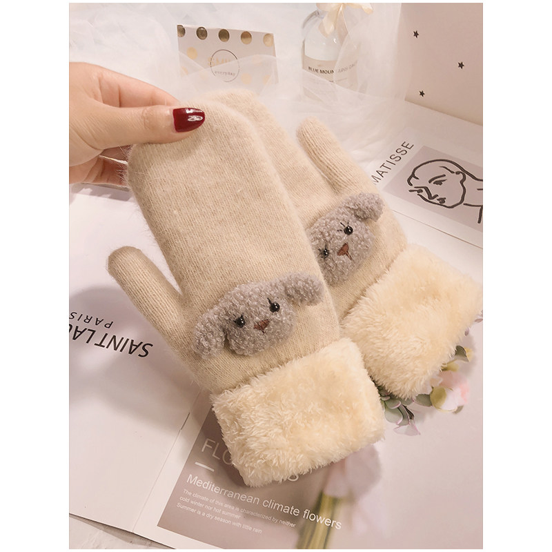 Перчатки, зимний милый дорожный шерстяной осенний мультяшный бархатный комплект, в корейском стиле, увеличенная толщина