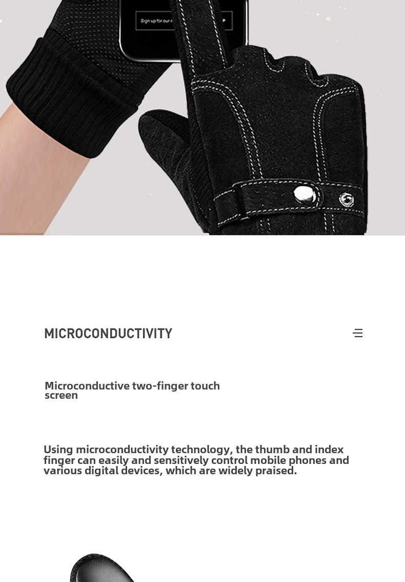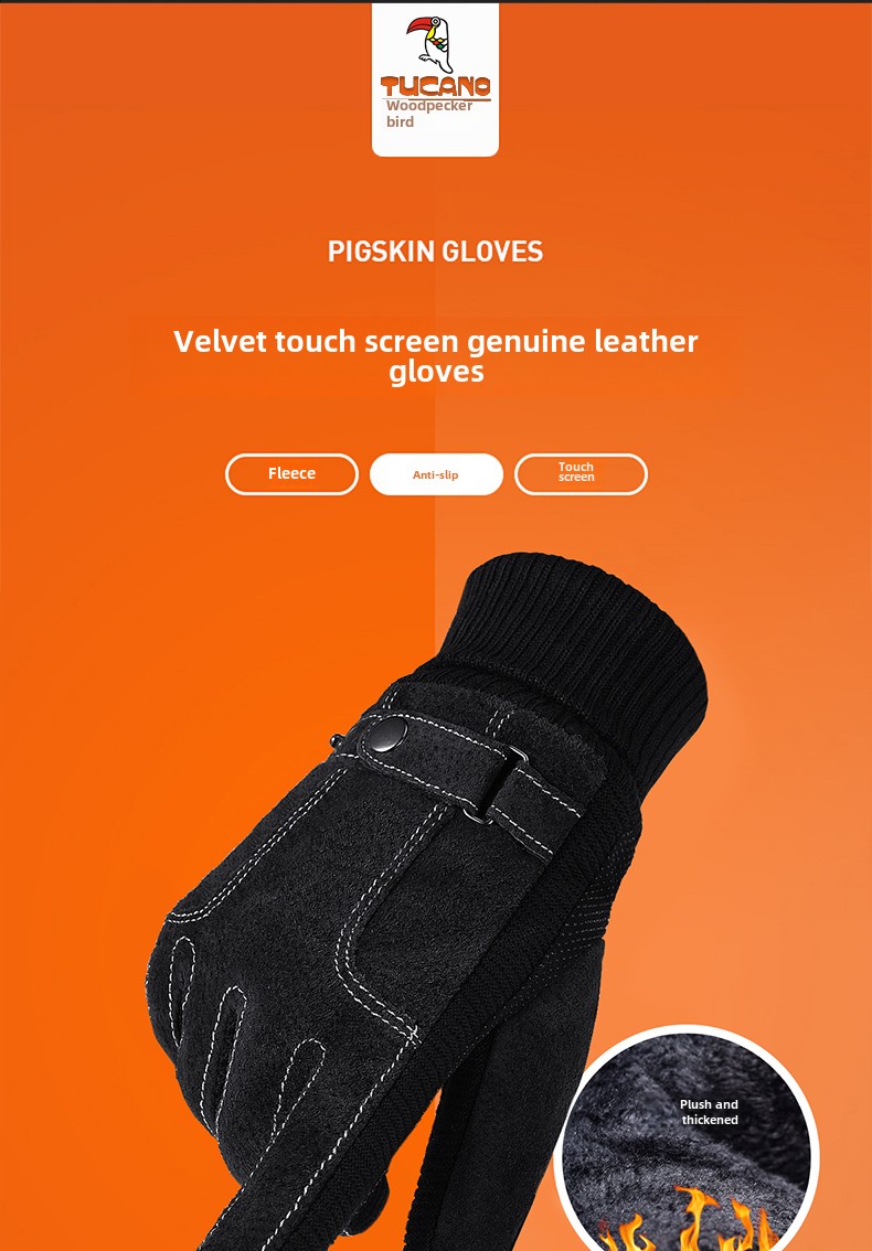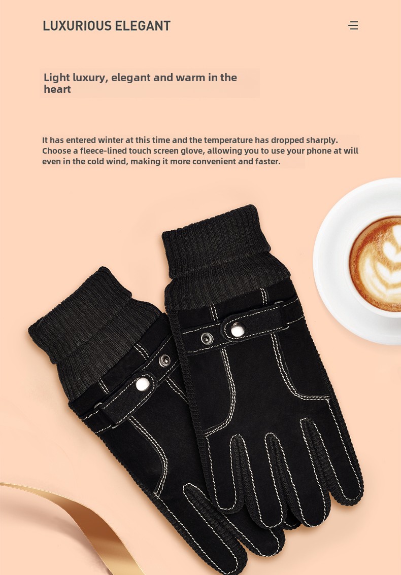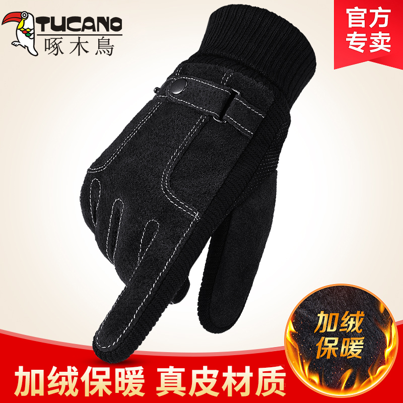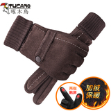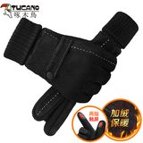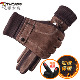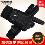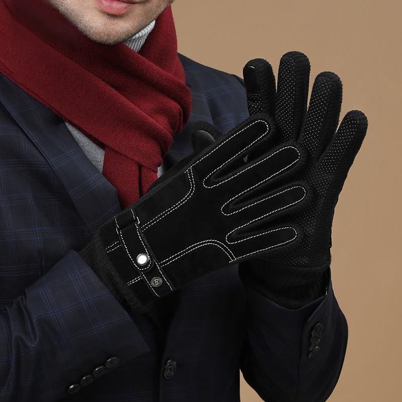 Мужские утепленные удерживающие тепло ветрозащитные перчатки, из натуральной кожи