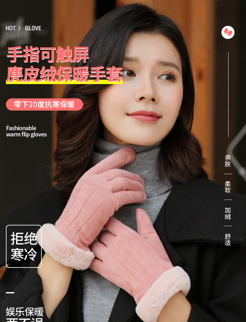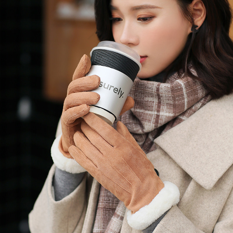 Перчатки, демисезонный флисовый удерживающий тепло бархатный милый универсальный зимний комплект для школьников и студентов, увеличенная толщина