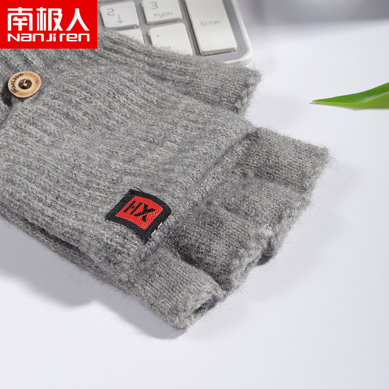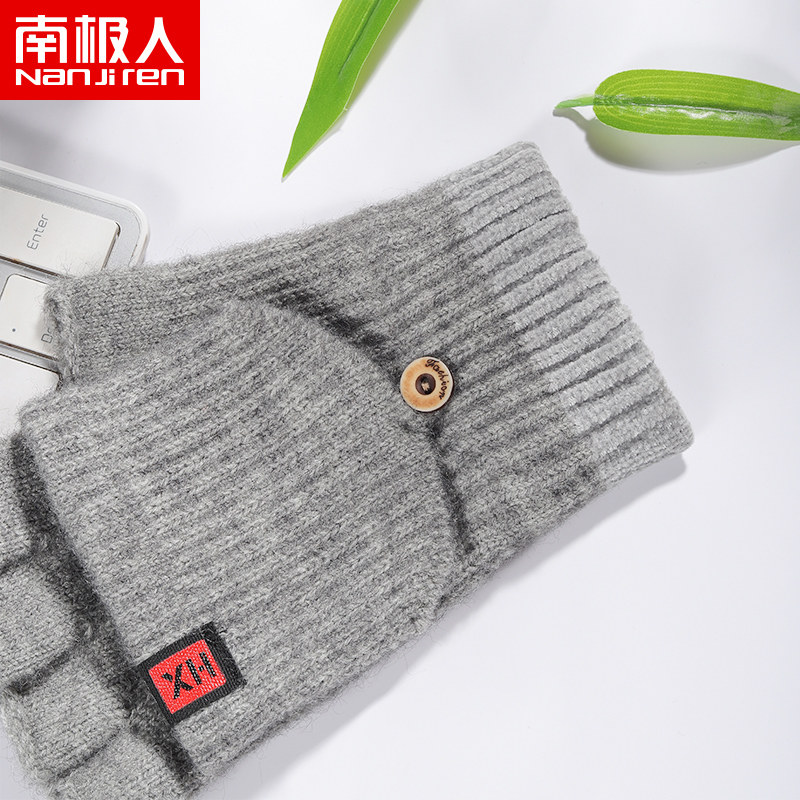 南极人 Мужские демисезонные удерживающие тепло перчатки, ветрозащитный шерстяной трикотажный комплект для школьников, без пальцев