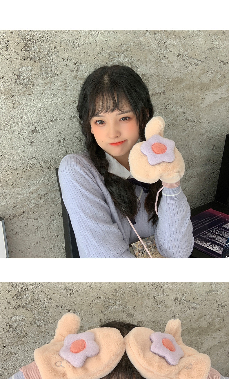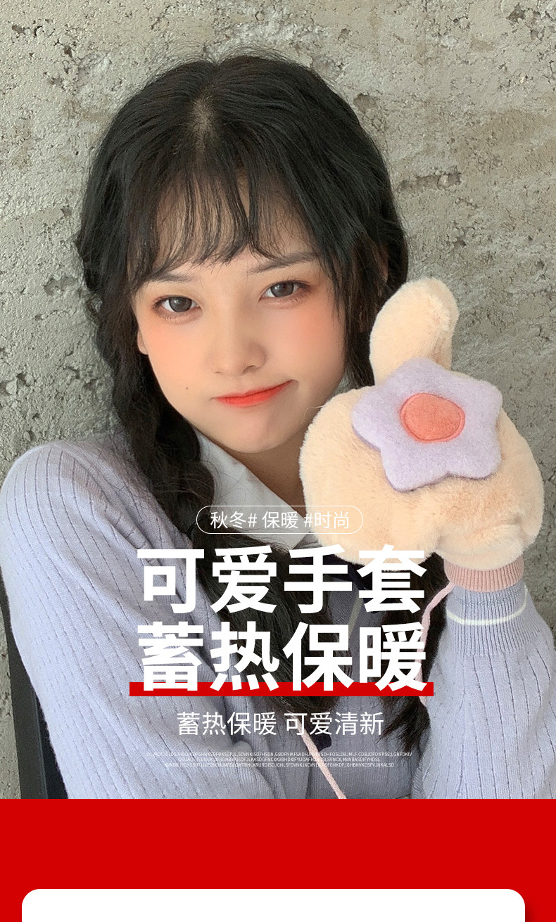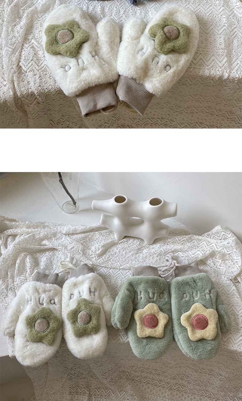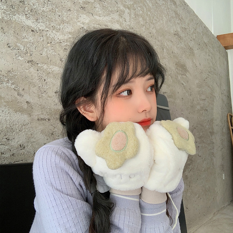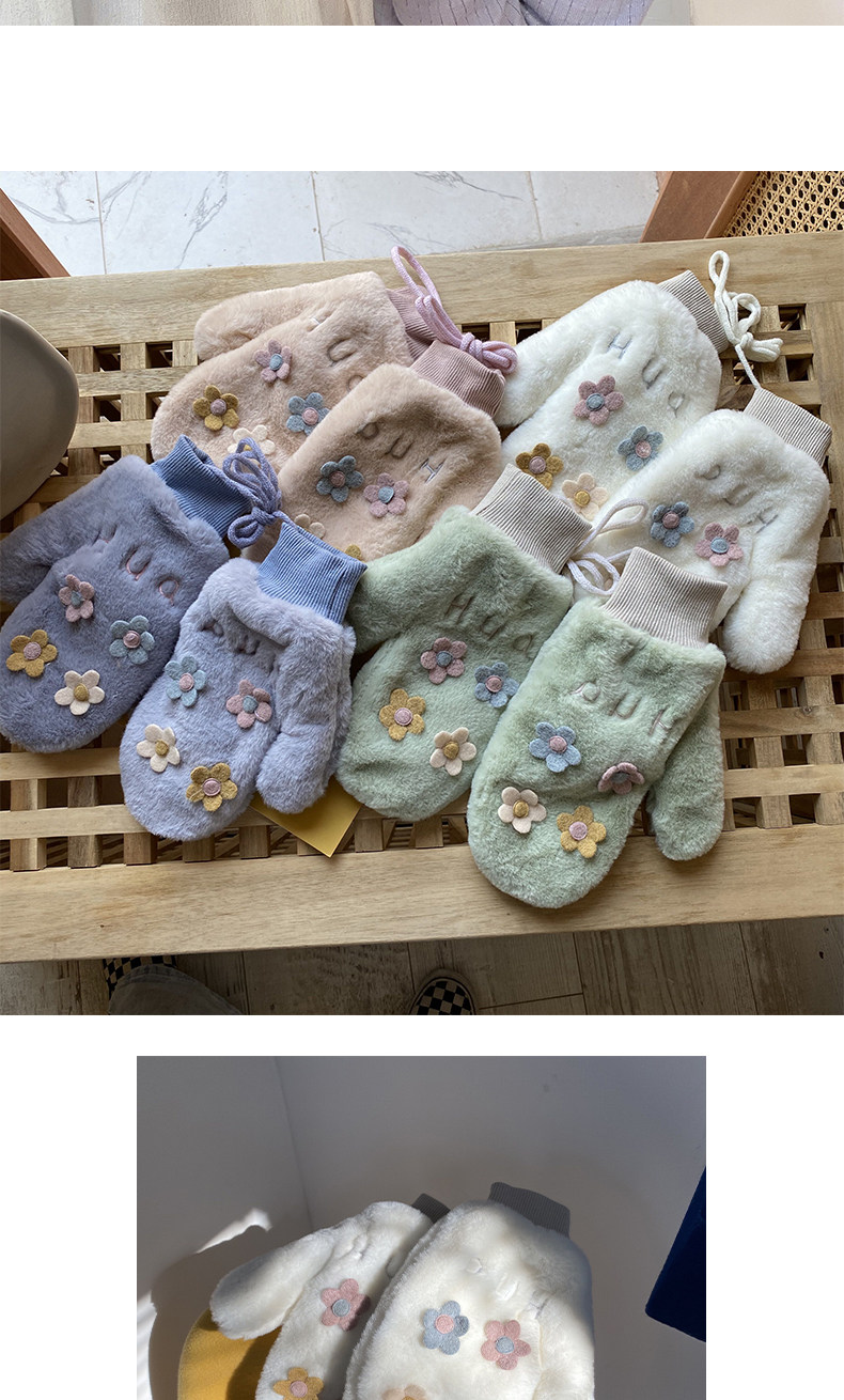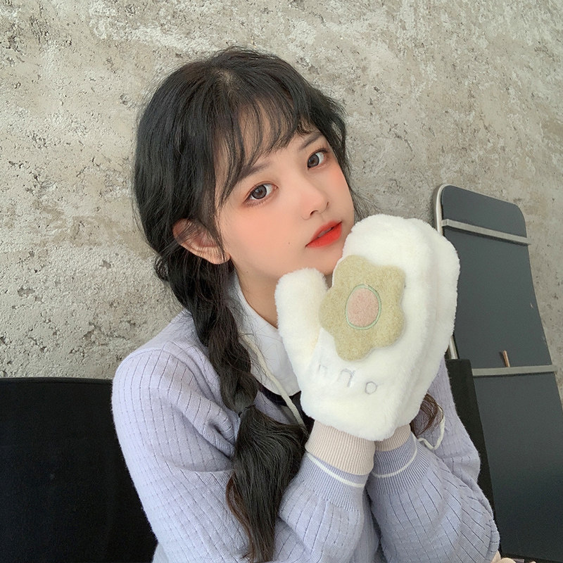 Бархатные перчатки, зимний милый удерживающий тепло дорожный комплект для школьников, в корейском стиле, в цветочек