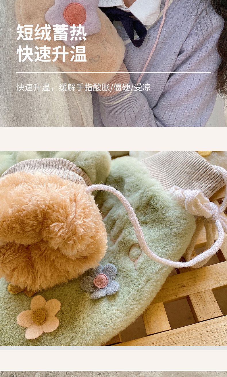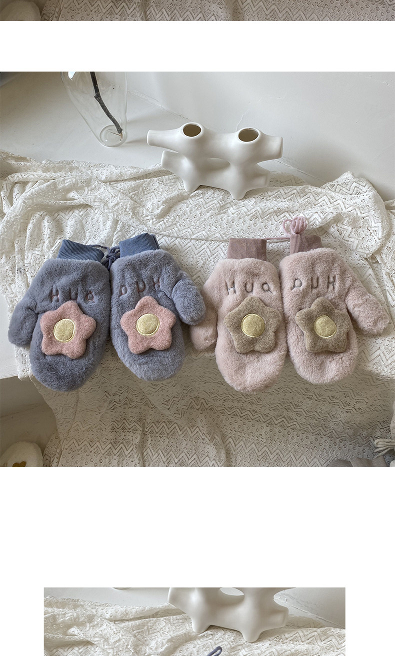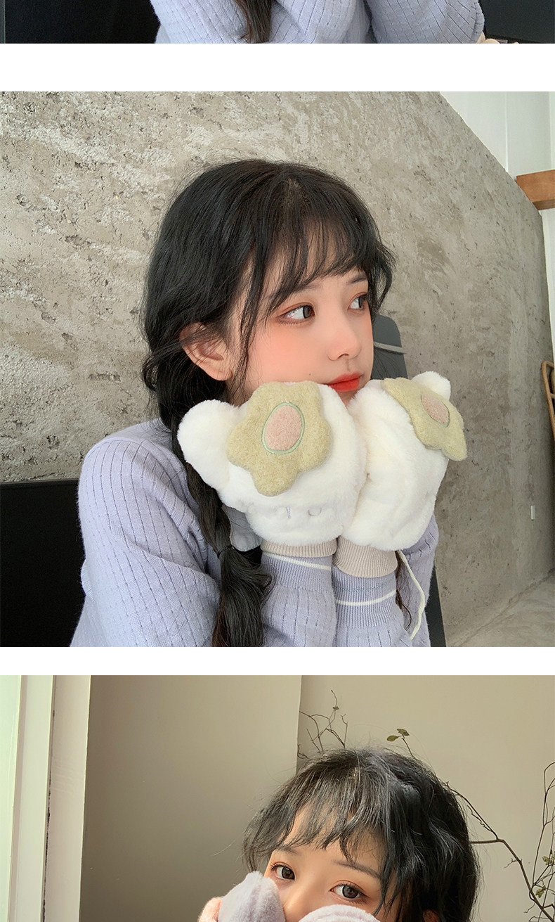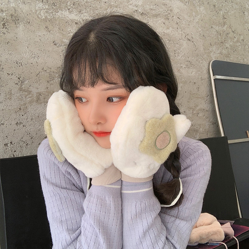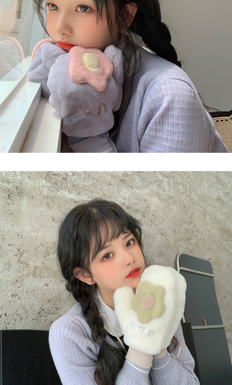 Бархатные перчатки, зимний милый удерживающий тепло дорожный комплект для школьников, в корейском стиле, в цветочек