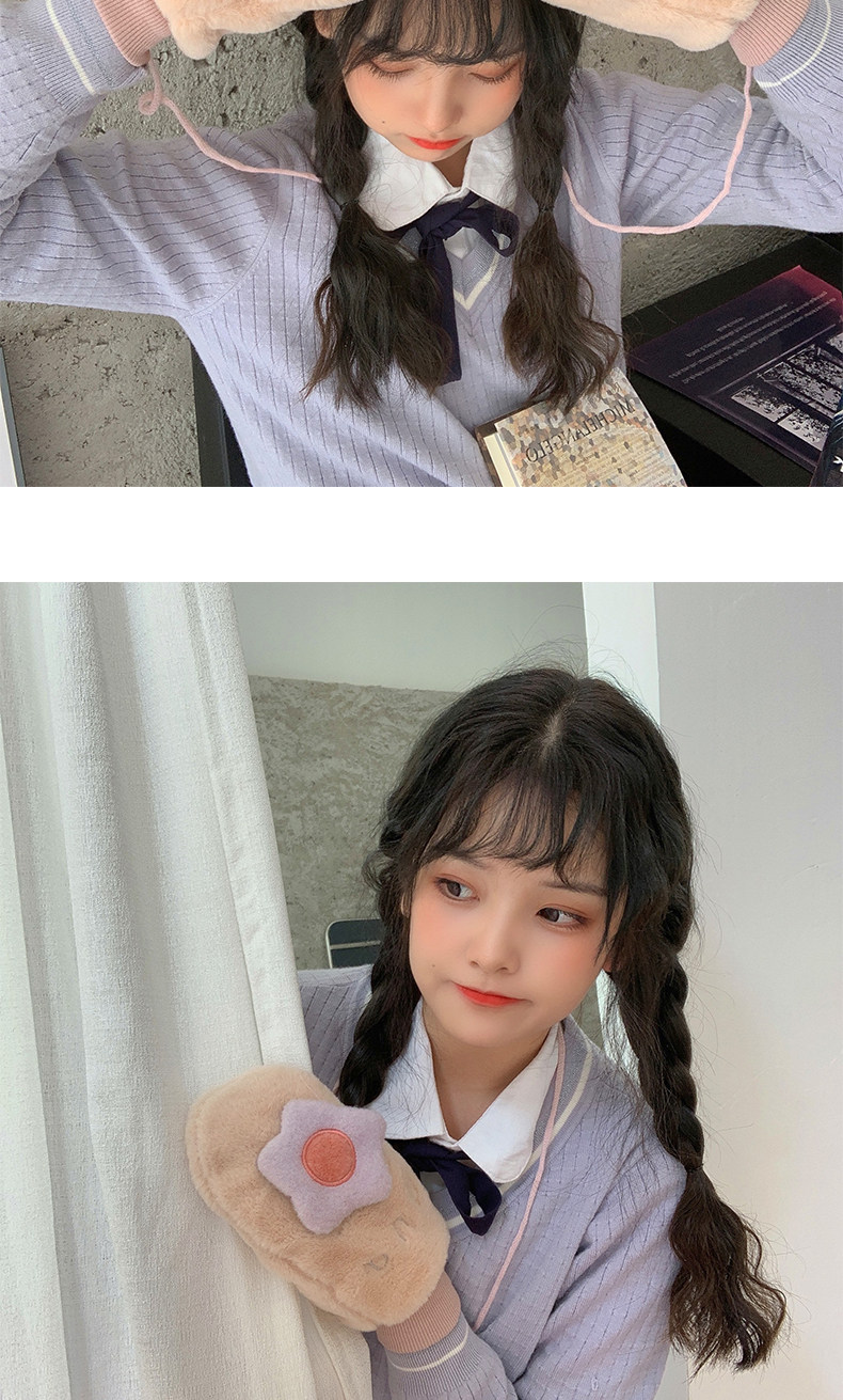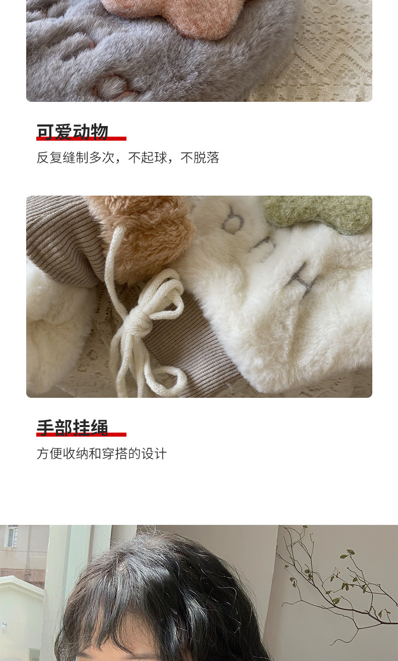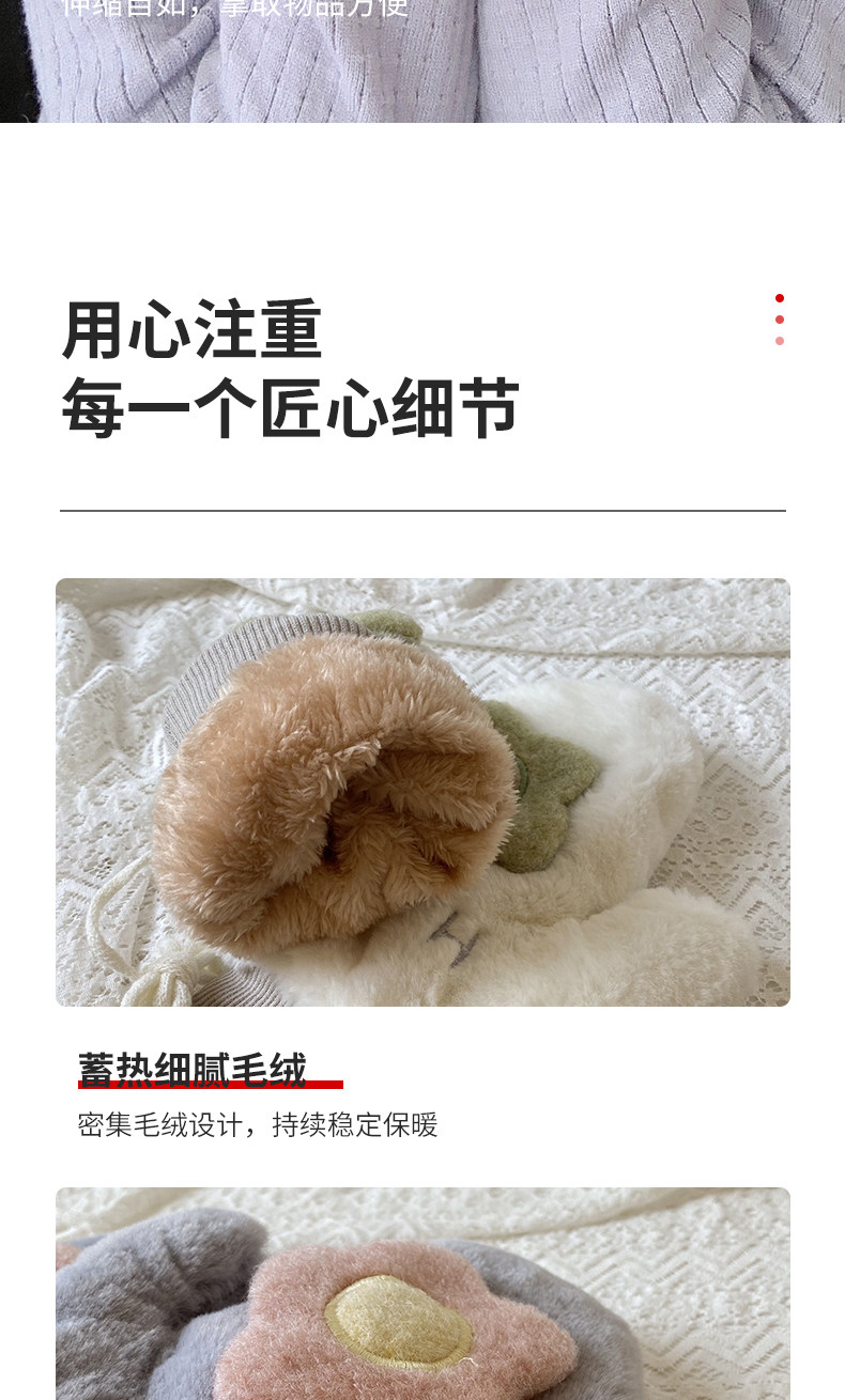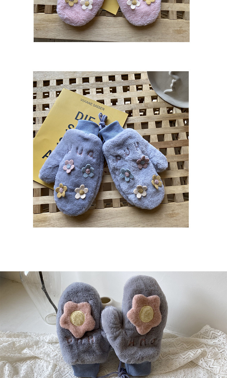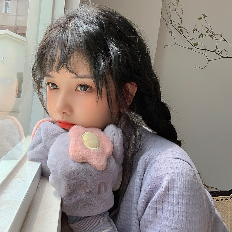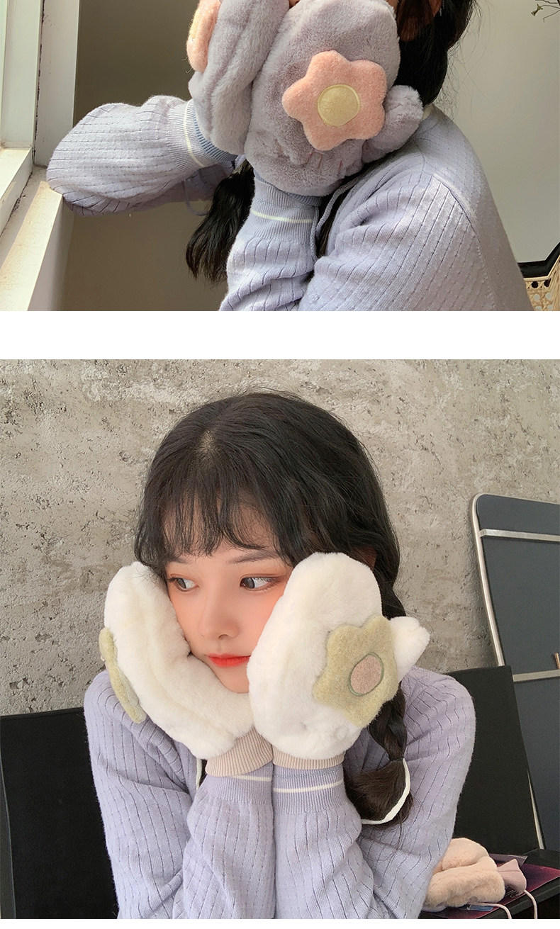 Бархатные перчатки, зимний милый удерживающий тепло дорожный комплект для школьников, в корейском стиле, в цветочек