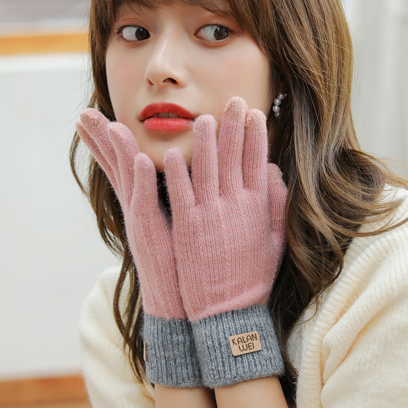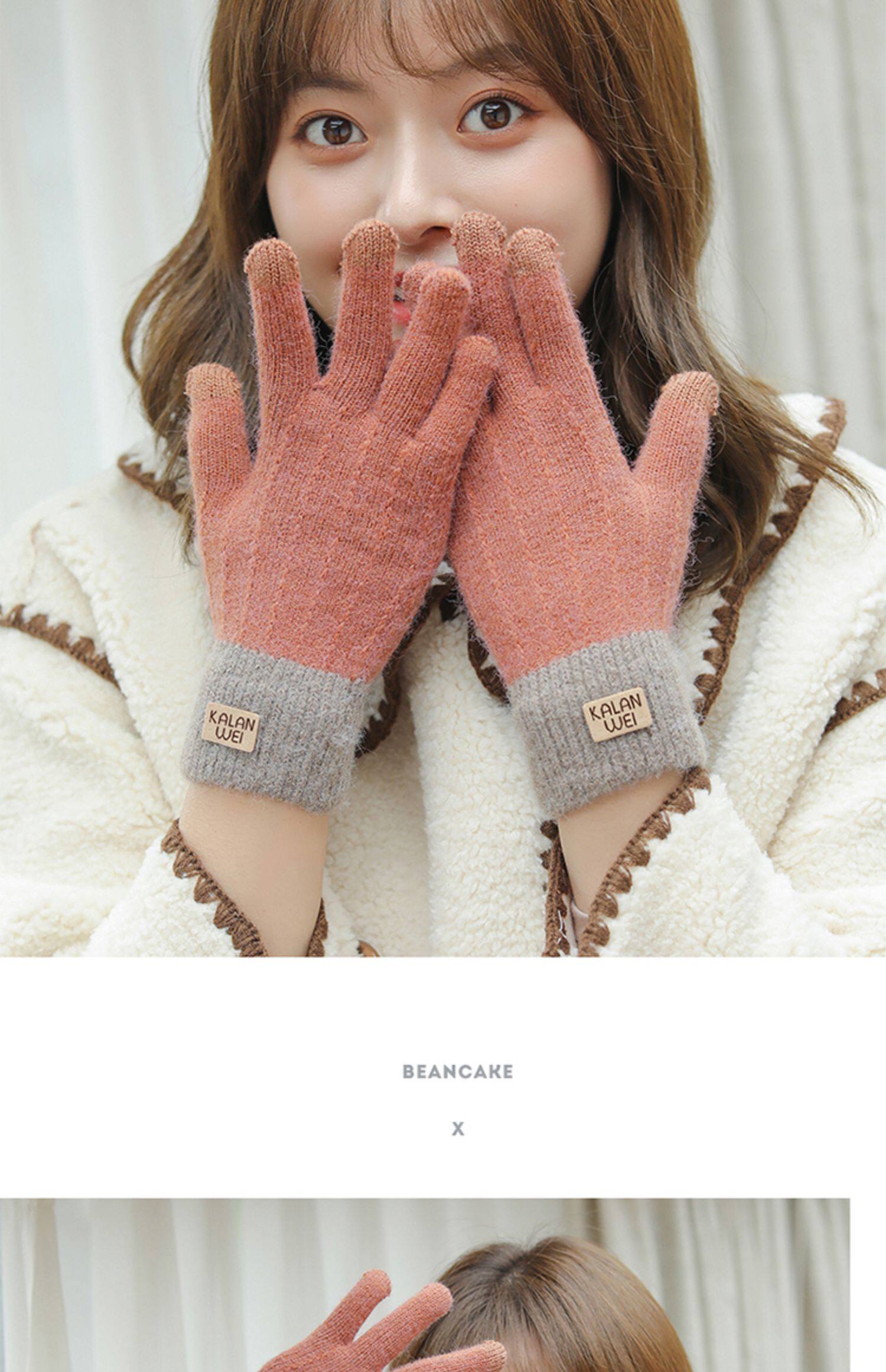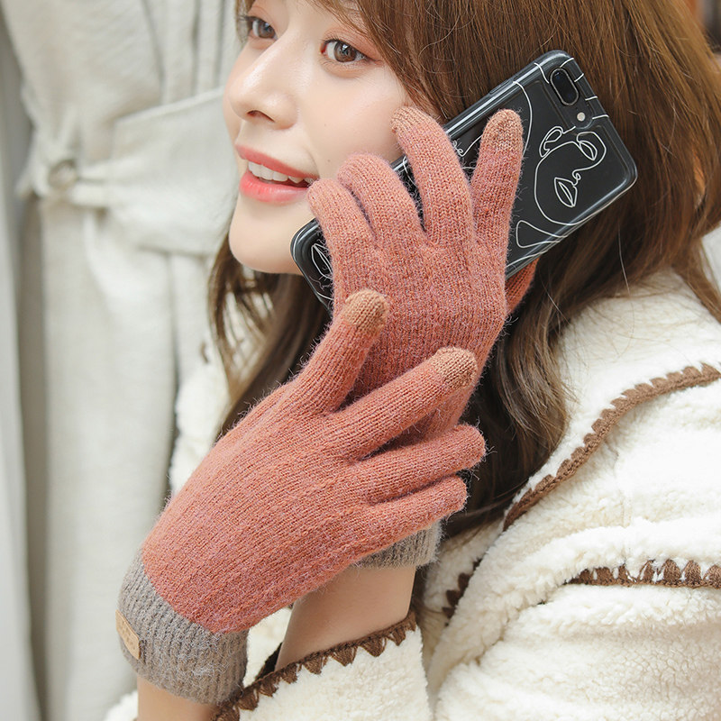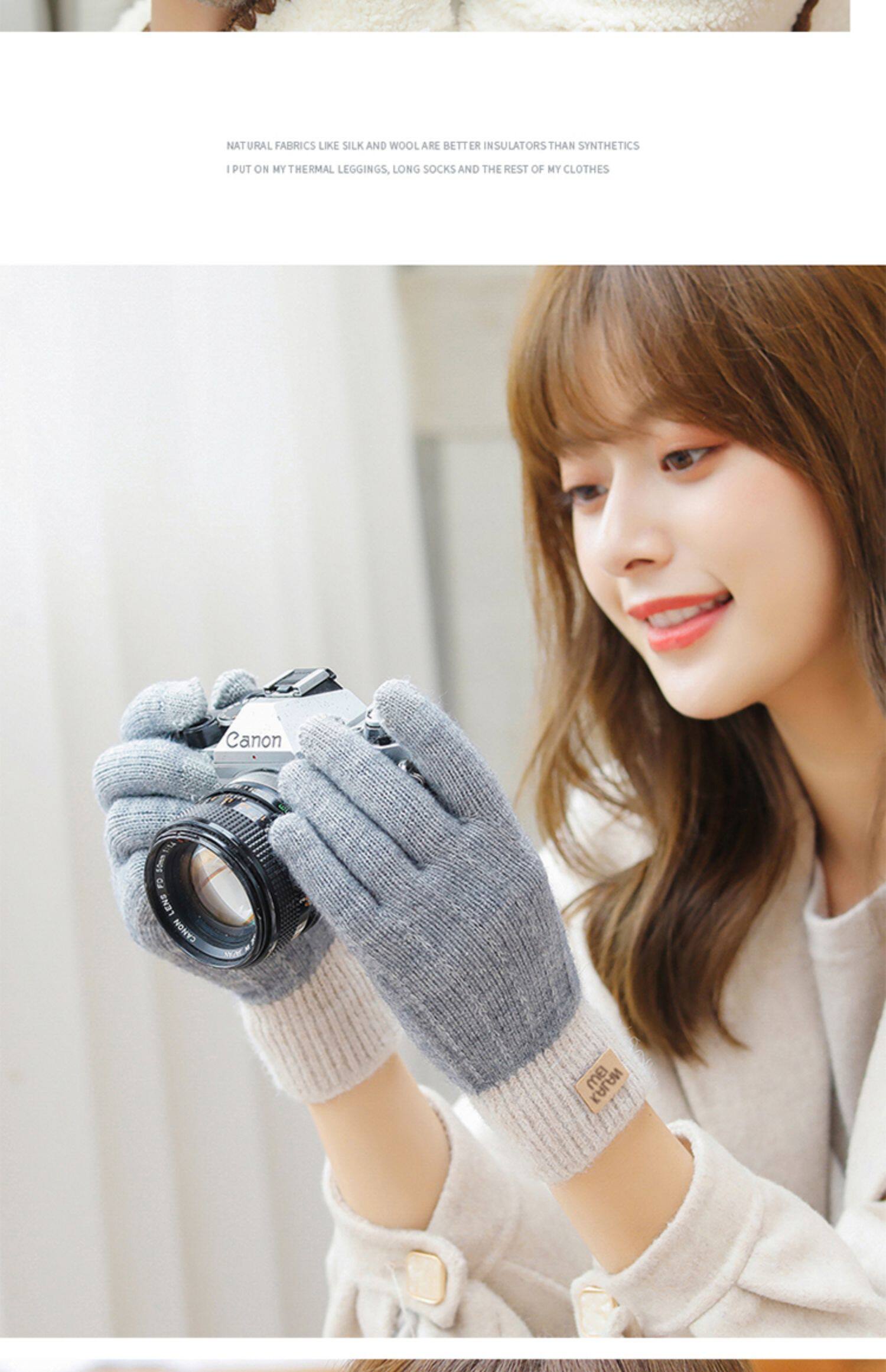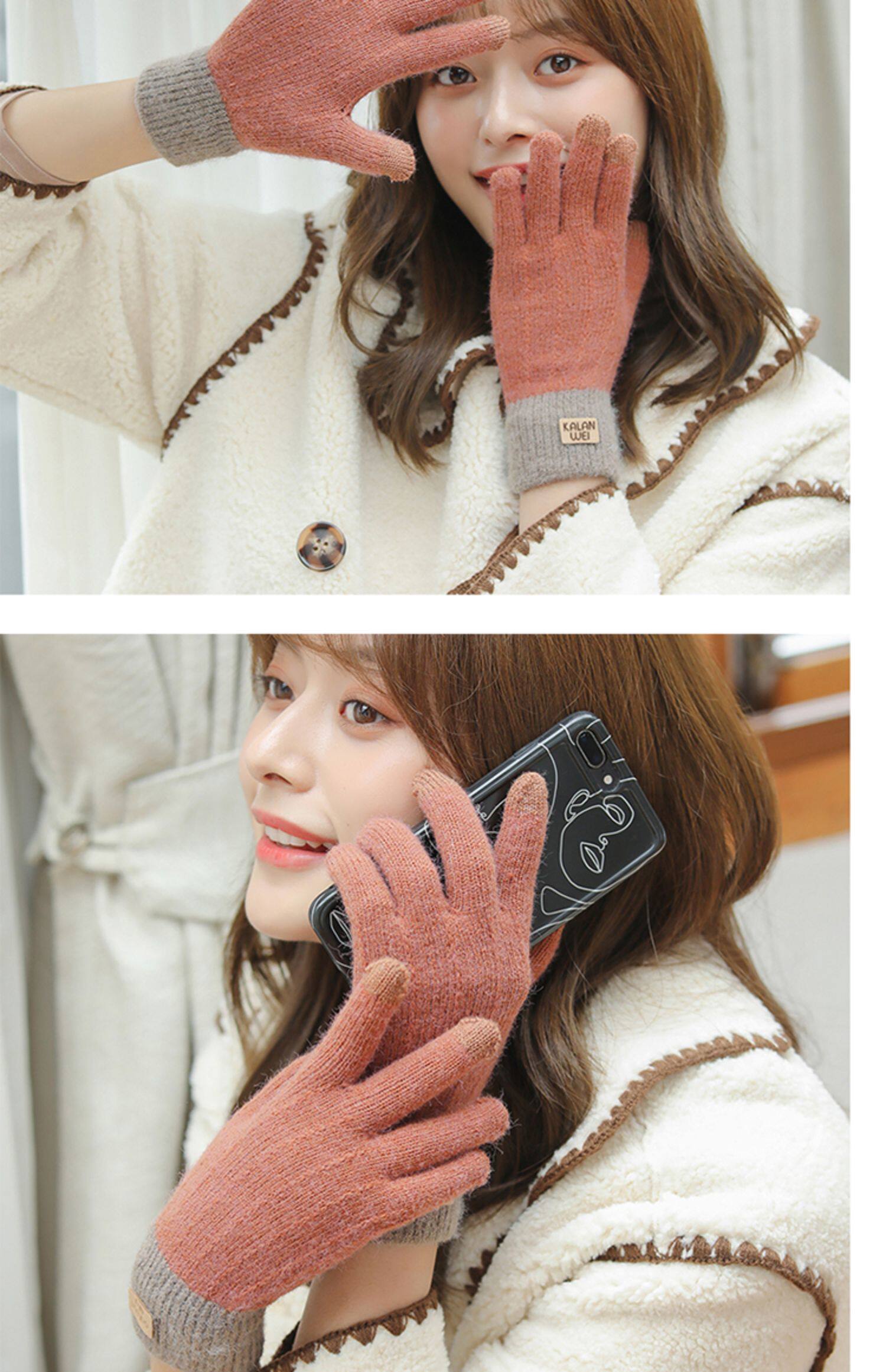 Зимние флисовые удерживающие тепло трикотажные милые демисезонные перчатки, в корейском стиле