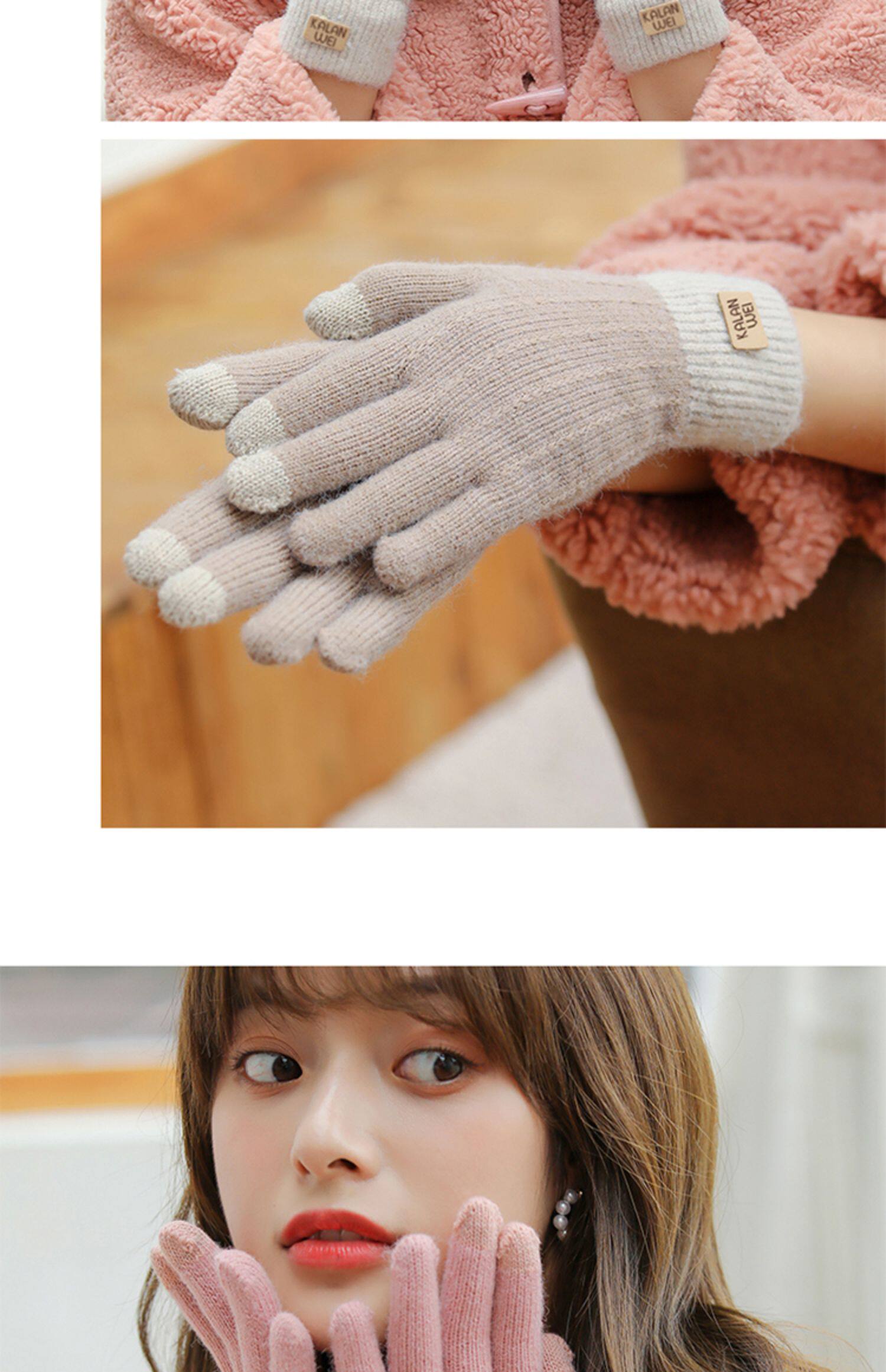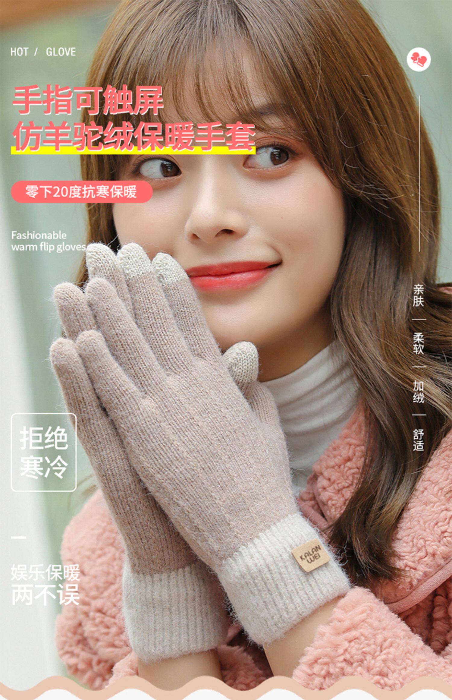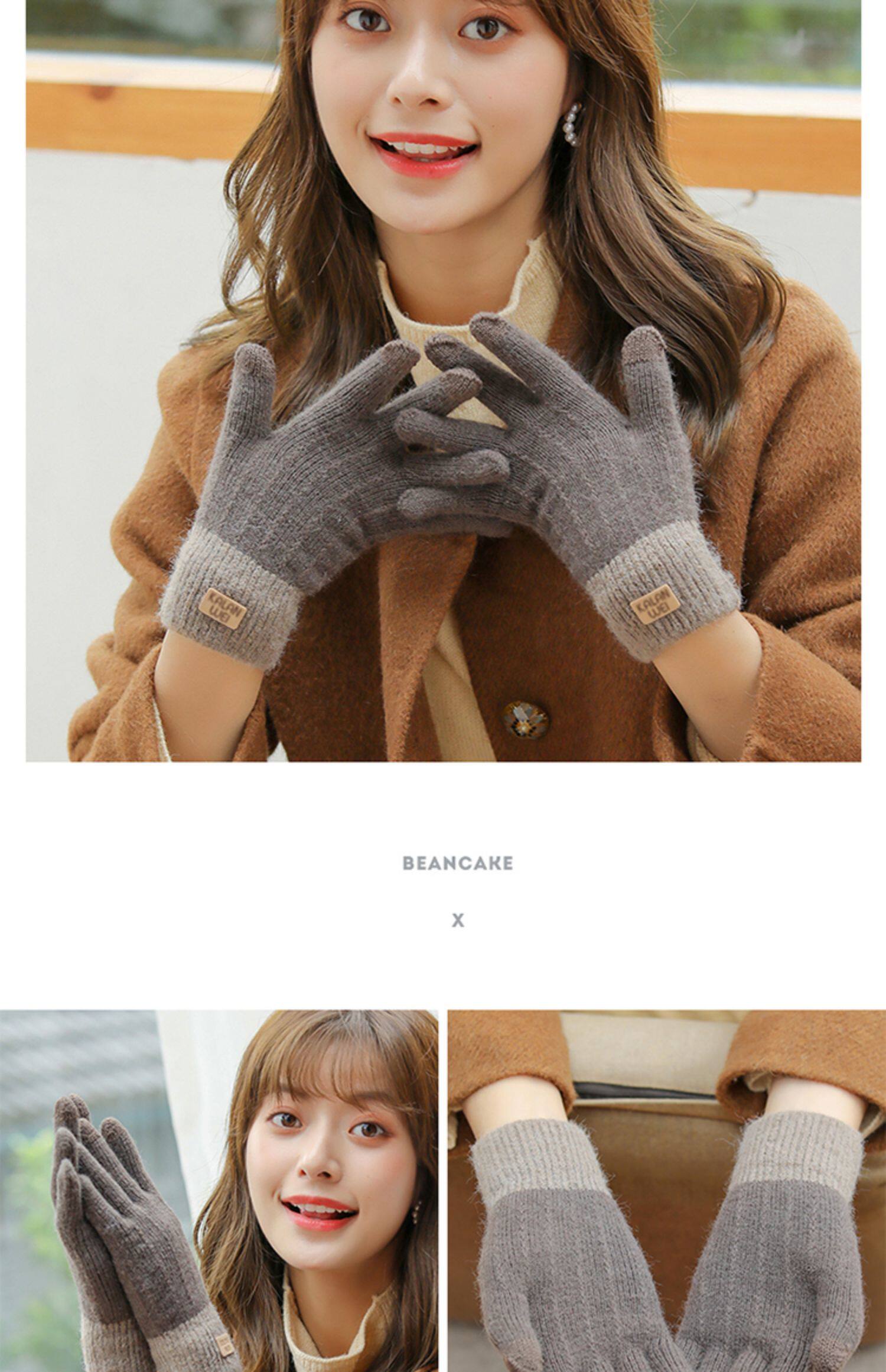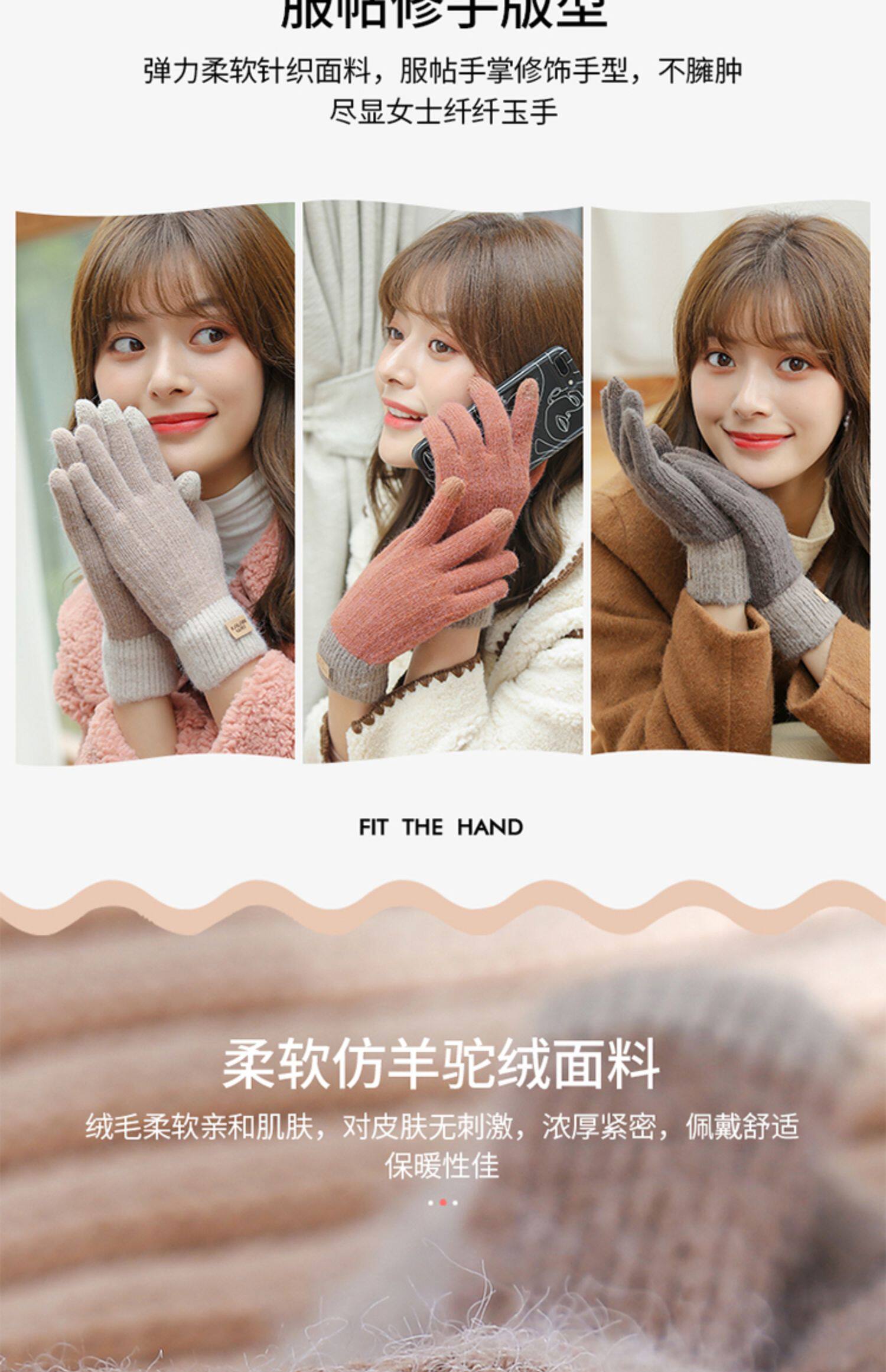 Зимние флисовые удерживающие тепло трикотажные милые демисезонные перчатки, в корейском стиле