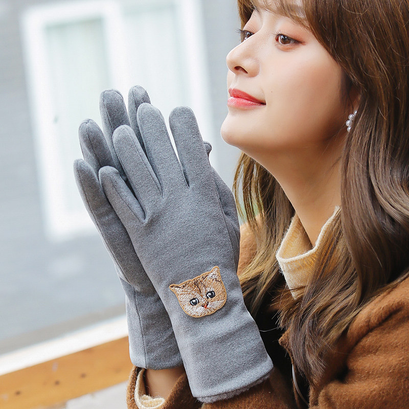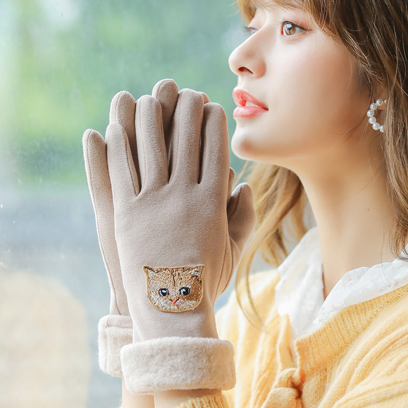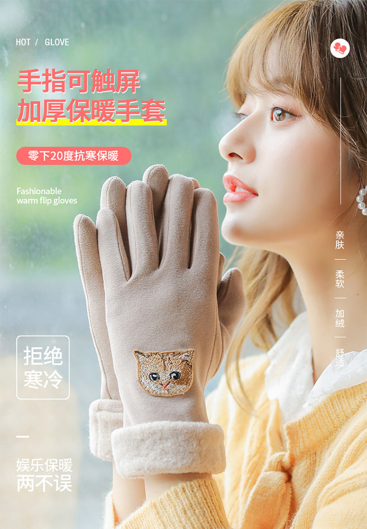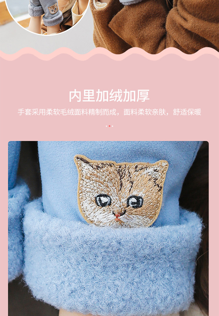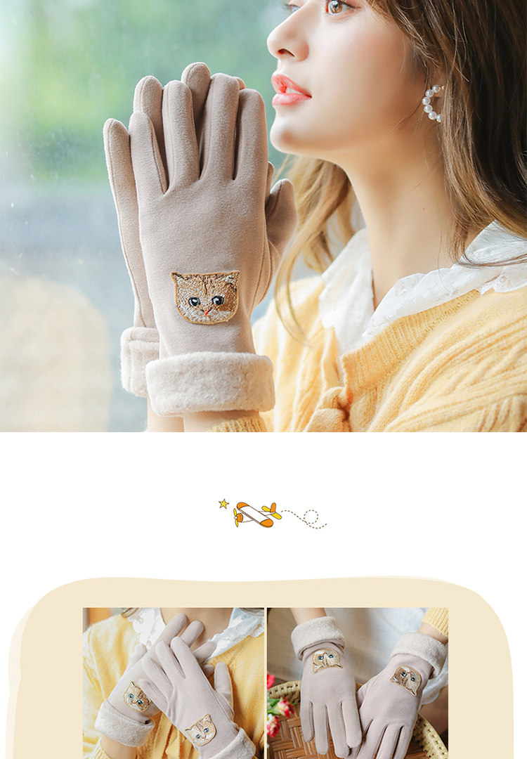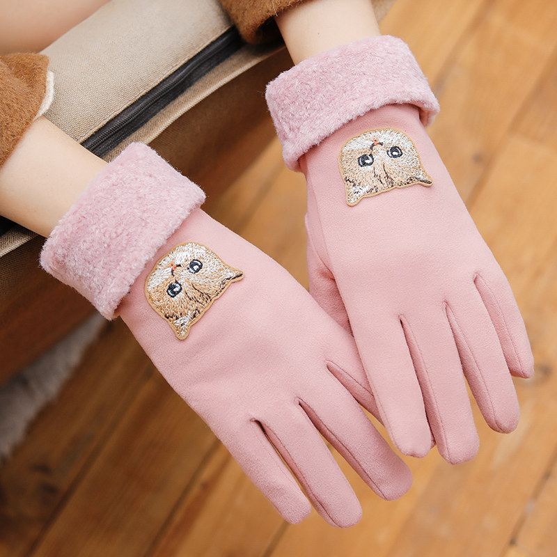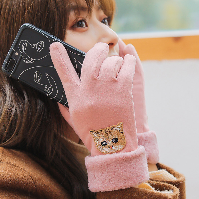 Перчатки, зимний бархатный утепленный удерживающий тепло демисезонный милый комплект