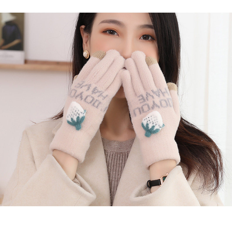 Перчатки, зимний комплект, милая удерживающая тепло утепленная шерстяная клубника для школьников, осенние, в корейском стиле