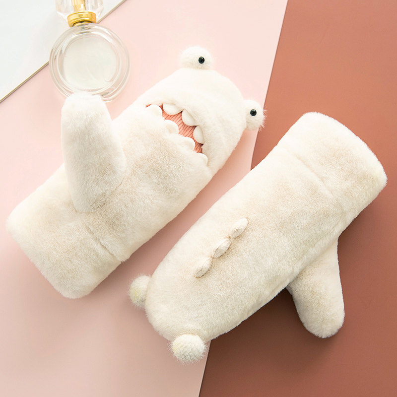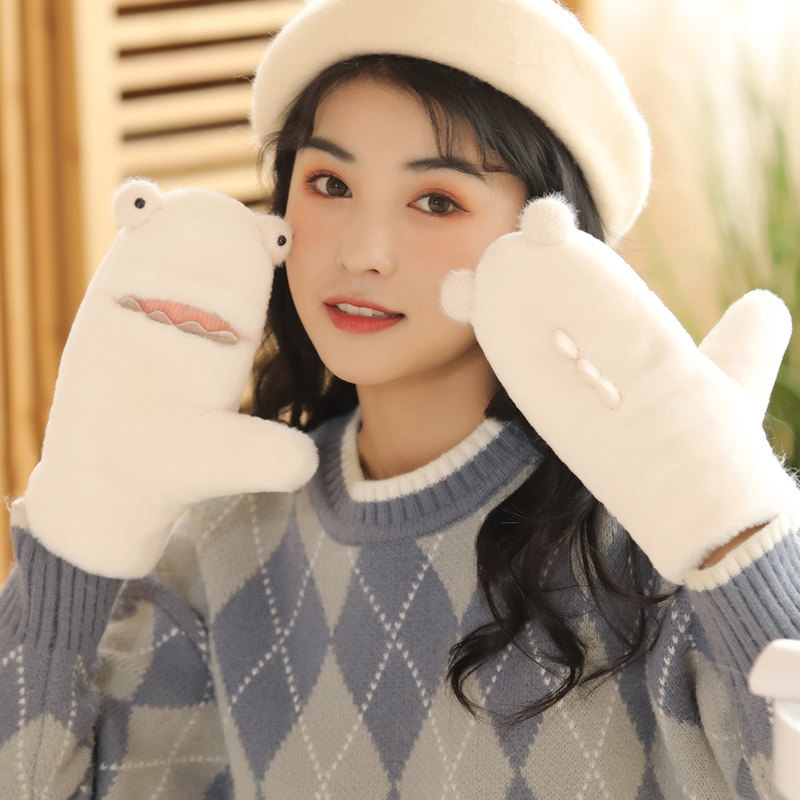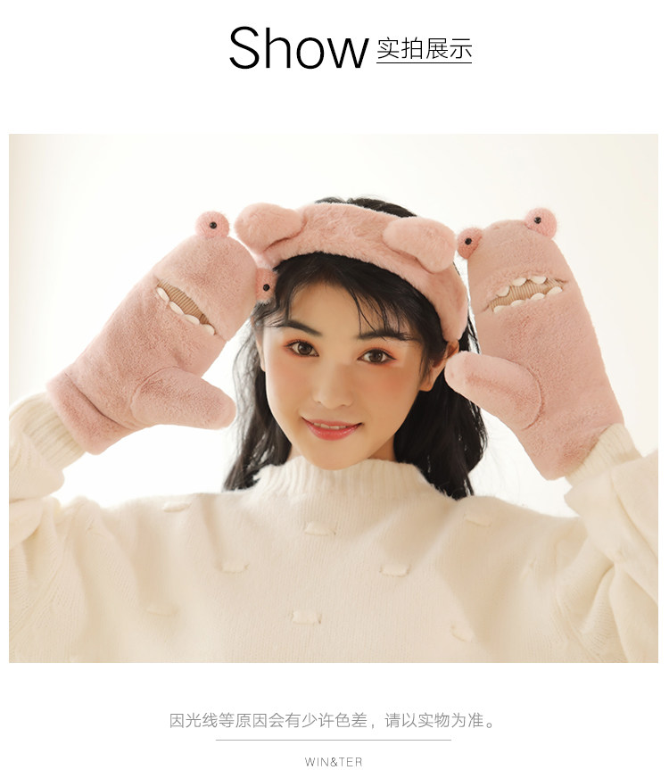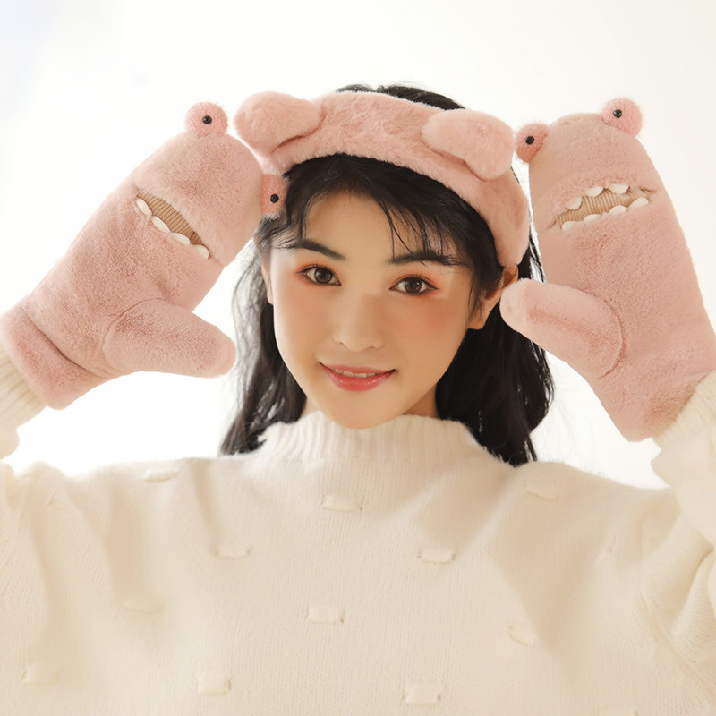 Перчатки, удерживающий тепло мультяшный милый японский утепленный комплект, в корейском стиле, простой и элегантный дизайн