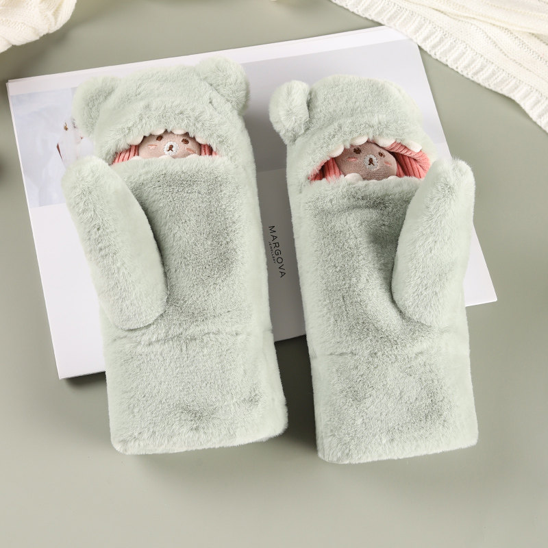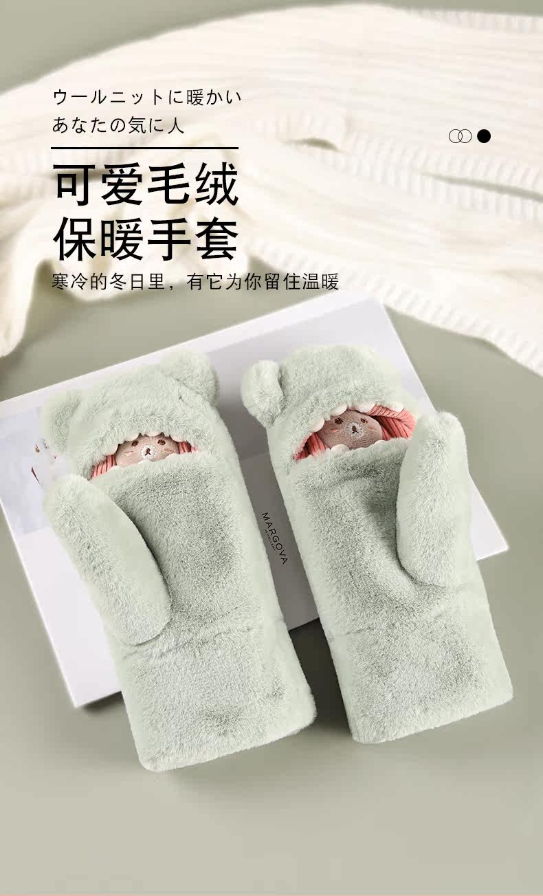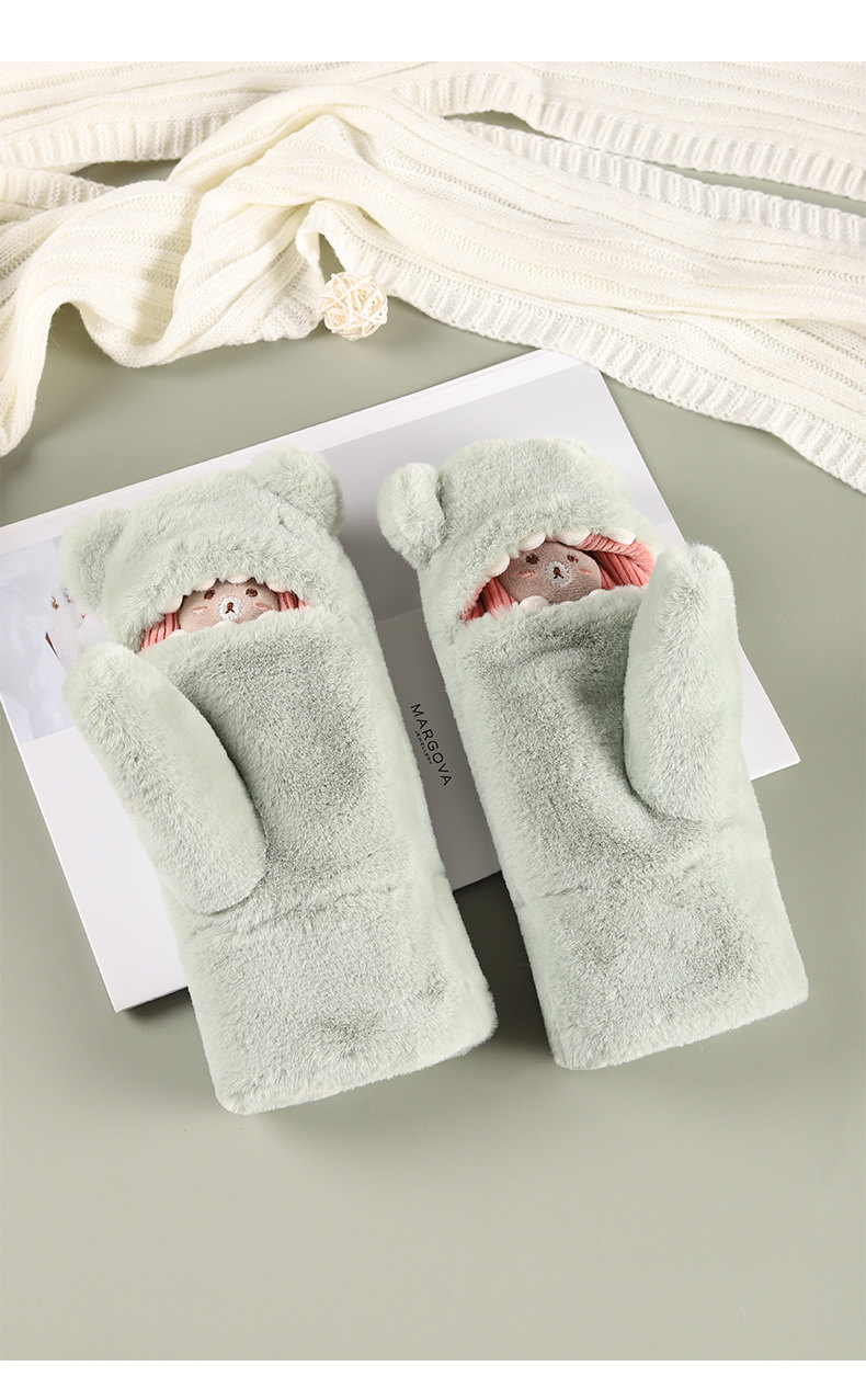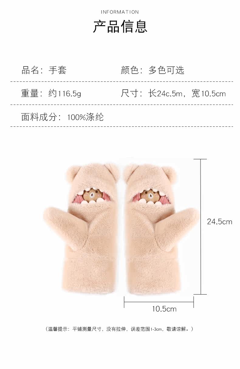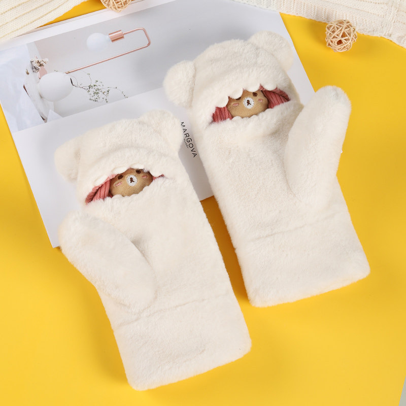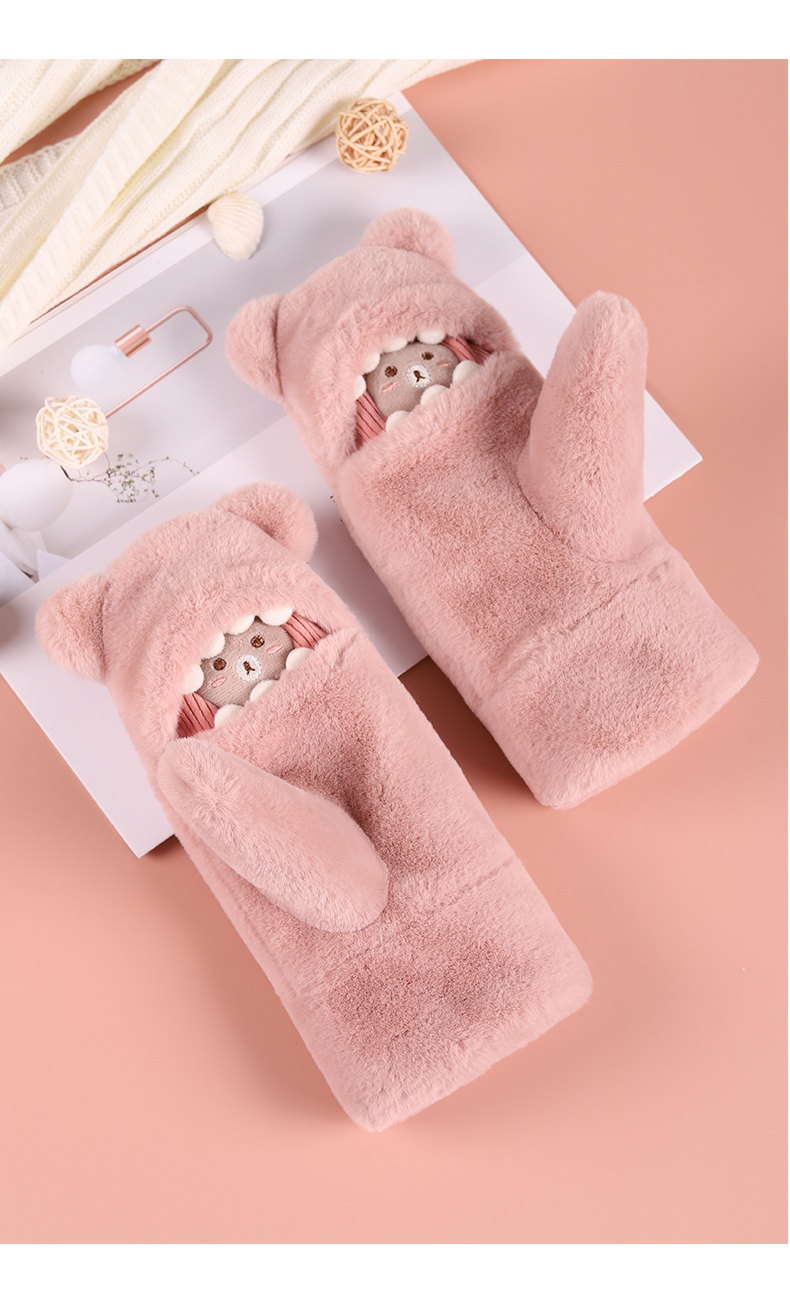 Перчатки, зимний флисовый милый удерживающий тепло комплект, ветрозащитная японская мультяшная сумочка на шею, увеличенная толщина, в корейском стиле