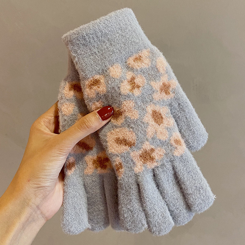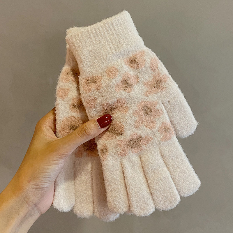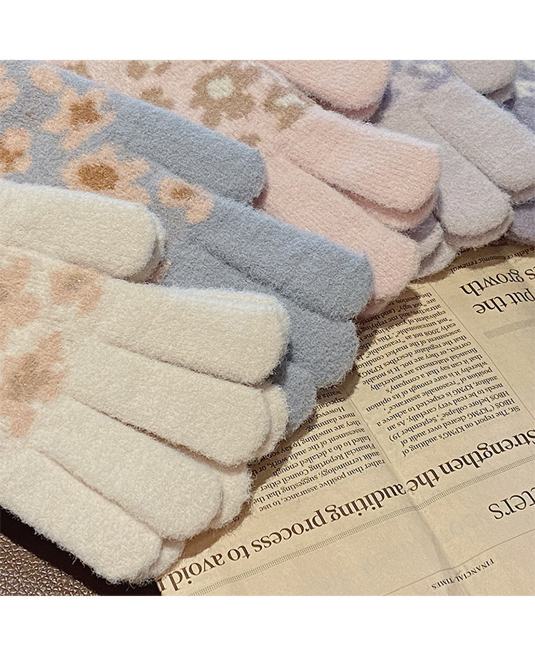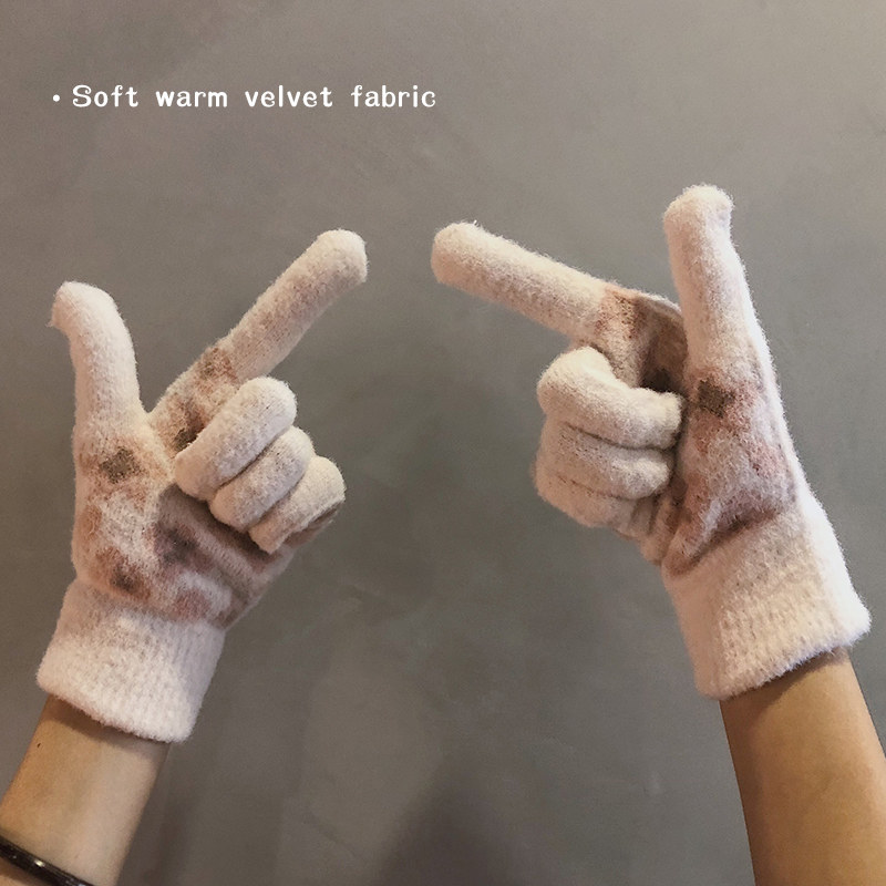 Японские демисезонные удерживающие тепло утепленные милые трикотажные сиреневые перчатки, в корейском стиле