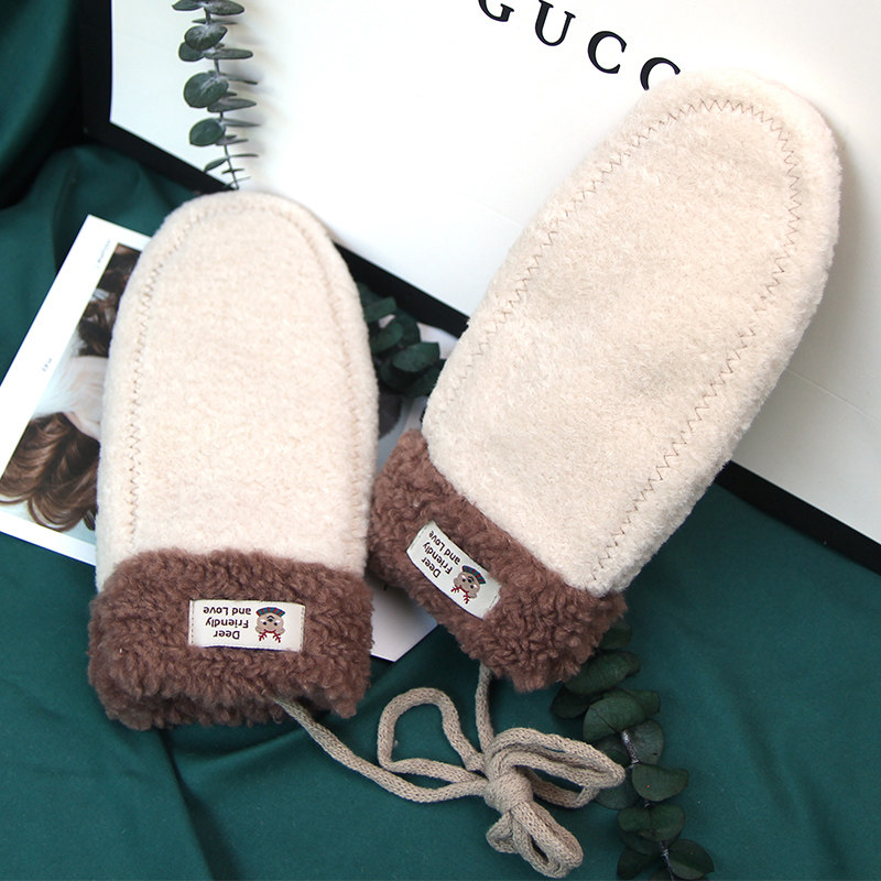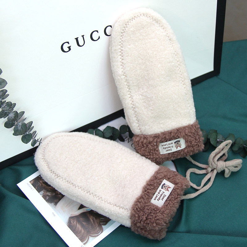 Перчатки, зимний милый удерживающий тепло мультяшный утепленный брендовый комплект для школьников, в корейском стиле