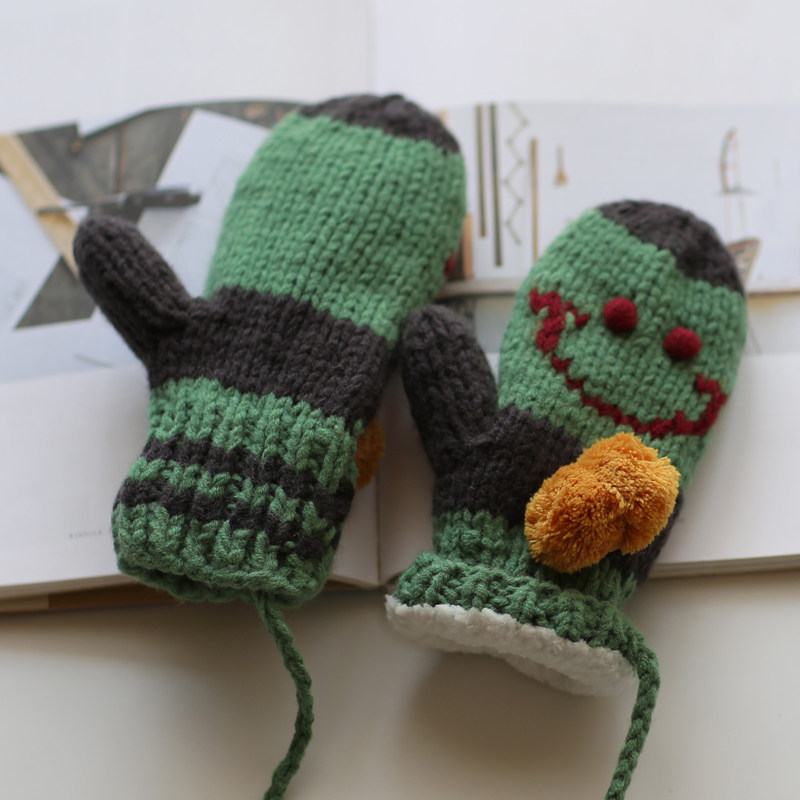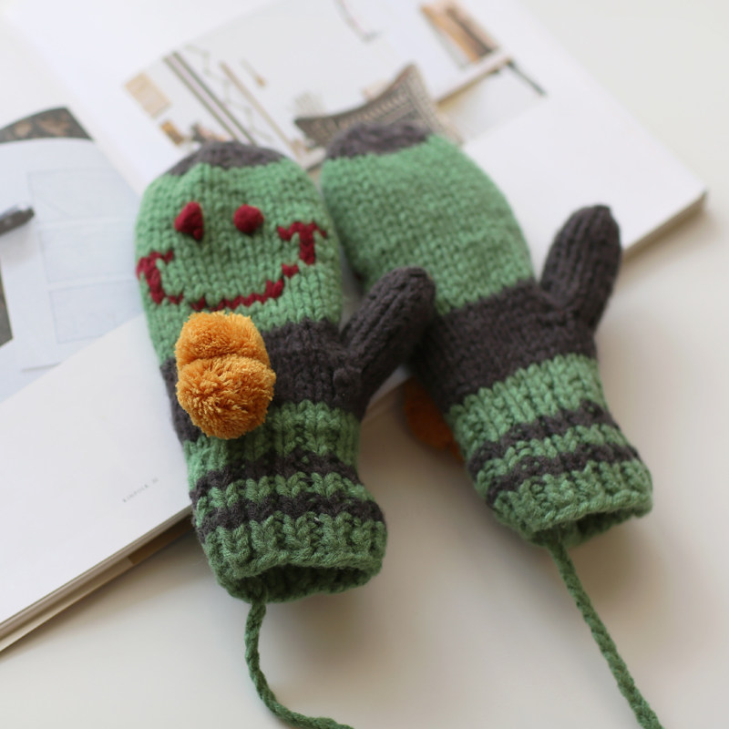 Мультяшные брендовые флисовые удерживающие тепло трикотажные зимние перчатки, в корейском стиле