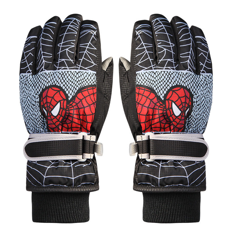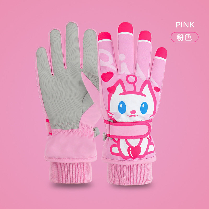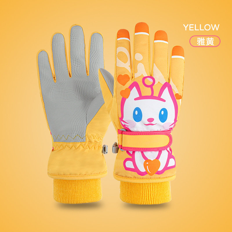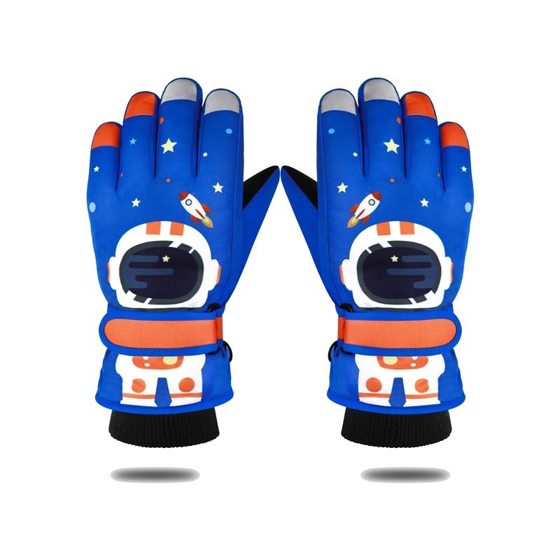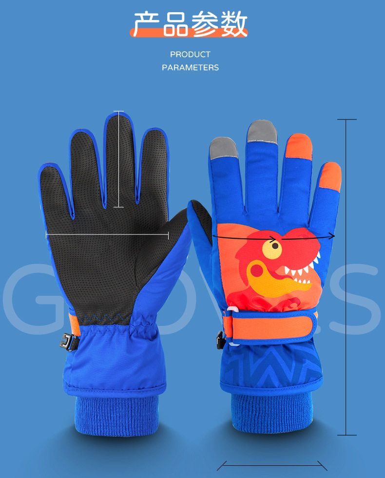 Детские удерживающие тепло зимние перчатки для мальчиков, мультяшный утепленный детский водонепроницаемый лыжный динозавр