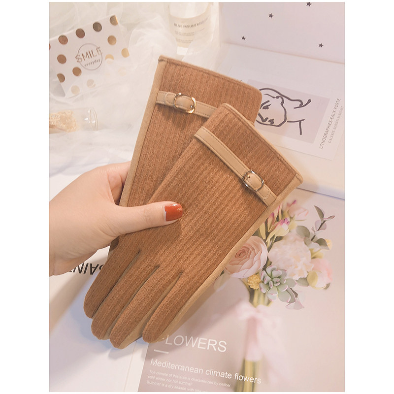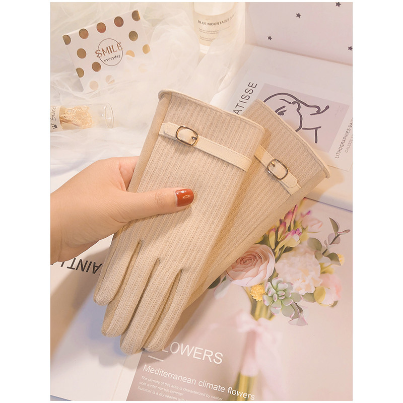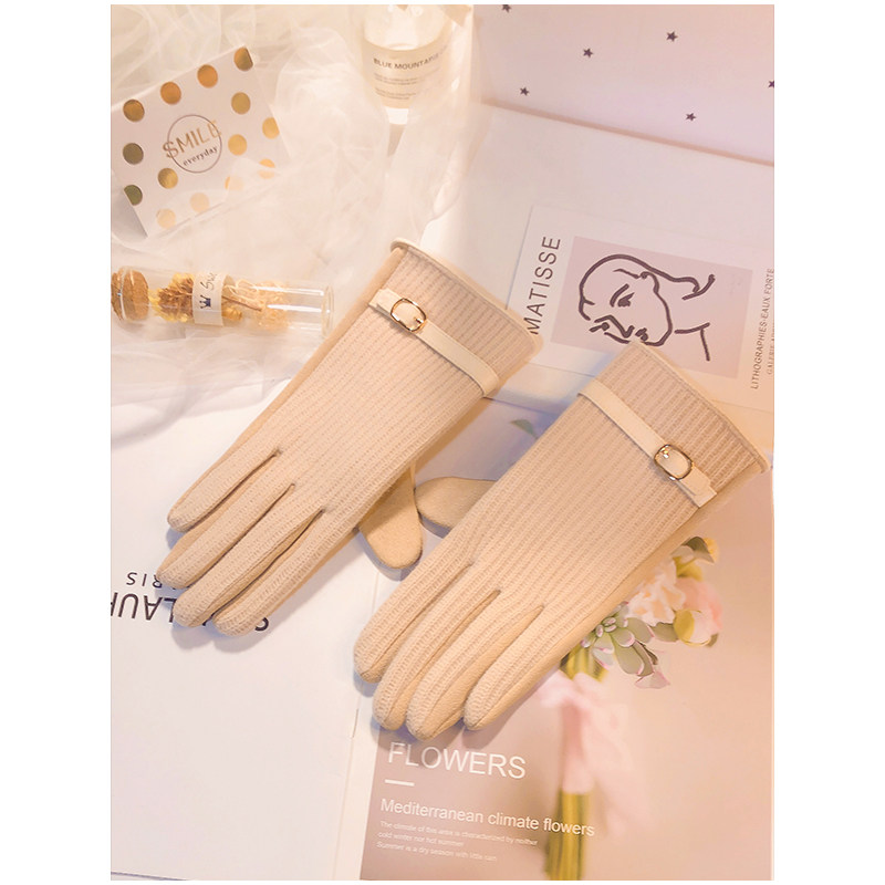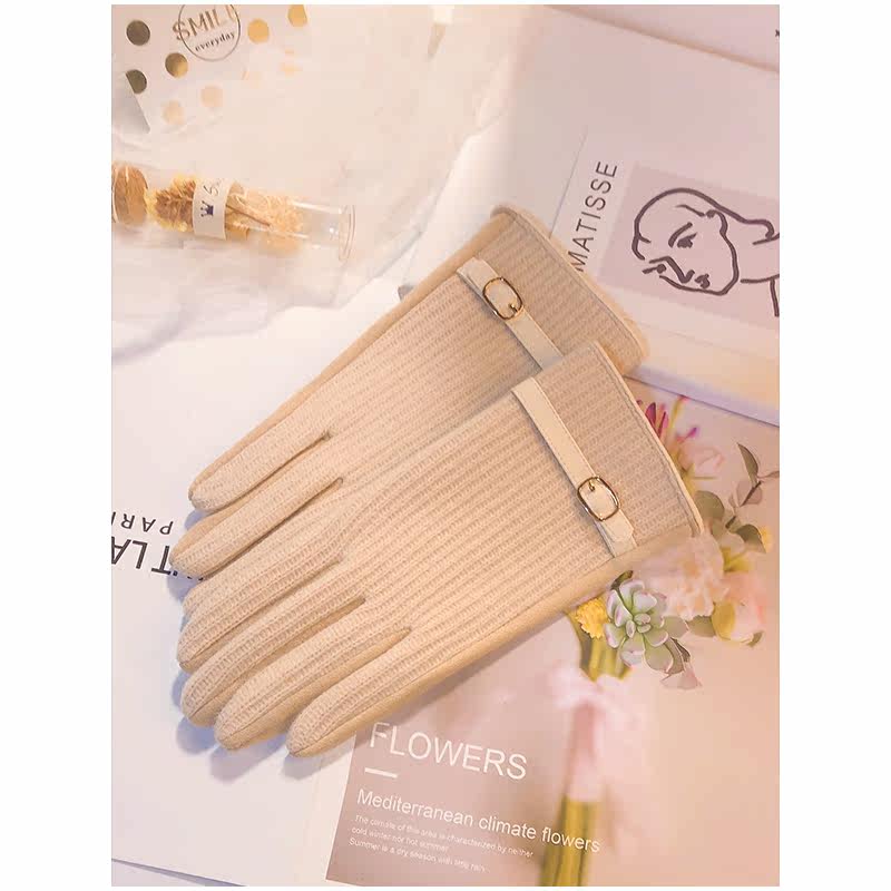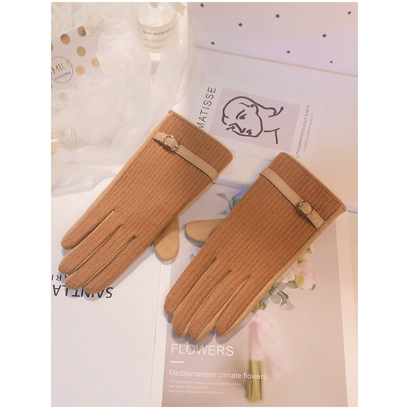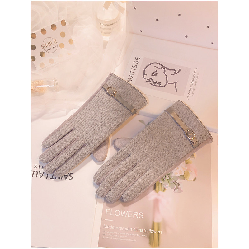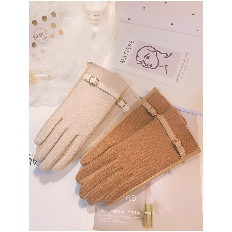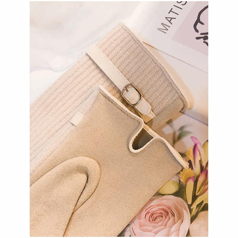 Перчатки, зимний удерживающий тепло утепленный демисезонный тонкий брендовый шерстяной комплект, в корейском стиле