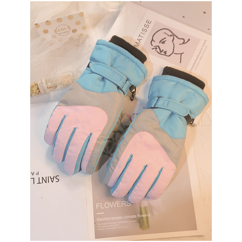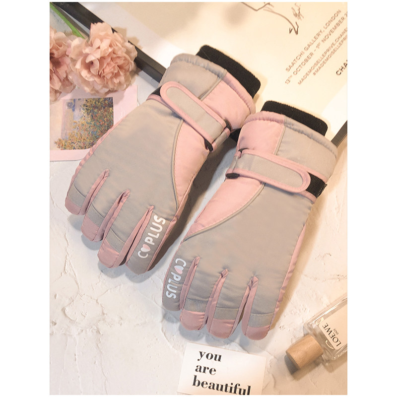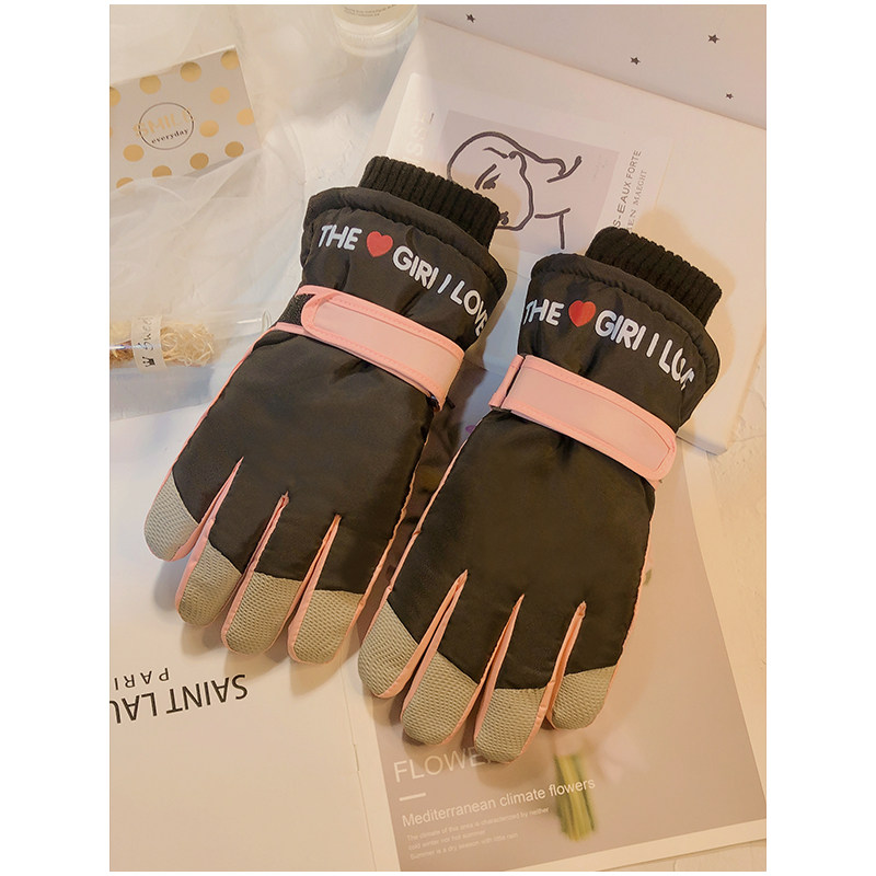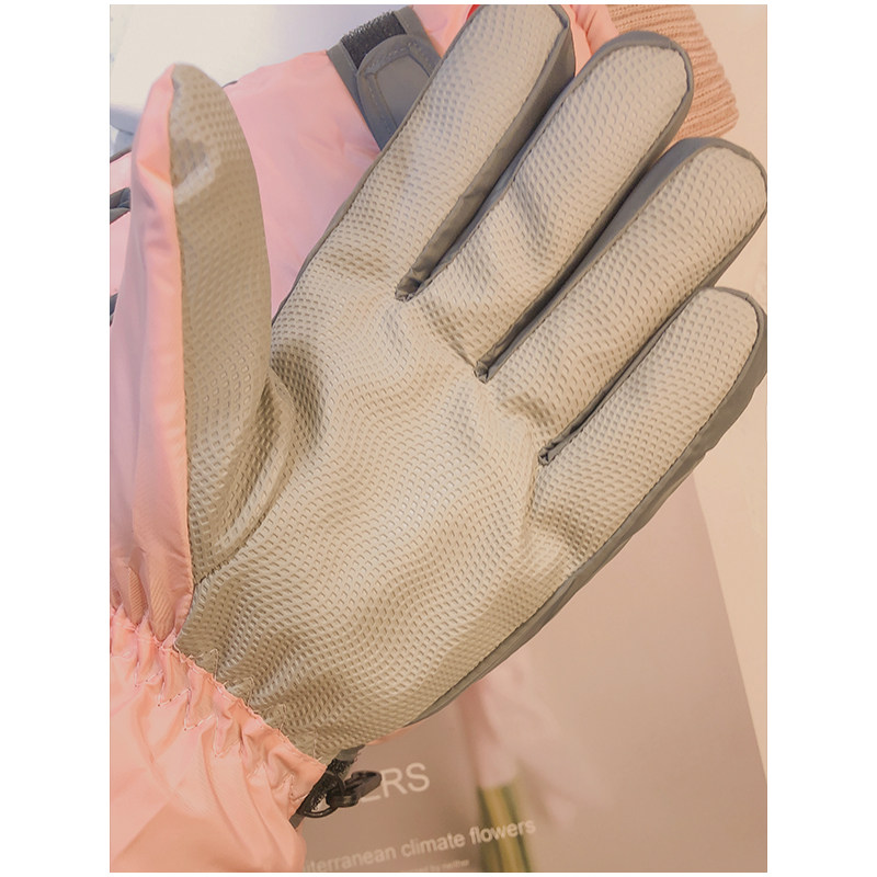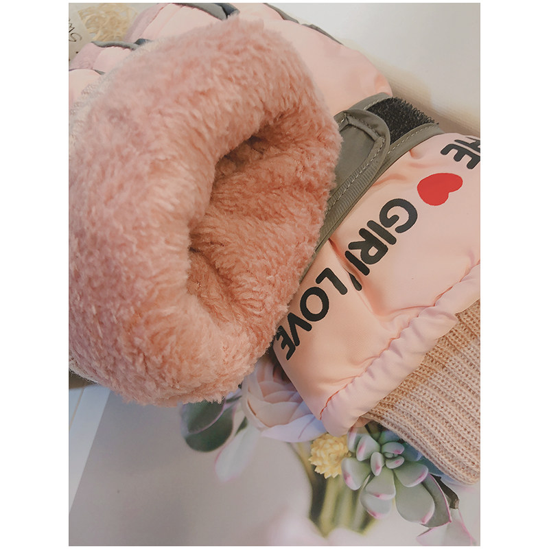 Лыжные перчатки, милый демисезонный бархатный зимний удерживающий тепло комплект, в корейском стиле, увеличенная толщина