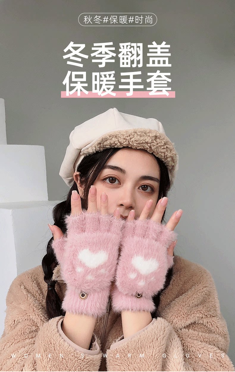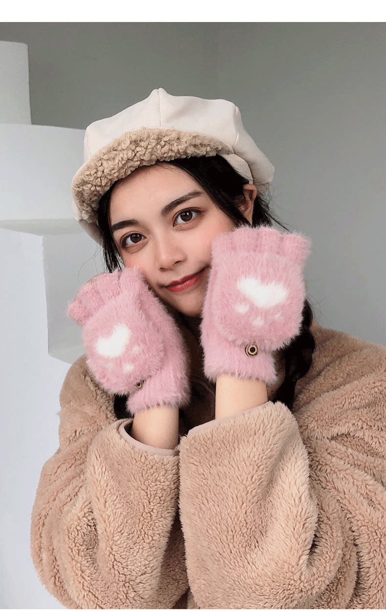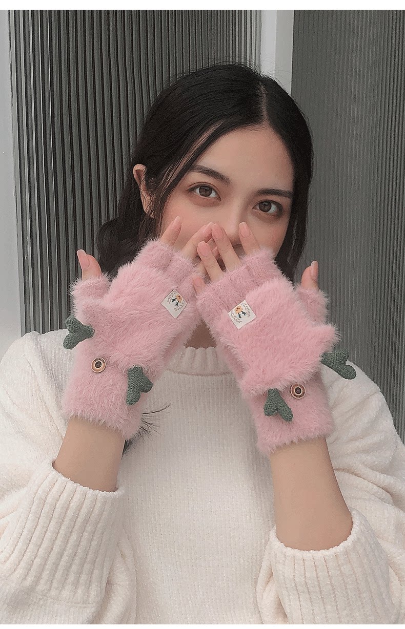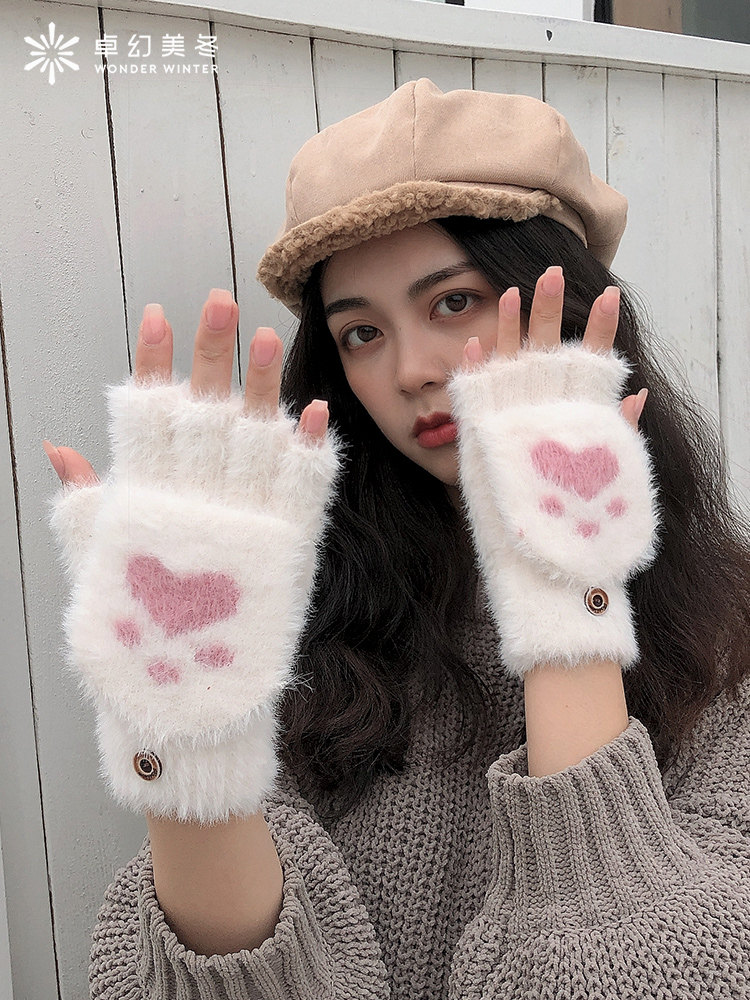 Зимние перчатки, универсальный милый удерживающий тепло трикотажный комплект для школьников, в корейском стиле