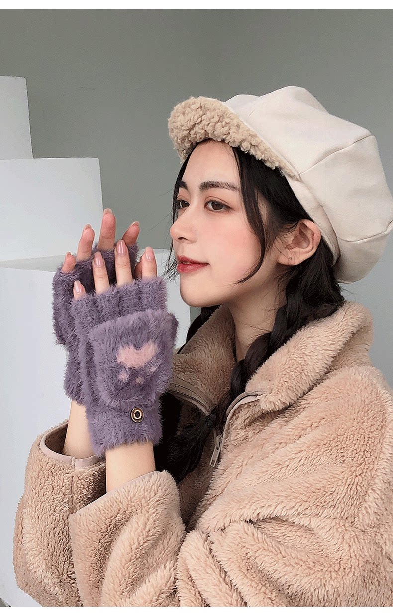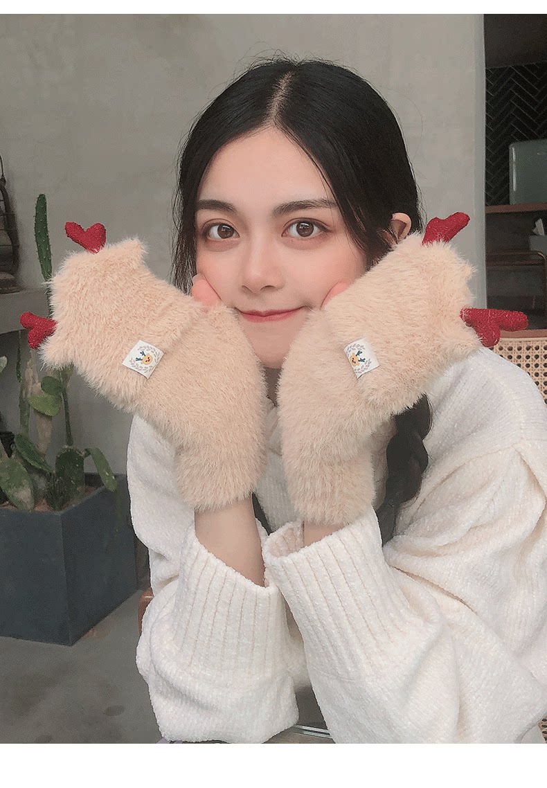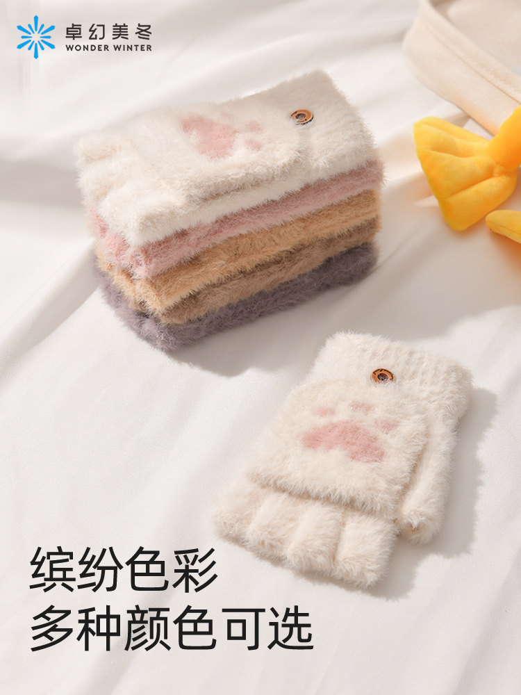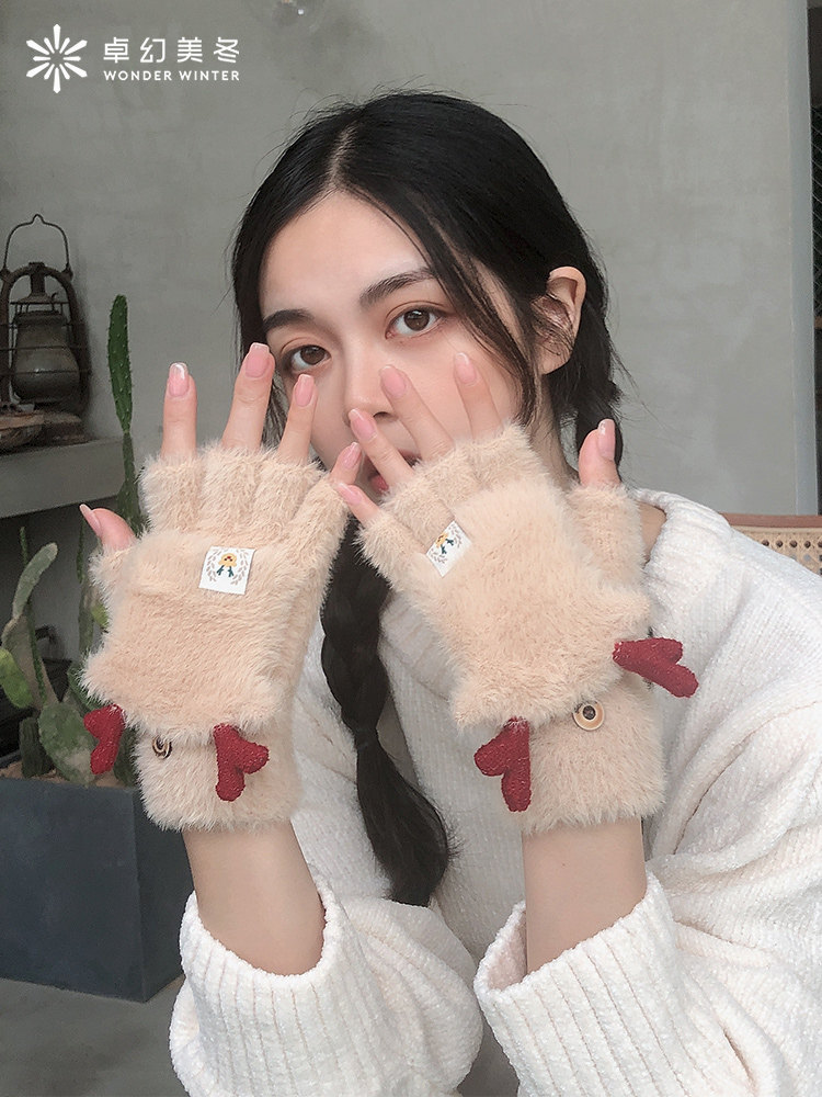 Зимние перчатки, универсальный милый удерживающий тепло трикотажный комплект для школьников, в корейском стиле