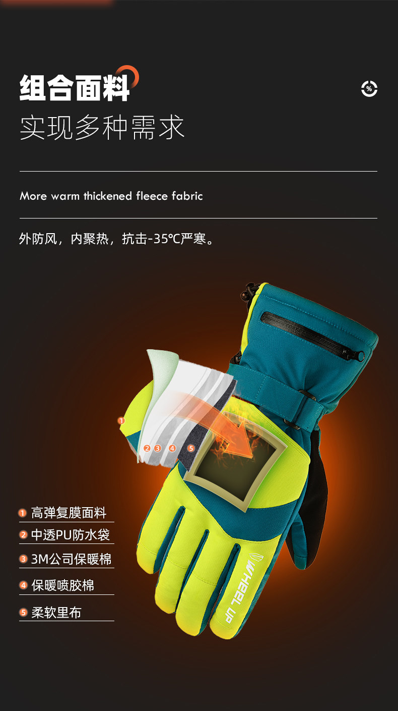 Лыжные мужские демисезонные удерживающие тепло водонепроницаемые зимние ветрозащитные утепленные перчатки