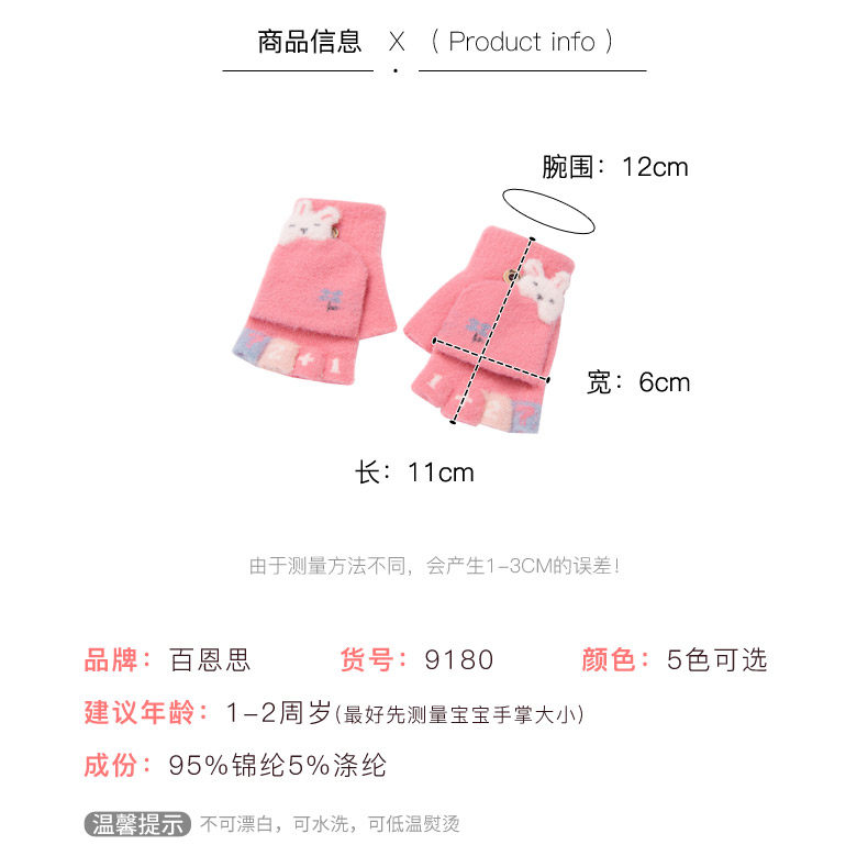 Детские демисезонные удерживающие тепло мультяшные перчатки подходит для мужчин и женщин для девочек для раннего возраста, без пальцев, 1 лет, 2 лет