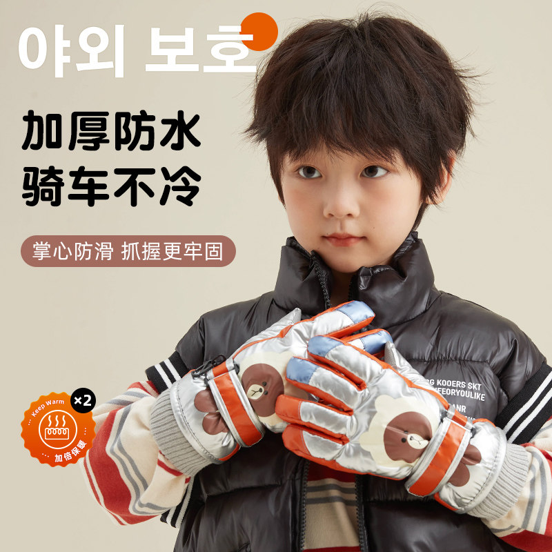 Детские зимние удерживающие тепло водонепроницаемые утепленные лыжные перчатки для мальчиков, 3-12 лет