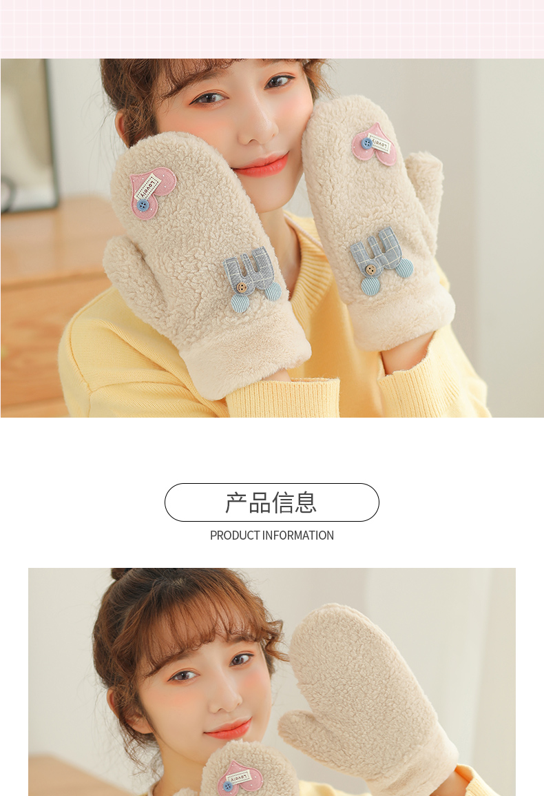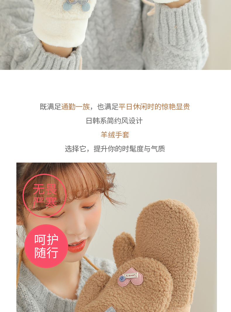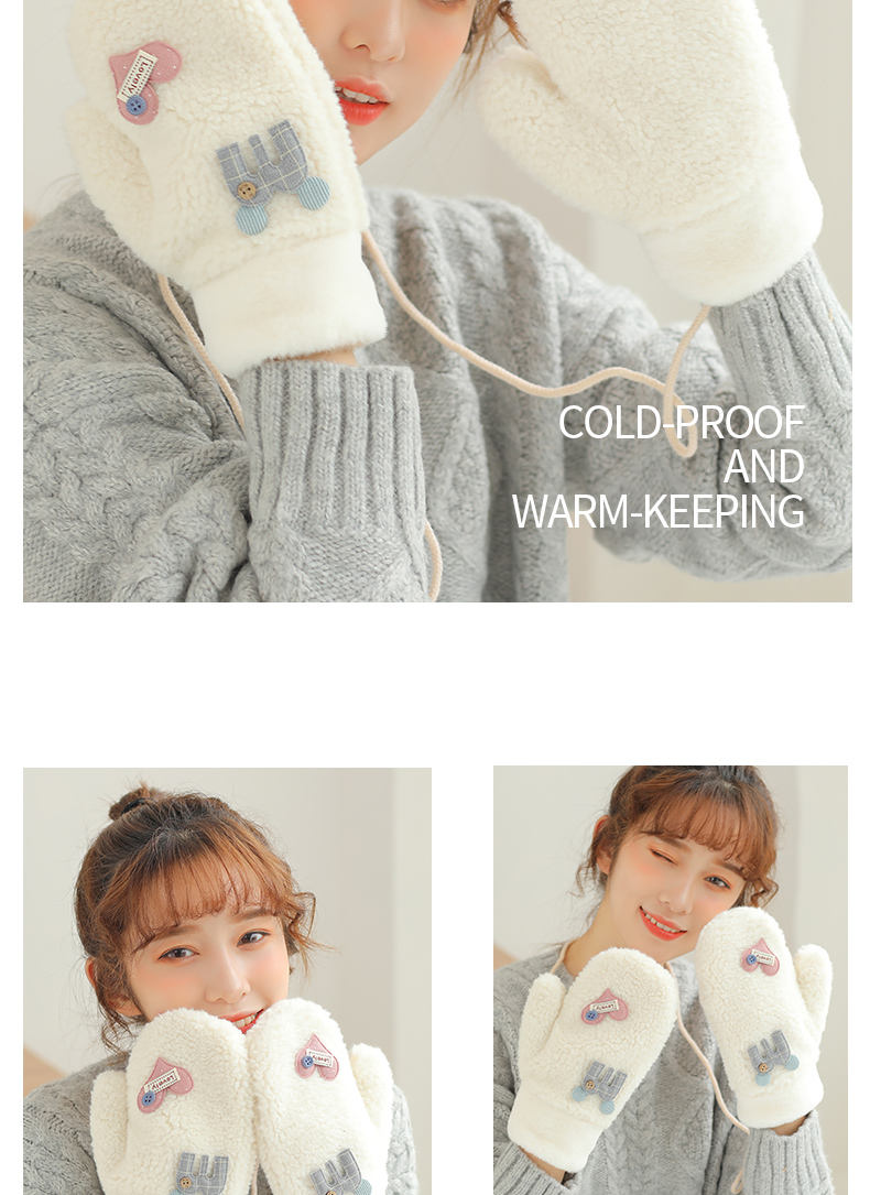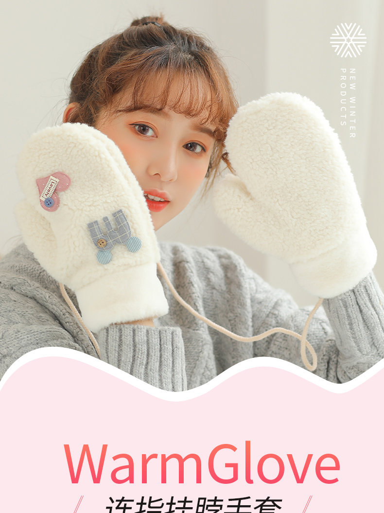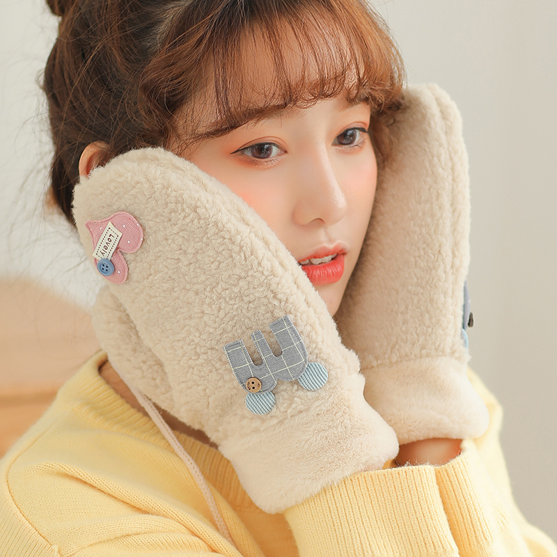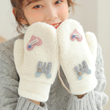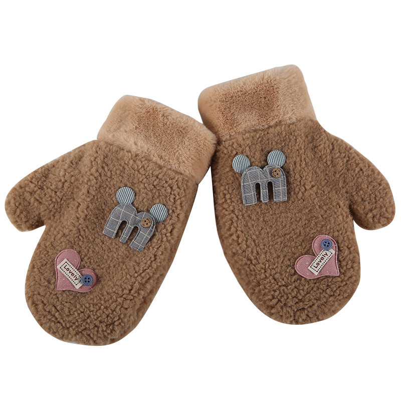 Бархатные перчатки, зимний милый трикотажный флисовый удерживающий тепло комплект для школьников, в корейском стиле, увеличенная толщина