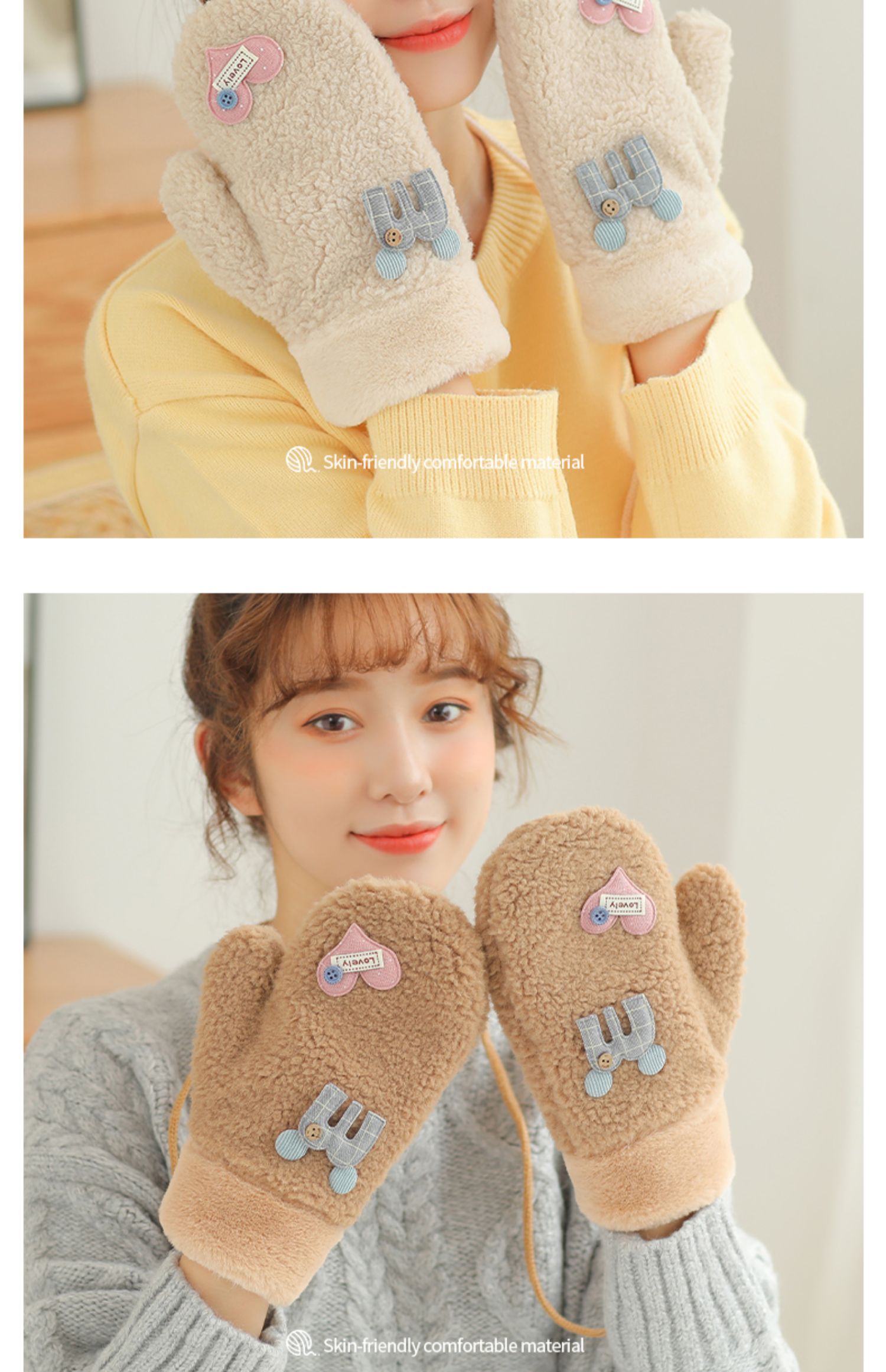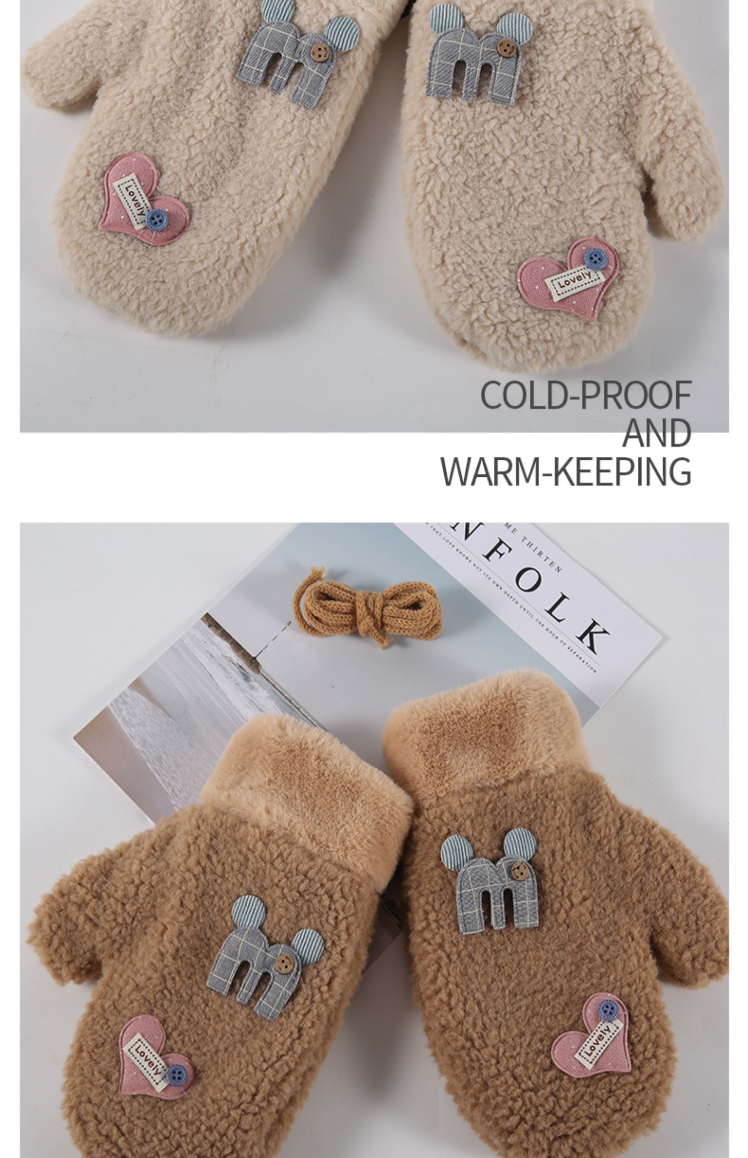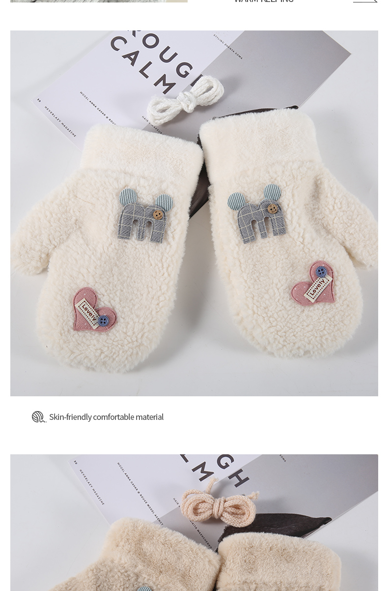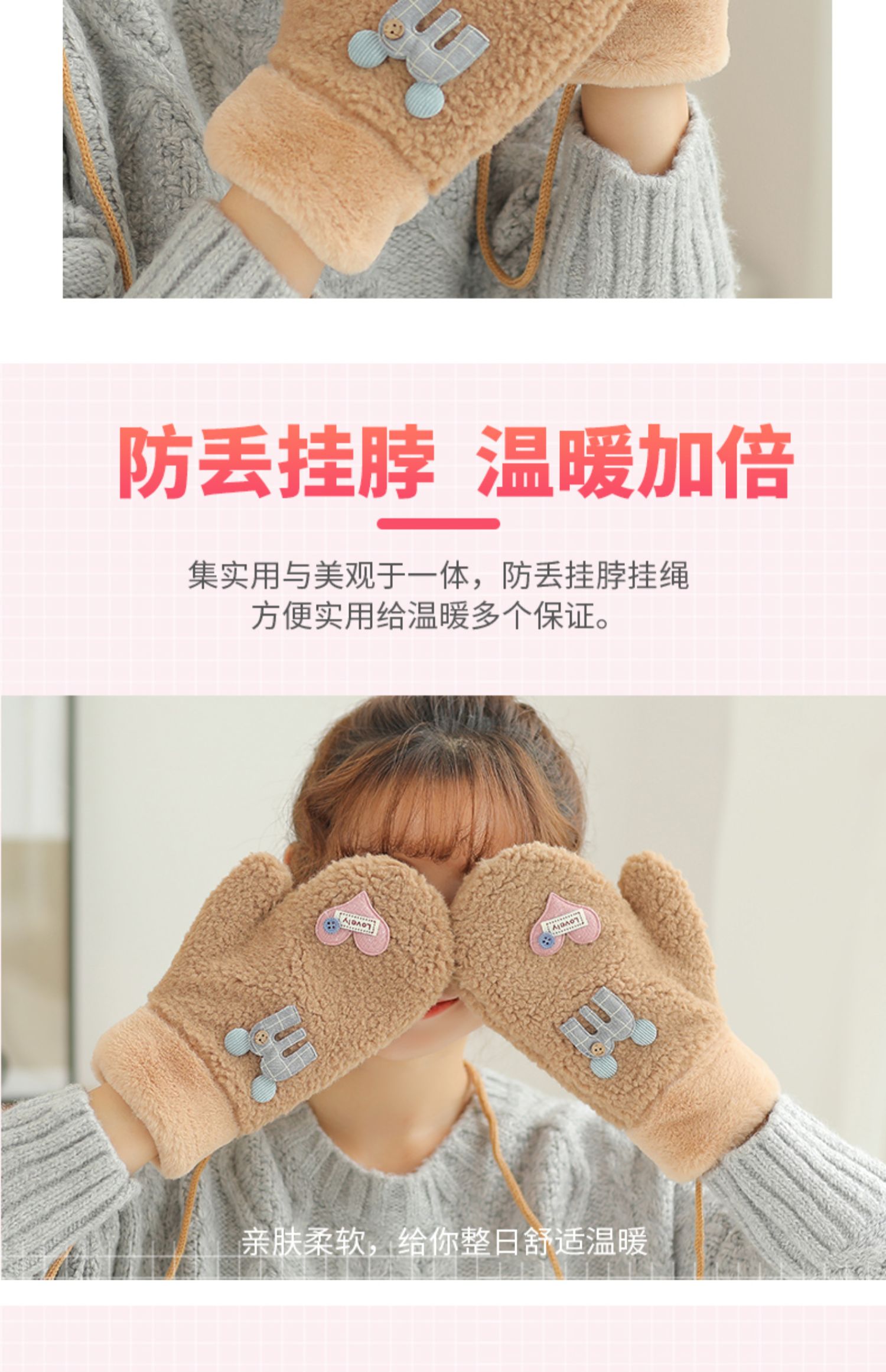 Бархатные перчатки, зимний милый трикотажный флисовый удерживающий тепло комплект для школьников, в корейском стиле, увеличенная толщина